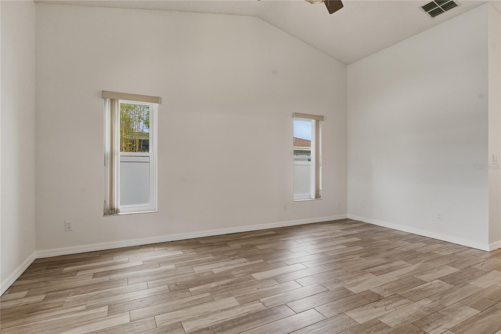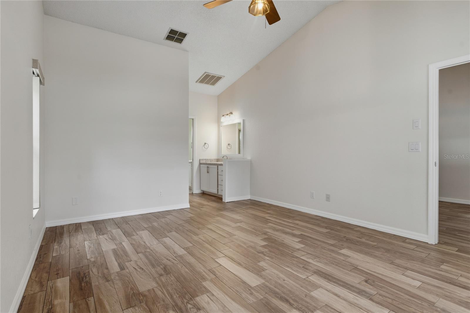 Ceiling Fans(s), Primary Bedroom Main Floor, Solid Surface Counters, Split Bedroom, Thermostat, Vaulted Ceiling(s), Walk-In Closet(s)