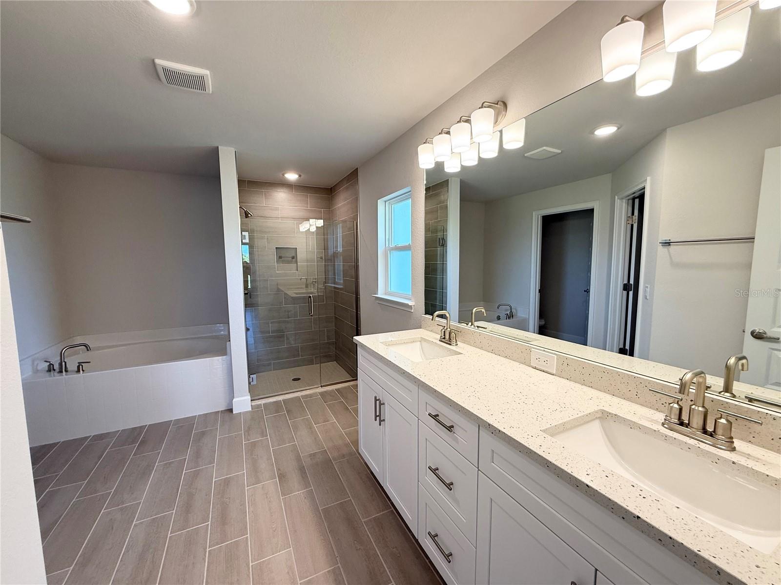 This Beautiful New 2117Sqft with 3 car garages Upgrades Include: Open Floor Plan, Ceramic Plank Tile- Whole House, Sliding Glass Doors leading to 24' x 10' Covered Patio, Quartz Counter tops in Kitchen and Baths, Stainless Steel Appliances (microwave, range, dishwasher), Upgraded Cabinets, Step Ceiling in the Primary BDRM, 5' Tiled Shower in Master bath ILO garden tub, Bahia sod, Pavers (driveway, front entry walk) & All of our New Homes come with a 1 year/2 year/10 year Warranties. Move in Worry free! Adams Homes Pays the Majority of closing costs with use of Preferred Lenders. ~~ Subject to Errors & Omissions ~~