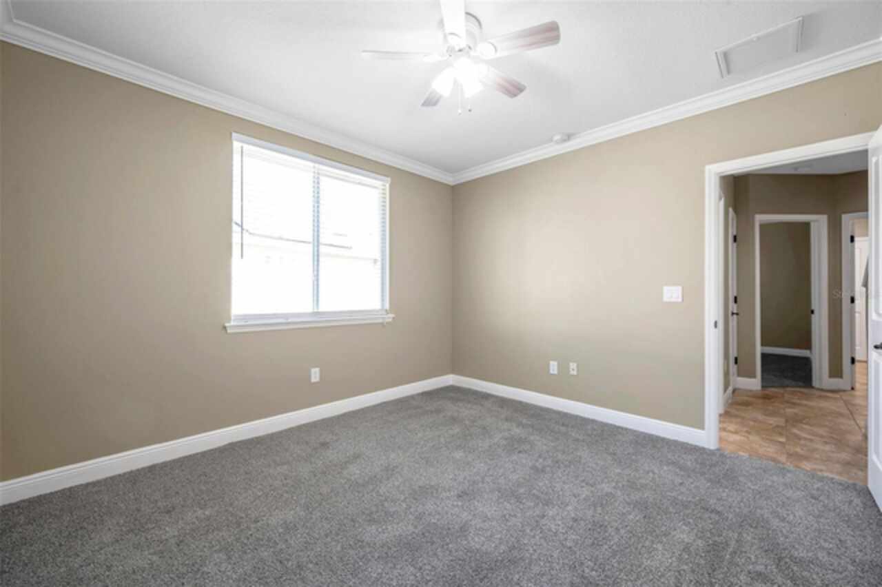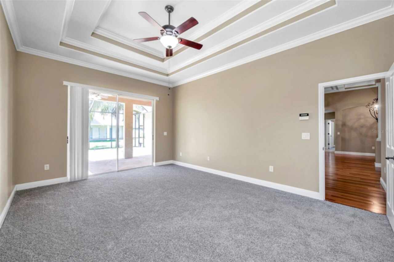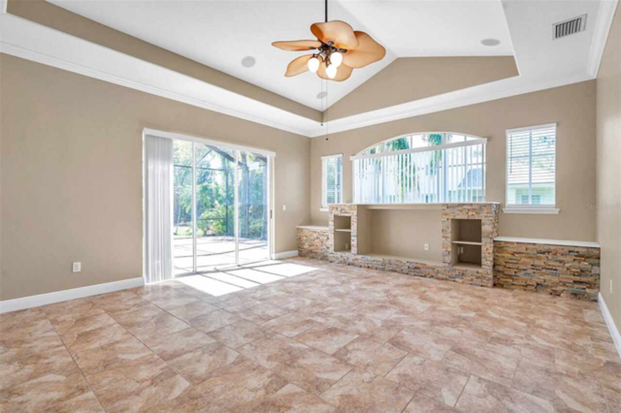 Beautiful and Upgraded home in Popular Ibis Park at Fishhawk Ranch! You're sure to be impressed with quality finishes including custom double glass front doors, wood and tiled floors in all living areas, coffered ceilings, crown moldings, plantation shutters, wood cabinets, solid surface counters, deluxe fixtures, soaring 12' ceilings in main areas and so much more! The floorplan lives large and features rooms for everyone including a separate den/office off the foyer with French doors, a stunning dining room, large living room, centrally located chef's kitchen with center island and pantry, family room with multiple sets of sliding glass doors, 3 or 4 way split bedroom plan with the owners suite on the left side of the home with two spacious closets with custom built-ins, two bedrooms sharing a bath on the very right side, and bedroom 4 with another bath at the very back of the home, upstairs you'll find bedroom 5 (or bonus room) with it's own bath. Other features include an inside laundry with wash tub, an oversized screened patio, and a 3 car garage. The home is move-in ready and was just refreshed with new interior and exterior paint, and new carpets. The roof was replaced in 2023 and the water heater in 2022. The Community features resort style amenities including highly rated schools, over 25 miles of scenic trails, multiple community pools including the popular aquatic club, fitness centers, sports courts, and so much more! Terrific location is convenient to schools, shopping, restaurants, and major roads. Schedule your private tour today!