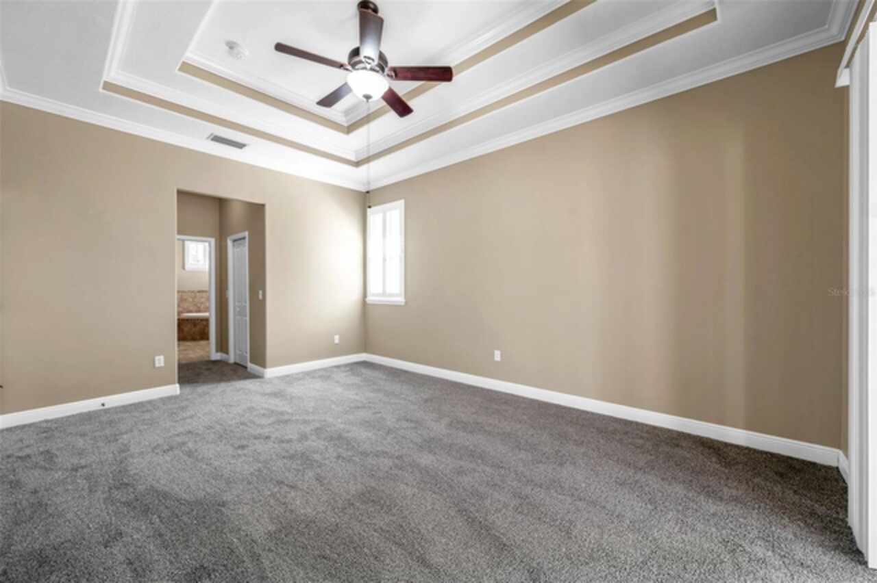 Built-in Features, Ceiling Fans(s), Coffered Ceiling(s), Crown Molding, High Ceilings, Kitchen/Family Room Combo, Living Room/Dining Room Combo, Primary Bedroom Main Floor, Solid Surface Counters, Solid Wood Cabinets, Split Bedroom, Tray Ceiling(s), Walk-In Closet(s), Window Treatments