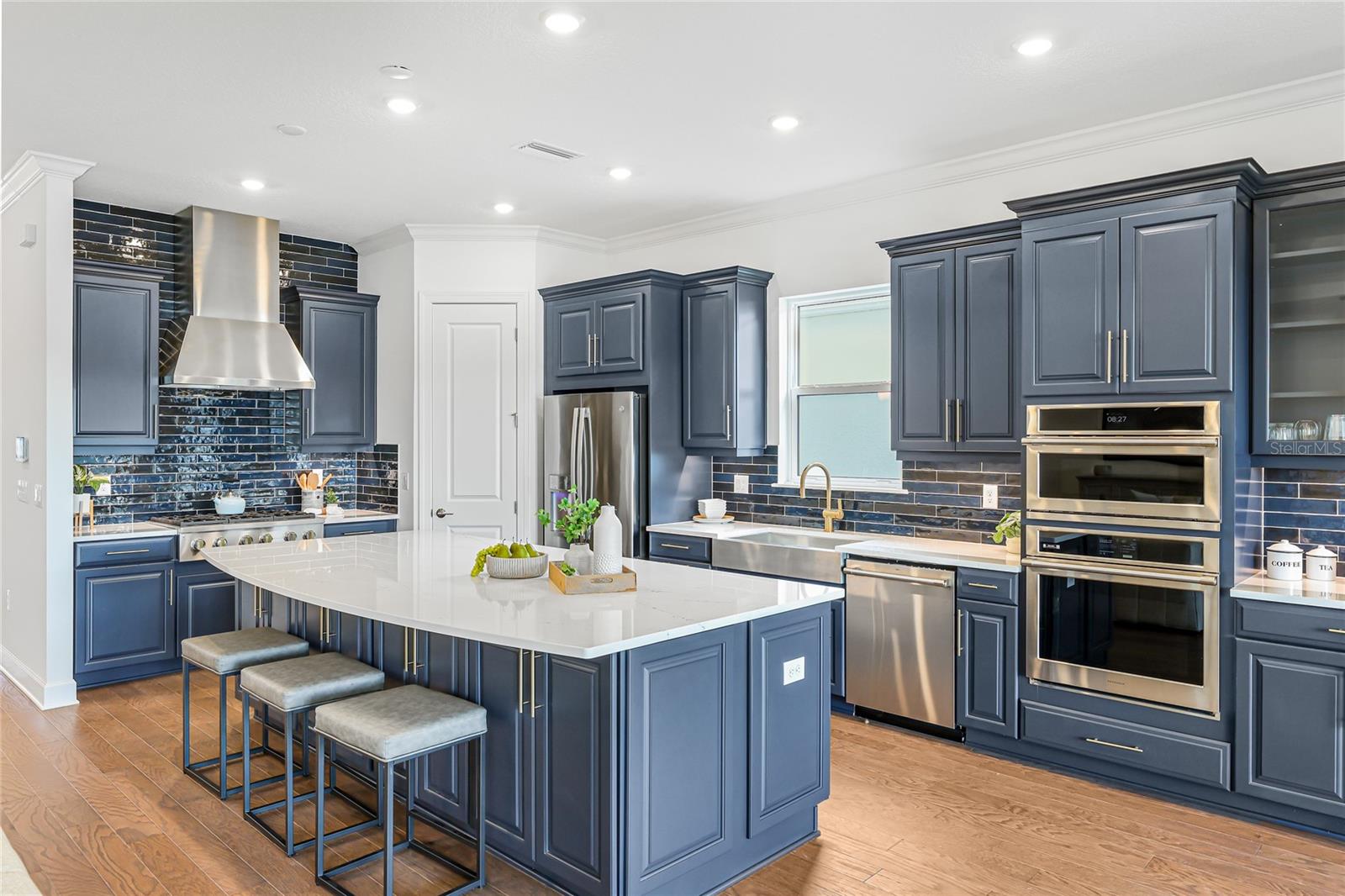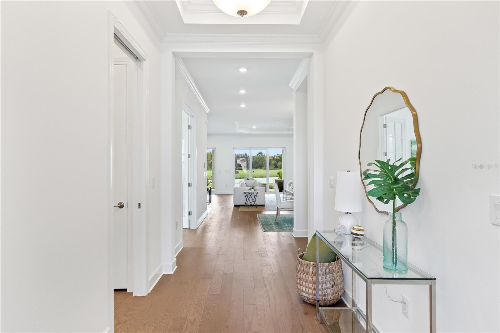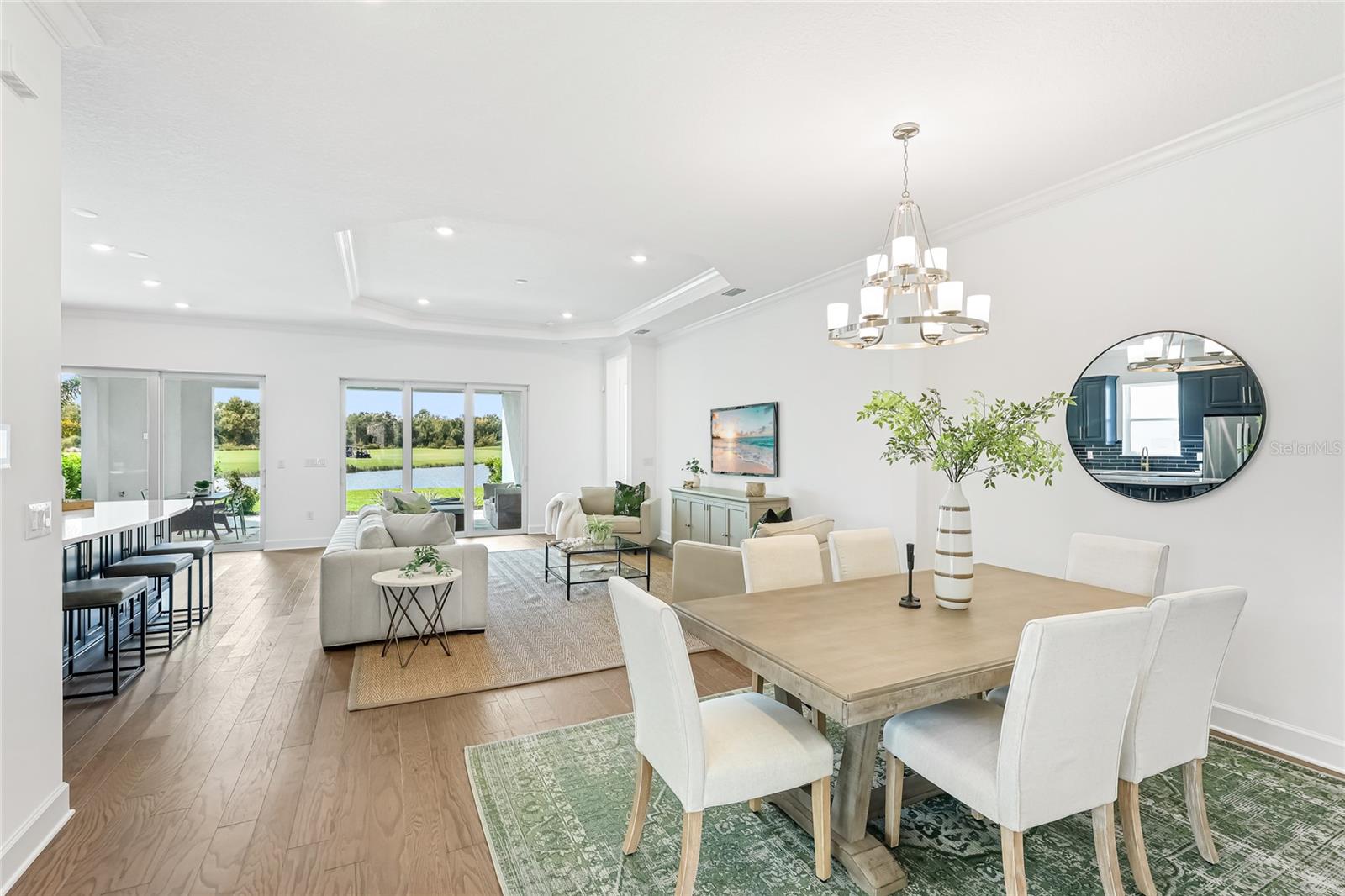 Under contract-accepting backup offers. GOLF DEEDED LOT with one of the best views in the neighborhood! Welcome to your dream home in the sought-after Esplanade at Azario! This never lived in Lazio floorplan offers the perfect blend of luxury, comfort, and functionality—designed for modern living and entertaining. Located on a golf-deeded lot, this home boasts breathtaking panoramic views of both the water and golf course, providing a serene and picturesque backdrop every day. Step inside to discover a thoughtfully designed layout featuring 3 spacious bedrooms, 3 full bathrooms, a den, and an open-concept living space. The gourmet kitchen is a showstopper, featuring elegant navy cabinetry, quartz countertops, a large center island, and top-of-the-line stainless steel appliances—ideal for hosting and daily life alike. The expansive great room opens seamlessly to the covered lanai, where you can relax and soak in the beauty of your surroundings. The owner’s suite is a true retreat with a spa-like bathroom, dual vanities, and a generous walk-in closet. Enjoy all the incredible Esplanade lifestyle amenities, including the championship golf course, resort-style pool, fitness center, tennis and pickleball courts, full-service spa, Bahama Bar, culinary center and more. Don’t miss your opportunity to own this exceptional home with unmatched views and upscale finishes in one of Lakewood Ranch’s premier communities!