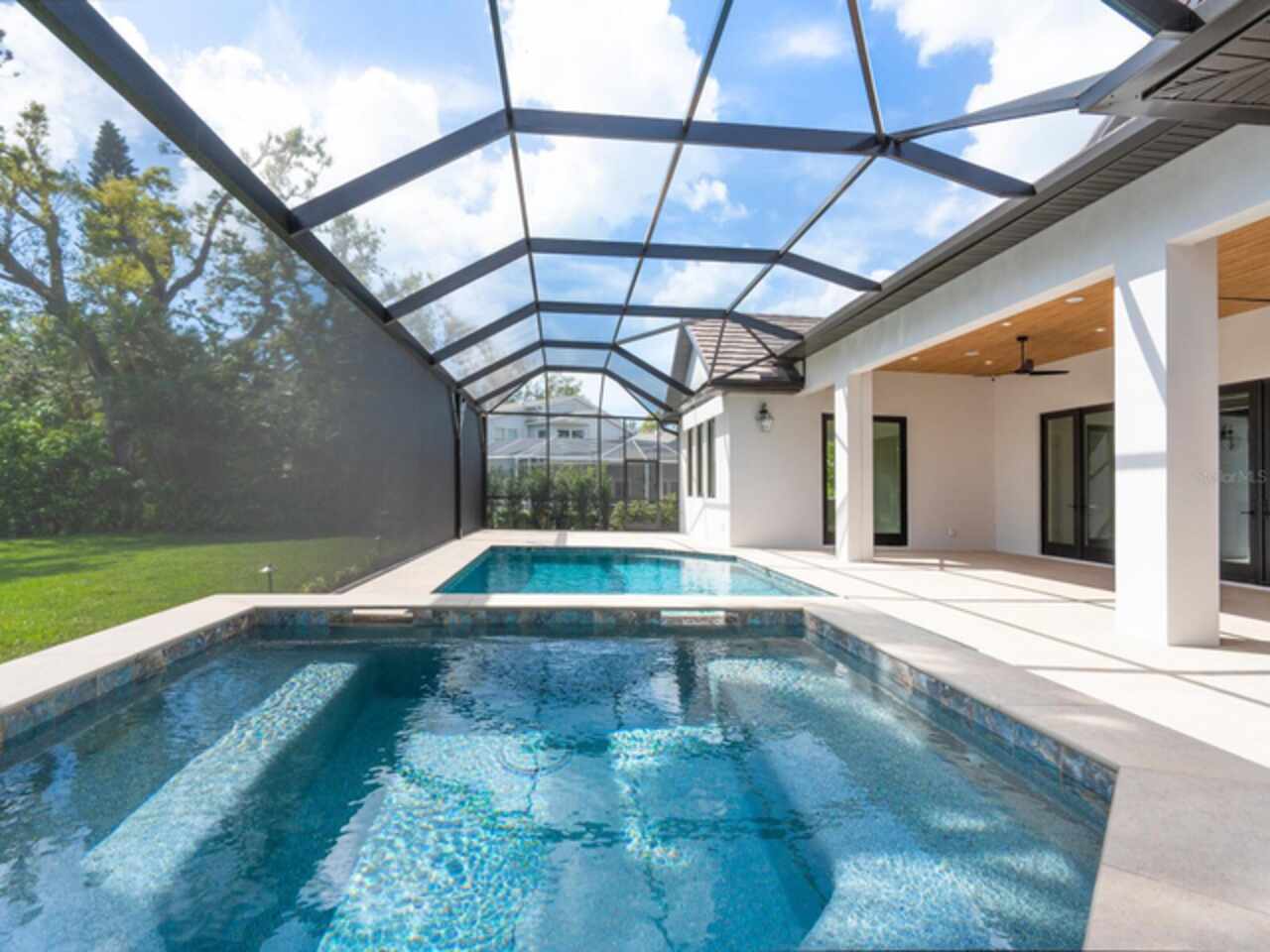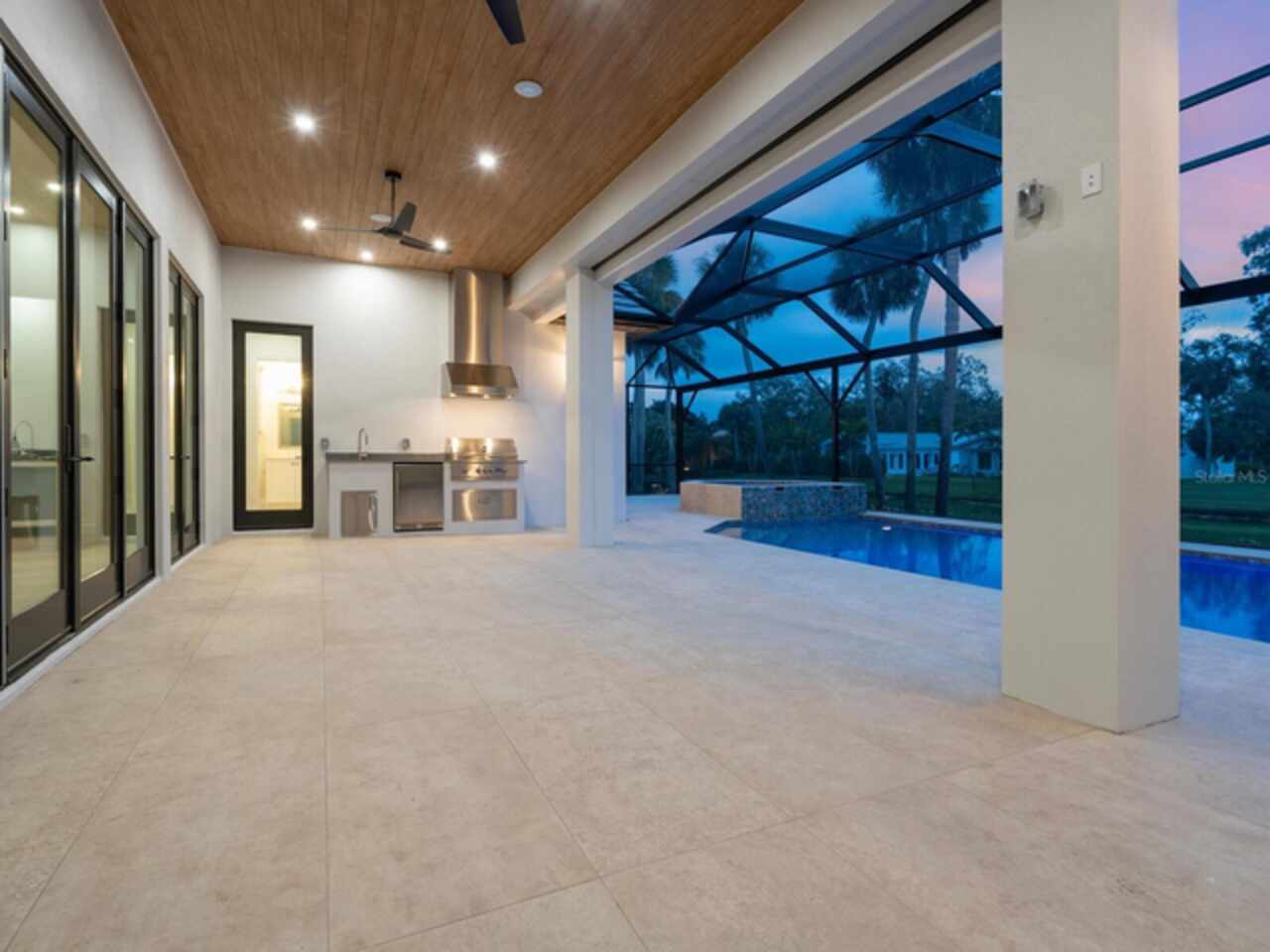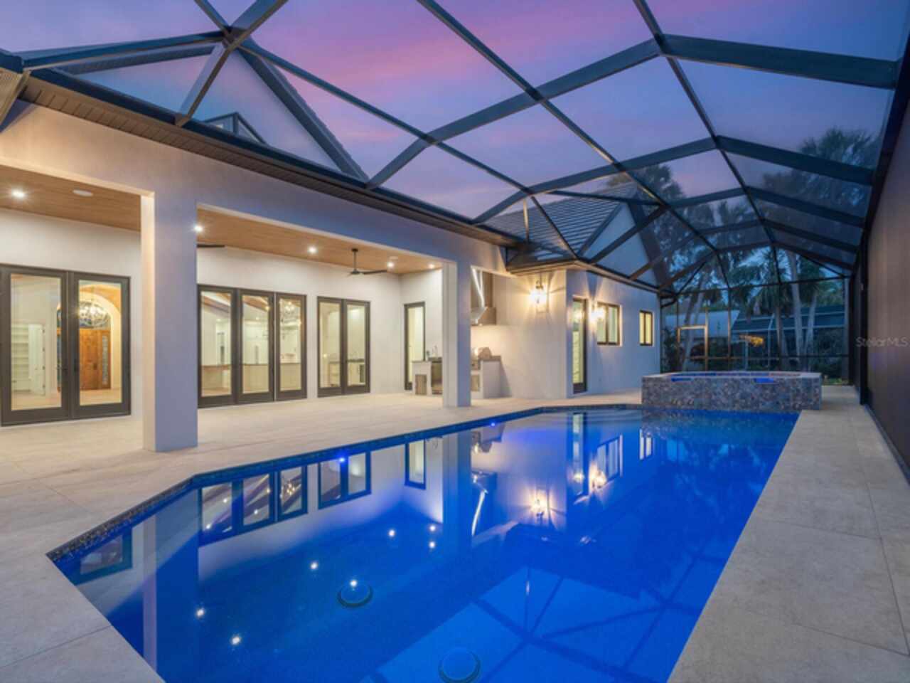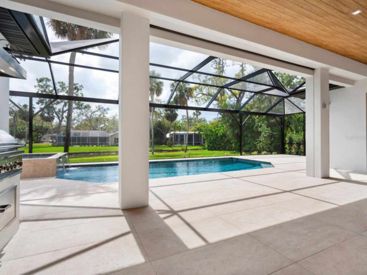 Construction and staging have been completed in this stunning new home by award-winning Trinity Custom Homes. Discover luxury and innovation in this remarkable four-bedroom-plus-den, 5.5-bath, West-of-the-Trail home. This custom-designed residence showcases superior craftsmanship, offering a sophisticated blend of modern design and top-tier functionality. Every detail has been meticulously planned, from the gourmet kitchen, which features Thermador appliances, a 42-inch refrigerator, a five-burner gas cooktop, double ovens, and abundant pantry storage, to the great room plan with a soaring, vaulted ceiling, wood trusses with LED uplighting and fireplace, ideal for fabulous entertaining and everyday living. The dining area features an entertainment center that includes a U-Line wine cooler and ice maker, as well as an Elkay water bottle filler and chiller. No detail was overlooked, from the Level 5 drywall finishes on walls and ceilings to the custom cabinetry in the great room, office, and bedroom closets. The outdoor space offers a resort-style retreat overlooking a serene, spring-fed lake, featuring a PebbleTec surfaced pool and spa, a lanai cage with a Clearview enclosure, and a motorized sunshade screen. The outdoor kitchen, complete with a gas grill, elevates the alfresco dining experience. Advanced technology includes a whole-house alarm system with seven-camera surveillance, a Sonos multiple-zone audio system, and motorized shades. Dual Navien tankless water heaters, equipped with a circulation loop and open-cell foam insulation, ensure optimal energy efficiency. Two Trane variable-speed HVAC systems provide zoned climate control for enhanced comfort. Built for resilience and convenience, the home includes Anderson windows and doors, a 26-kilowatt Kohler generator, and a 1, 000-gallon propane tank to support the entire house. The 400-amp electrical system, featuring two 200-amp panels, ensures reliable performance. Additional upgrades include custom-built-ins, wireless internet access points, and energy-efficient features such as advanced insulation and zoned HVAC. The split three-plus-car garages and a circular paver driveway provide ample space for vehicles and storage. Ideally located in the private community of Kentwood Estates, this home offers privacy and tranquility while being minutes from Siesta Key’s renowned beaches and downtown Sarasota’s vibrant entertainment, cultural attractions, shopping, and fine dining. This exceptional property presents a rare opportunity to experience unparalleled luxury and thoughtful design in one of Sarasota’s sought-after neighborhoods. Schedule your private showing today to envision your future in this extraordinary residence.