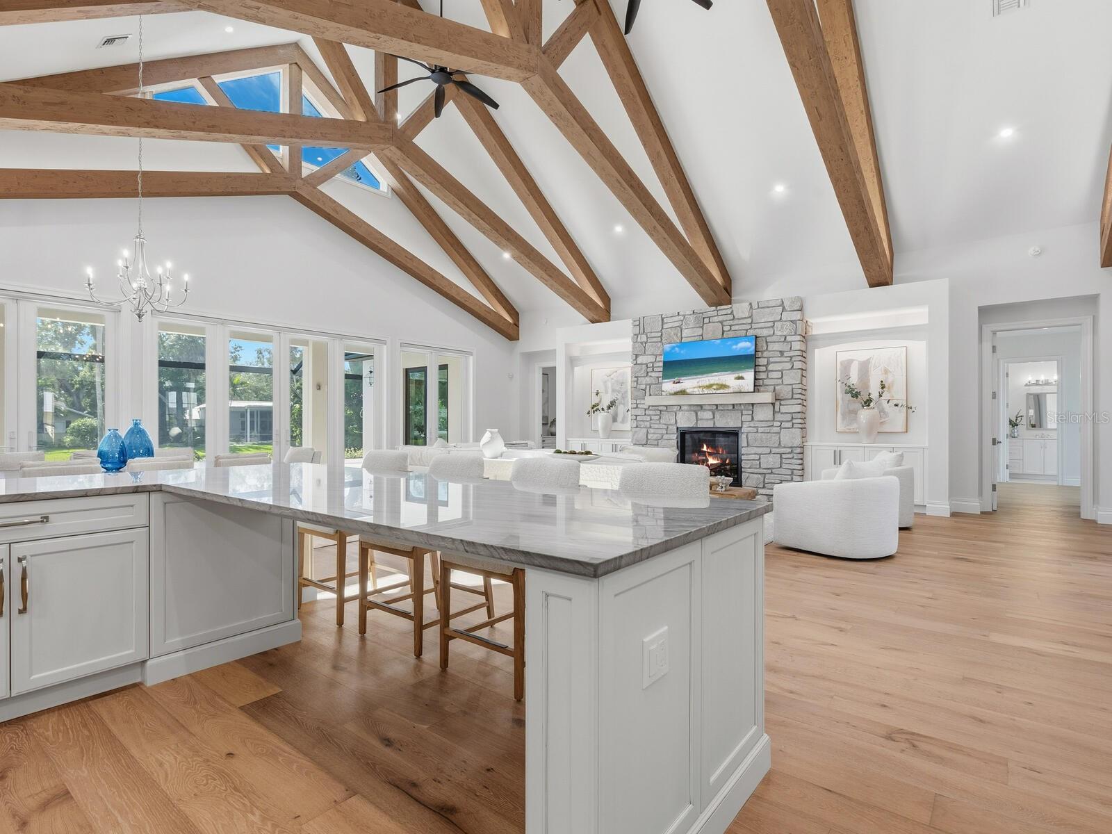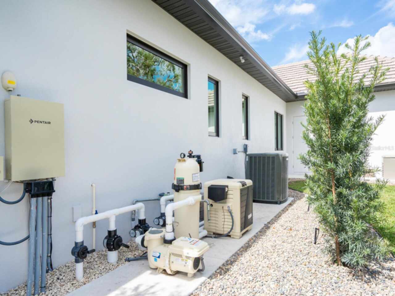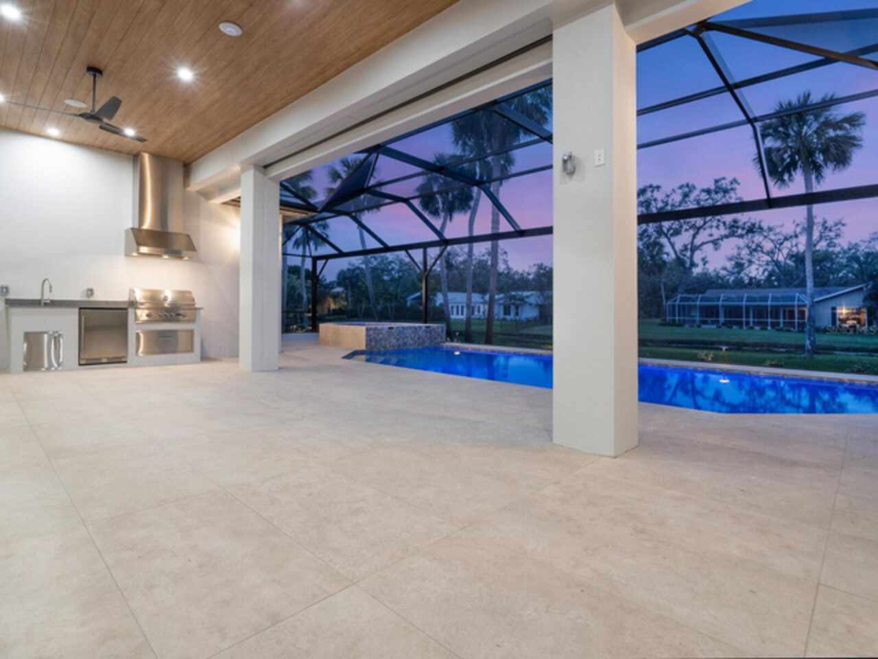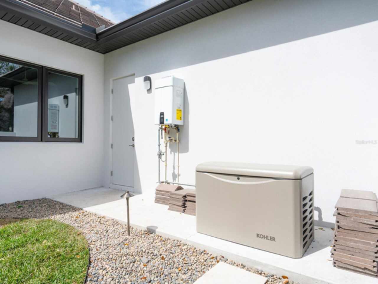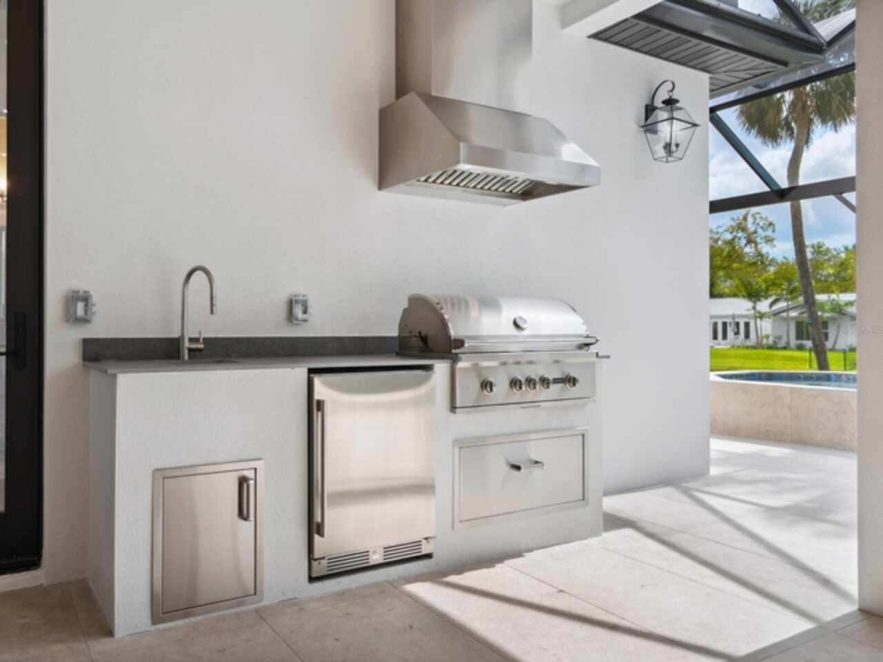 Construction and staging have been completed in this stunning new home by award-winning Trinity Custom Homes. Discover luxury and innovation in this remarkable four-bedroom-plus-den, 5.5-bath, West-of-the-Trail home. This custom-designed residence showcases superior craftsmanship, offering a sophisticated blend of modern design and top-tier functionality. Every detail has been meticulously planned, from the gourmet kitchen, which features Thermador appliances, a 42-inch refrigerator, a five-burner gas cooktop, double ovens, and abundant pantry storage, to the great room plan with a soaring, vaulted ceiling, wood trusses with LED uplighting and fireplace, ideal for fabulous entertaining and everyday living. The dining area features an entertainment center that includes a U-Line wine cooler and ice maker, as well as an Elkay water bottle filler and chiller. No detail was overlooked, from the Level 5 drywall finishes on walls and ceilings to the custom cabinetry in the great room, office, and bedroom closets. The outdoor space offers a resort-style retreat overlooking a serene, spring-fed lake, featuring a PebbleTec surfaced pool and spa, a lanai cage with a Clearview enclosure, and a motorized sunshade screen. The outdoor kitchen, complete with a gas grill, elevates the alfresco dining experience. Advanced technology includes a whole-house alarm system with seven-camera surveillance, a Sonos multiple-zone audio system, and motorized shades. Dual Navien tankless water heaters, equipped with a circulation loop and open-cell foam insulation, ensure optimal energy efficiency. Two Trane variable-speed HVAC systems provide zoned climate control for enhanced comfort. Built for resilience and convenience, the home includes Anderson windows and doors, a 26-kilowatt Kohler generator, and a 1, 000-gallon propane tank to support the entire house. The 400-amp electrical system, featuring two 200-amp panels, ensures reliable performance. Additional upgrades include custom-built-ins, wireless internet access points, and energy-efficient features such as advanced insulation and zoned HVAC. The split three-plus-car garages and a circular paver driveway provide ample space for vehicles and storage. Ideally located in the private community of Kentwood Estates, this home offers privacy and tranquility while being minutes from Siesta Key’s renowned beaches and downtown Sarasota’s vibrant entertainment, cultural attractions, shopping, and fine dining. This exceptional property presents a rare opportunity to experience unparalleled luxury and thoughtful design in one of Sarasota’s sought-after neighborhoods. Schedule your private showing today to envision your future in this extraordinary residence.