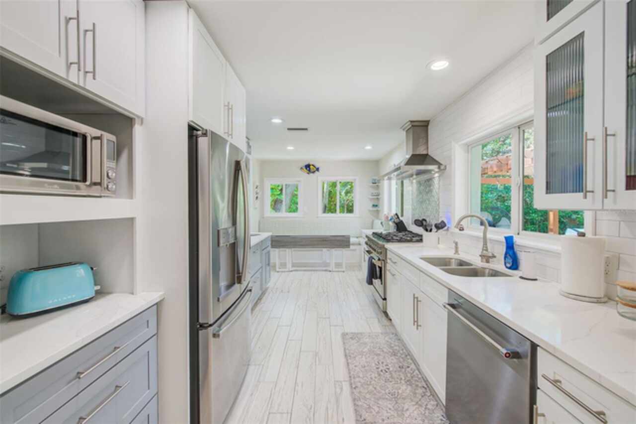 Welcome to your dream home in an unbeatable prime Belleair location, just steps from the exclusive Belleair Country Club, the historic Belleview Inn, and Clearwater Bay. Nestled on an oversized lot across from hole #17 on the private Belleair Golf Course, this 3 bedroom, 2.5-bathroom residence offers luxury, privacy and resort-style living in one of Florida’s most coveted neighborhoods. Step inside this charming cottage ranch-style home, where modern updates blend seamlessly with timeless character. The open layout welcomes you with warmth and elegance, featuring a combined living room, dining room and great room-perfect for entertaining. The gourmet galley kitchen with vintage meets modern flair is a chef’s delight, boasting quartz countertops, stainless steel appliances and a stylish modern backsplash. A built-in breakfast nook adds a cozy touch, while shiplap and brick accents throughout the home create a one-of-a-kind aesthetic. The spacious primary suite is a true sanctuary, complete with a massive walk-in closet and a serene spa-like bathroom. An attached office features a custom picture window overlooking a lush garden-ideal for a peaceful workspace. Step outside to your private tropical paradise, complete with newly paved patio and pergola that invites relaxation. The Chicago brick driveway and a covered front porch add to the home’s irresistible curb appeal. Additional highlights include a brand-new high efficiency A/C (installed 7/2025) and a private rear entrance framed by a block wall, offering both convenience and enhanced privacy. This home is high and dry-not located in a flood zone or evacuation area! Built for peace of mind, it’s hardwired for a generator and has a proven track record of maintaining power even during storm season!