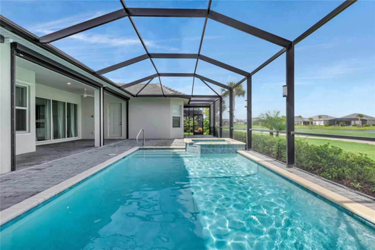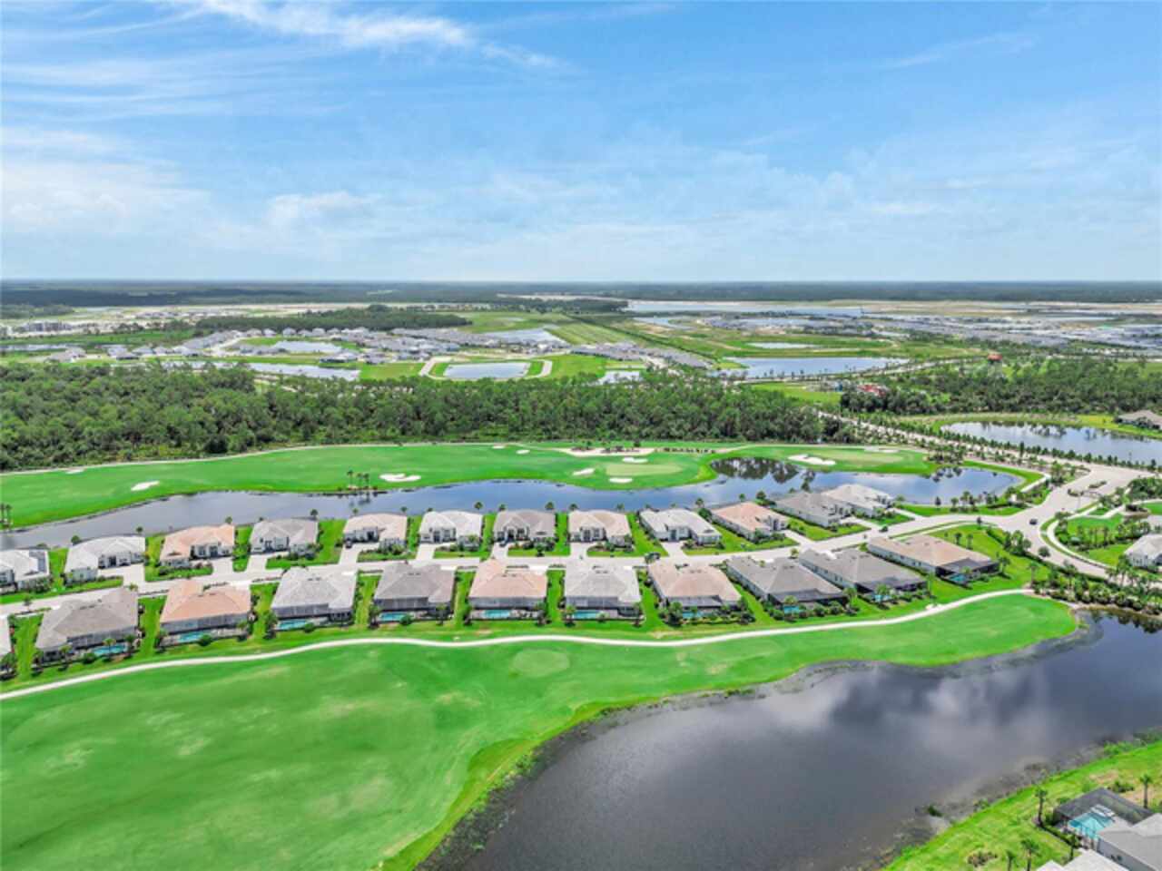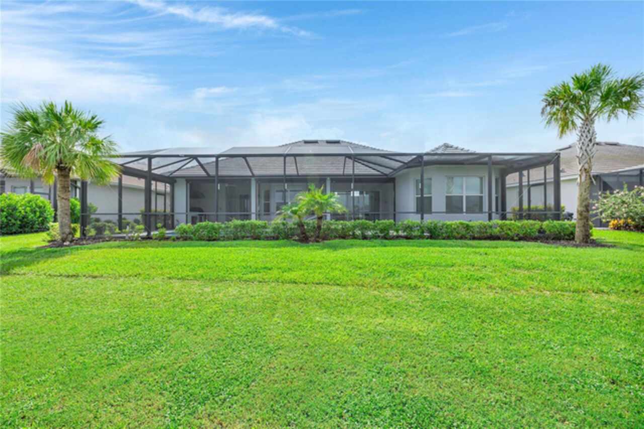 Beautiful Custom Golf & Lake View Pool Home with BUNDLED GOLF MEMBERSHIP in Babcock National! Experience the perfect blend of elegance, comfort, and privacy in this stunning WEST WIND MODEL custom-built home, ideally situated to capture breathtaking golf course and lake views—without the worry of golf balls! With the tee box positioned back and to the left, you’ll enjoy serene vistas and minimal foot traffic. Inside, the spacious living room features a built-in entertainment center with a TV, cozy fireplace, and coffee table, creating the perfect gathering space. The front door showcases decorative glass with built-in blinds, and crown molding enhances every room. The luxurious master suite includes the bedroom furniture, a gorgeous vanity, a spa-like bathroom with a double-headed walk-in shower, soaking tub, and two walk-in closets. All draperies throughout the home are included. Enjoy your own private oasis with this stunning heated pool and Jacuzzi spa, featuring a tranquil waterfall for the ultimate in relaxation. The expansive sun deck offers plenty of space for lounging, entertaining, or simply soaking up the Florida sunshine. Take in the beautiful, open views while you swim, unwind in the spa, and enjoy the electric privacy screen on both sides of the pool area where you can relax and enjoy an evening under the stars in this perfect outdoor private retreat. The gourmet outdoor kitchen is crafted with granite and stone, complete with a refrigerator & gas grill, perfect for entertaining by the screened-in pool. There is also 20K hurricane-rated electric screens protect your porch and furniture from wind and rain. Guests will appreciate two private en suite bedrooms—one off the pool area with a walk-in shower, and another with a full bathroom and walk-in shower. Babcock National offers an unparalleled lifestyle centered around its stunning 18-hole championship golf course.Residents enjoy a vibrant social scene with a tropical Tiki bar, sparkling resort pool, and a variety of recreational options including tennis courts, pickleball courts, and bocce ball. Stay active with group fitness classes and a state-of-the-art gym, then unwind with a rejuvenating treatment at the full-service spa. For elegant evenings, savor gourmet meals in the formal dining room. This private, gated community blends relaxation, recreation, and refined living in the heart of Babcock Ranch. Every detail of this home has been thoughtfully designed for beauty, comfort, and peace of mind. Enjoy living in Babcock Ranch, America's first entirely solar-powered town, with access to multiple community pools, nature trails, with shopping and dining. Come enjoy the convenience living with festivals, farmer's markets, Concerts, Health gym and just a golf cart ride to the grocery store. There is so much to do with hundreds of clubs and activities planned every month. There is a K-12 neighborhood school with a brand new sports complex, including football, soccer and baseball fields. There are many playgrounds and parks, including multiple dog parks and a brand new skate park and six new parks along the nature trails. Babcock Ranch is a top master planned community and was featured on CNN and 60 Min for not losing any power or internet after hurricane Ian made a direct hit and Milton came very close. Beautiful parks and amenities let you experience SW Florida at its finest! Come live a better life at Babcock Ranch!