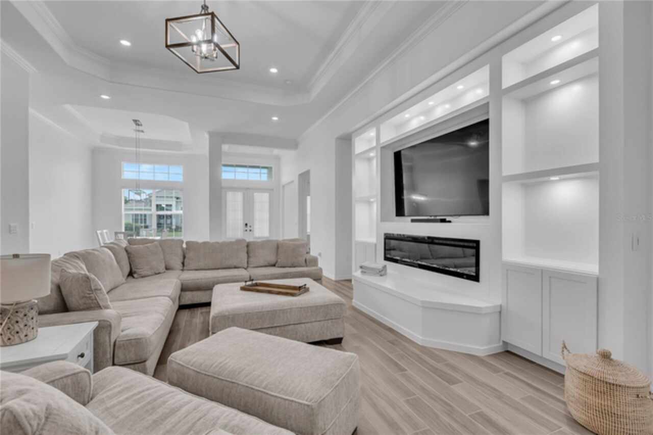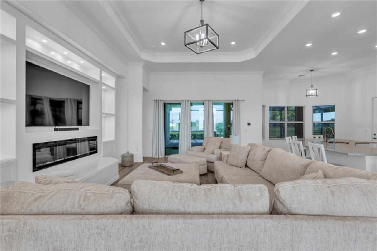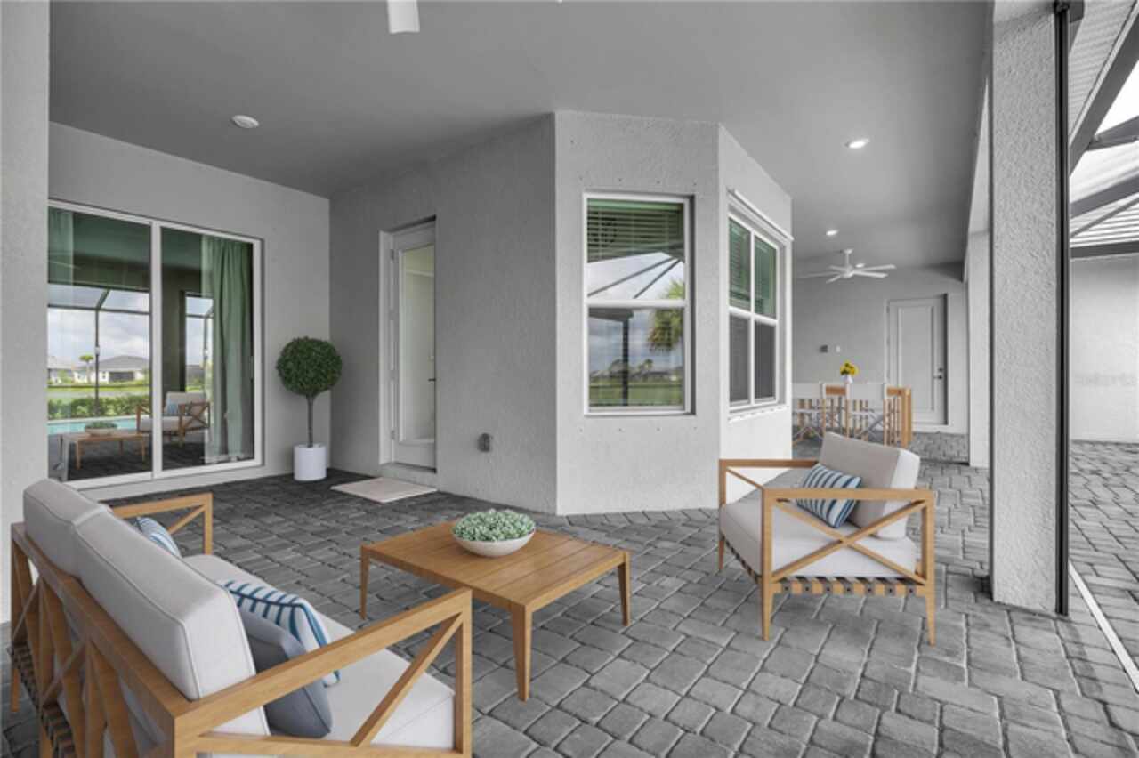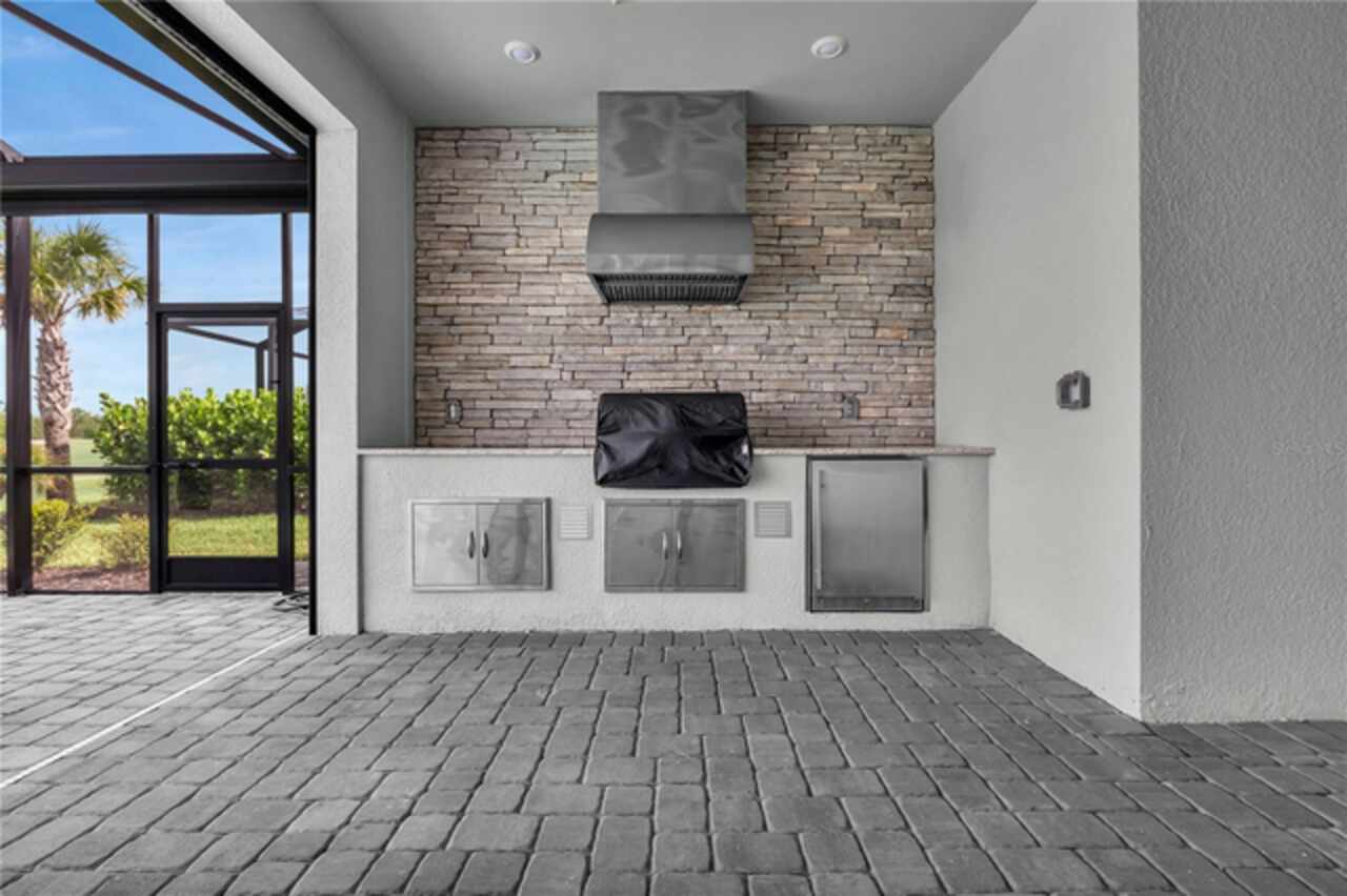 Beautiful Custom Golf & Lake View Pool Home with BUNDLED GOLF MEMBERSHIP in Babcock National! Experience the perfect blend of elegance, comfort, and privacy in this stunning WEST WIND MODEL custom-built home, ideally situated to capture breathtaking golf course and lake views—without the worry of golf balls! With the tee box positioned back and to the left, you’ll enjoy serene vistas and minimal foot traffic. Inside, the spacious living room features a built-in entertainment center with a TV, cozy fireplace, and coffee table, creating the perfect gathering space. The front door showcases decorative glass with built-in blinds, and crown molding enhances every room. The luxurious master suite includes the bedroom furniture, a gorgeous vanity, a spa-like bathroom with a double-headed walk-in shower, soaking tub, and two walk-in closets. All draperies throughout the home are included. Enjoy your own private oasis with this stunning heated pool and Jacuzzi spa, featuring a tranquil waterfall for the ultimate in relaxation. The expansive sun deck offers plenty of space for lounging, entertaining, or simply soaking up the Florida sunshine. Take in the beautiful, open views while you swim, unwind in the spa, and enjoy the electric privacy screen on both sides of the pool area where you can relax and enjoy an evening under the stars in this perfect outdoor private retreat. The gourmet outdoor kitchen is crafted with granite and stone, complete with a refrigerator & gas grill, perfect for entertaining by the screened-in pool. There is also 20K hurricane-rated electric screens protect your porch and furniture from wind and rain. Guests will appreciate two private en suite bedrooms—one off the pool area with a walk-in shower, and another with a full bathroom and walk-in shower. Babcock National offers an unparalleled lifestyle centered around its stunning 18-hole championship golf course.Residents enjoy a vibrant social scene with a tropical Tiki bar, sparkling resort pool, and a variety of recreational options including tennis courts, pickleball courts, and bocce ball. Stay active with group fitness classes and a state-of-the-art gym, then unwind with a rejuvenating treatment at the full-service spa. For elegant evenings, savor gourmet meals in the formal dining room. This private, gated community blends relaxation, recreation, and refined living in the heart of Babcock Ranch. Every detail of this home has been thoughtfully designed for beauty, comfort, and peace of mind. Enjoy living in Babcock Ranch, America's first entirely solar-powered town, with access to multiple community pools, nature trails, with shopping and dining. Come enjoy the convenience living with festivals, farmer's markets, Concerts, Health gym and just a golf cart ride to the grocery store. There is so much to do with hundreds of clubs and activities planned every month. There is a K-12 neighborhood school with a brand new sports complex, including football, soccer and baseball fields. There are many playgrounds and parks, including multiple dog parks and a brand new skate park and six new parks along the nature trails. Babcock Ranch is a top master planned community and was featured on CNN and 60 Min for not losing any power or internet after hurricane Ian made a direct hit and Milton came very close. Beautiful parks and amenities let you experience SW Florida at its finest! Come live a better life at Babcock Ranch!