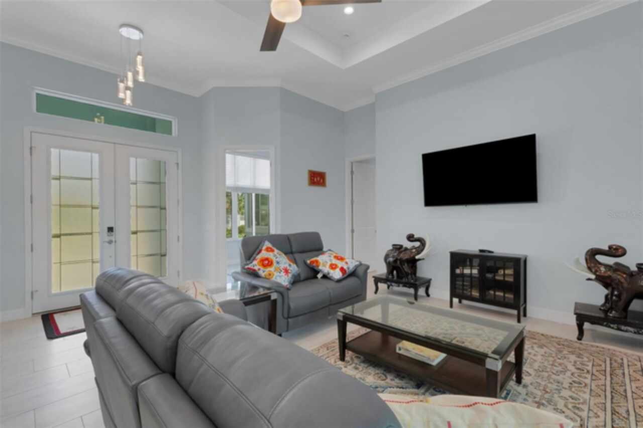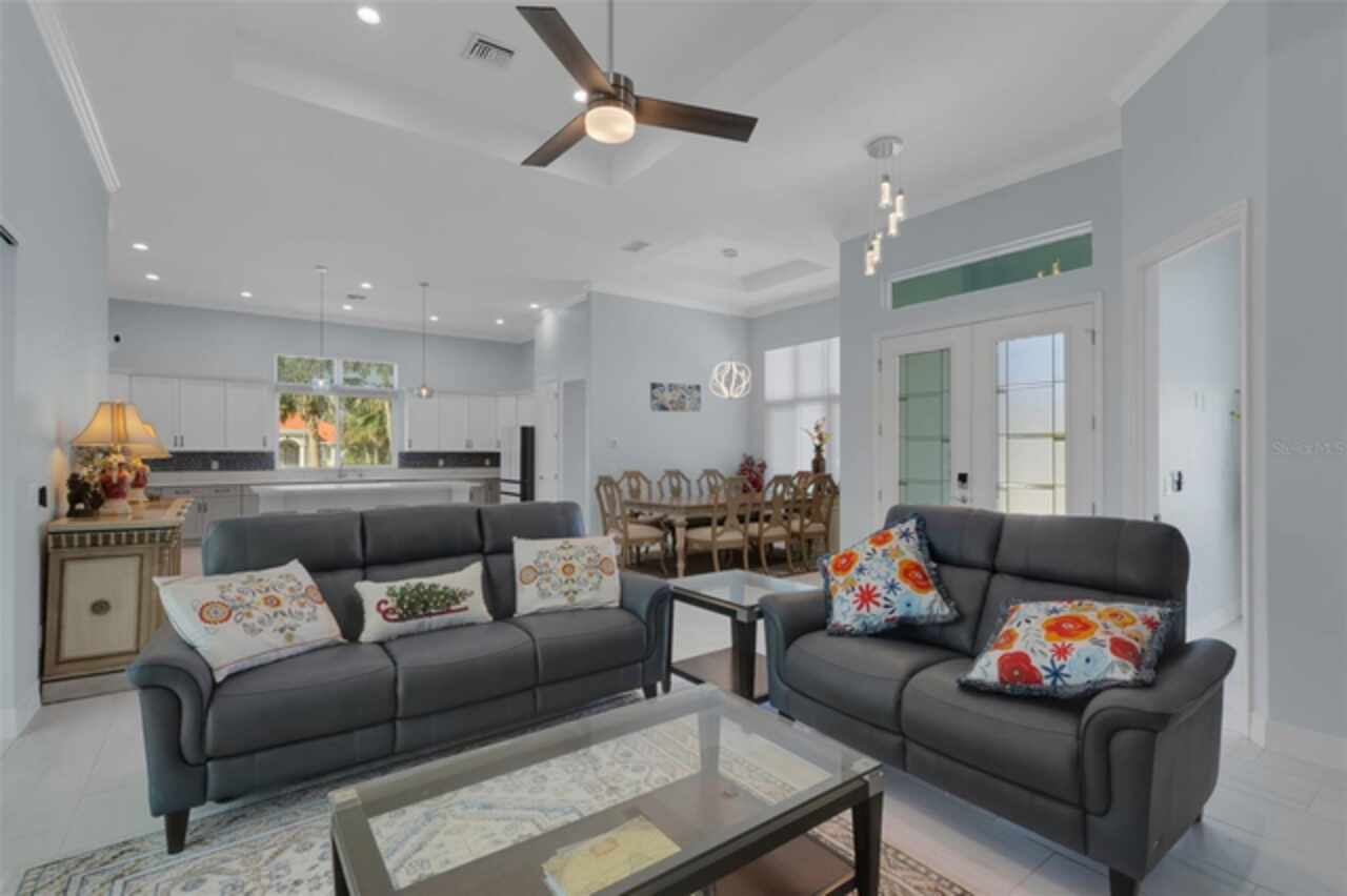 Step into this stunning brand-new, single-story home offering 3 spacious bedrooms, a versatile den, and 2 beautifully designed bathrooms, all complemented by a 3-car garage. Boaters will love the deeded access to the community boat launch with ample space to store your boat. As you enter, you’re greeted by an open, airy floor plan that effortlessly blends the living room, dining area, and kitchen, creating an inviting space for both relaxation and entertaining. Tons of natural light, Hurricane Impact Windows throughout the home. With 2, 311 square feet of thoughtfully designed living space, this home is perfect for growing families or those who love to host. The chef’s kitchen is a true highlight, featuring elegant quartz countertops, contemporary cabinetry, and top-tier Kitchen Aid appliances—ideal for crafting delicious meals and creating lasting memories. The owner’s suite serves as a luxurious retreat, boasting two generous walk-in closets and a spa-like en-suite bathroom. The well-planned split floor plan ensures ultimate privacy for the primary suite, which includes a dual-sink vanity, walk-in shower, private water closet, and a massive walk-in closet. The second bathroom exudes elegance, with its sleek quartz countertops and modern fixtures. For your convenience, the home also features a spacious laundry room. Positioned just minutes from I-75, the Gulf of Mexico, shopping, fine dining, Venice Island, and world-class golf, this home offers the perfect blend of comfort, style, and convenience.