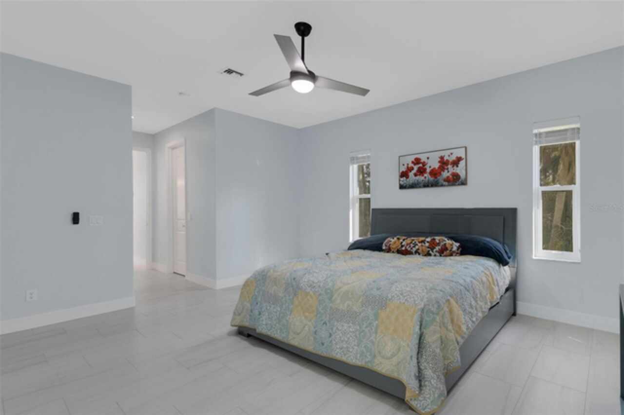 Cathedral Ceiling(s), Ceiling Fans(s), High Ceilings, Open Floorplan, Primary Bedroom Main Floor, Solid Surface Counters, Stone Counters, Thermostat, Walk-In Closet(s), Window Treatments