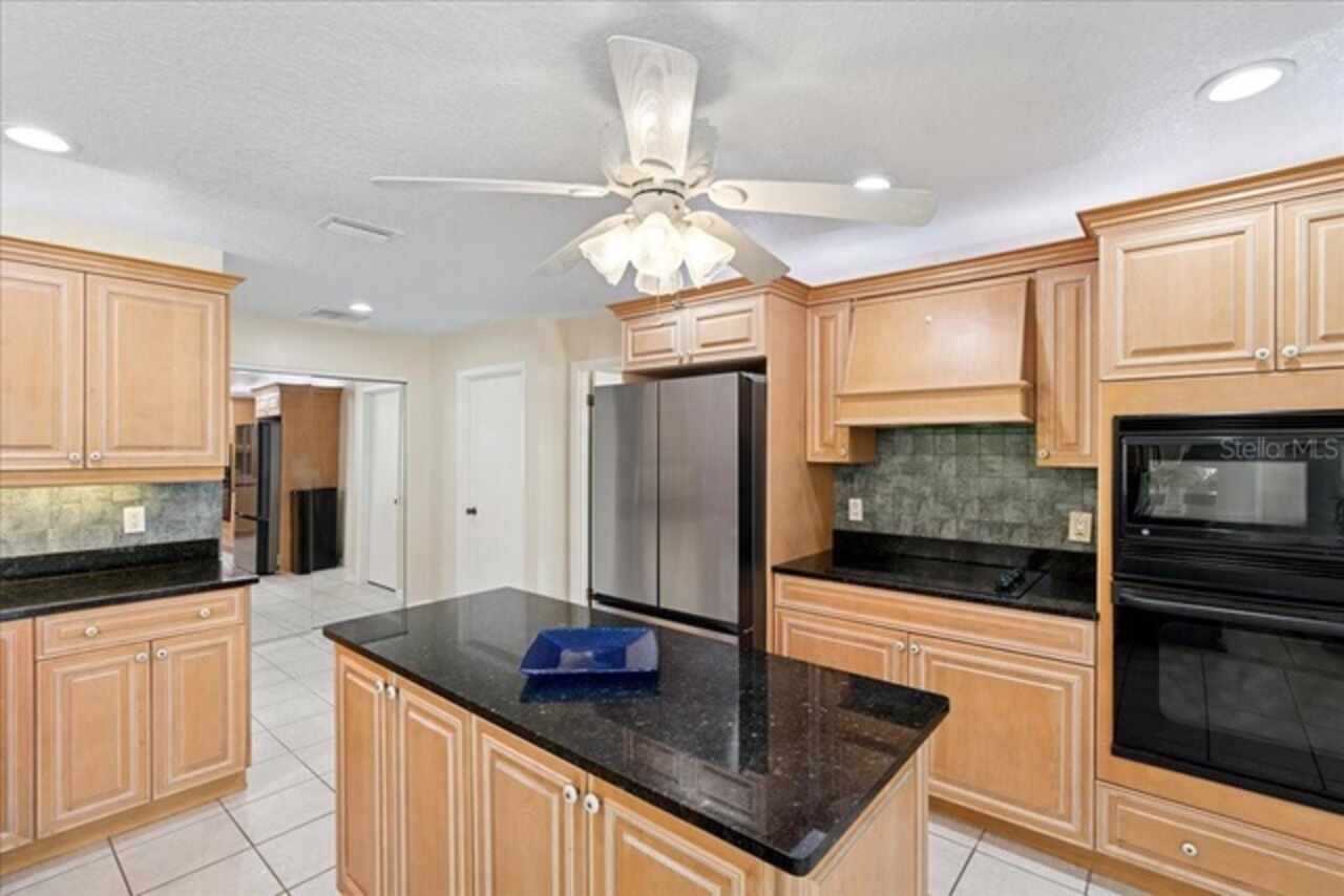 Ceiling Fans(s), Eat-in Kitchen, Kitchen/Family Room Combo, Living Room/Dining Room Combo, Open Floorplan, Primary Bedroom Main Floor, Solid Surface Counters, Solid Wood Cabinets, Split Bedroom, Thermostat, Walk-In Closet(s)