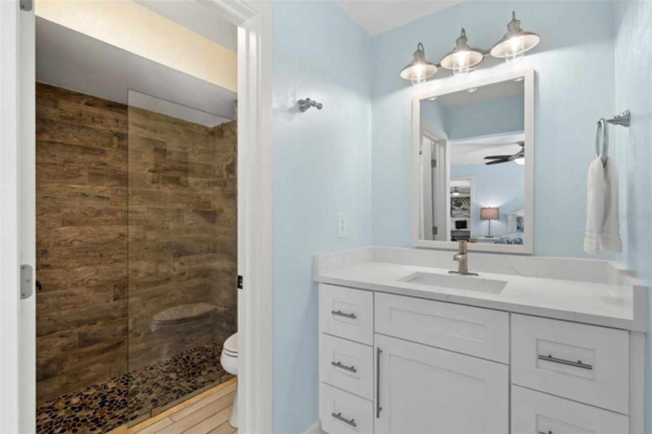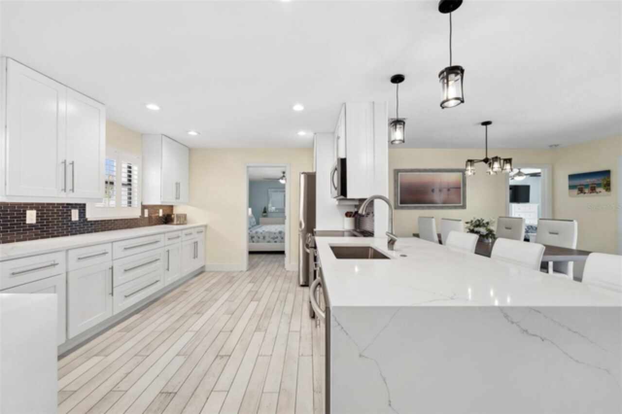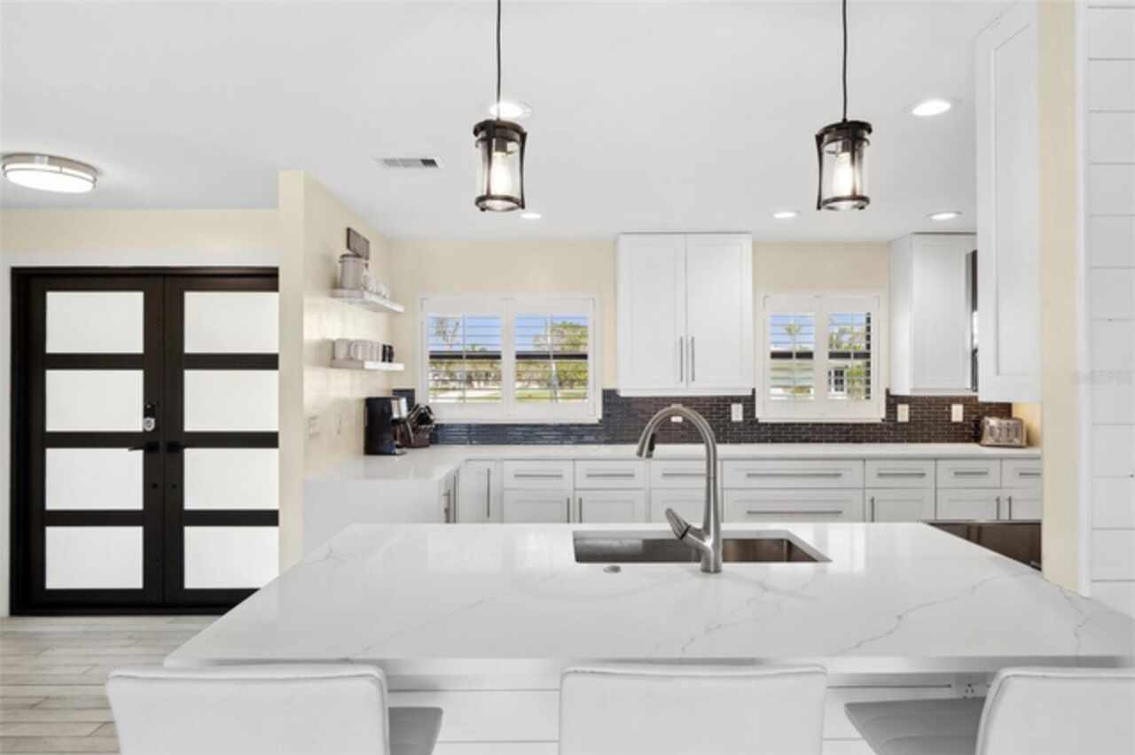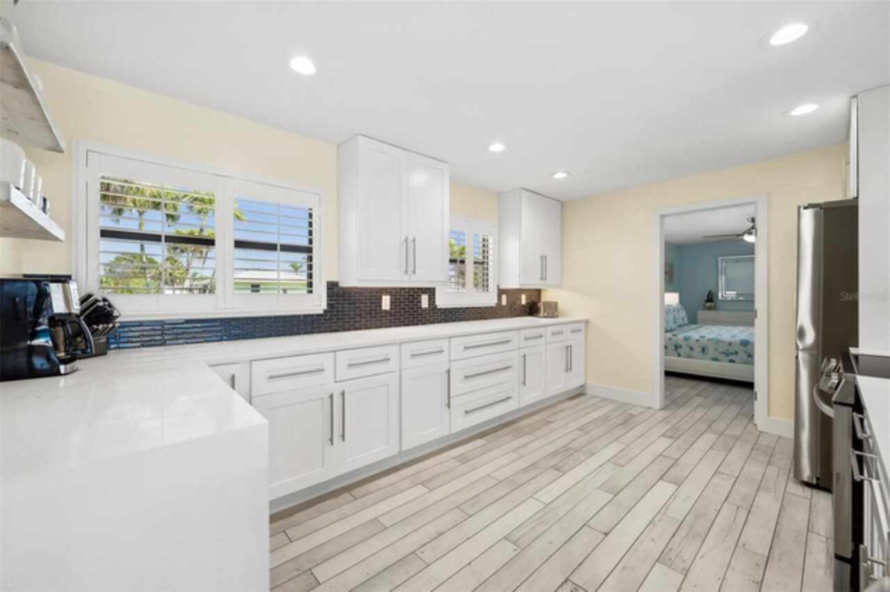 Welcome to 1600 Edith Esplanade, where breathtaking panoramic views of the Caloosahatchee River take center stage. This stunning south-facing riverfront home offers 116 feet of direct river frontage for an unbeatable waterfront lifestyle, with wide open vistas visible from nearly every room. Enjoy the Florida lifestyle to the fullest from the expansive screened lanai, complete with a heated pool and spa, a bar area with fridge and TV, and plenty of space for outdoor dining and lounging. The picture window screens showcase the endless water views, making every sunset unforgettable. Inside, this beautifully remodeled home features tile flooring throughout and a modern kitchen with quartz countertops, a dramatic waterfall edge, tile backsplash, and stainless steel appliances. The open layout blends style and function, perfect for both entertaining and everyday living. The master suite is a true retreat with its own sliders out to the pool area and a luxurious ensuite bath with a glass-walled, tiled shower. The second bedroom also enjoys private access to the lanai and pool through two sets of sliding glass doors at the corner of the room—maximizing natural light and waterfront views and creating a bright and airy feel, making this space perfect for guests or a secondary suite. It also features a spacious changing room offering additional sitting or dressing space. The third bedroom is a junior suite, complete with its own full bathroom—ideal for guests seeking privacy and comfort. The property also includes a 13, 000-lb boat lift, a large dock with ample seating, lush tropical landscaping, stamped concrete driveway, a metal roof, and a 2-car garage with an additional 10x20 storage area and extra parking on the side of the house. With 4 bedrooms and 3 full baths, this home is as practical as it is picturesque—ideal for full-time living, a luxurious vacation escape, or as an income-producing vacation property. This home is currently in a successful vacation rental program.