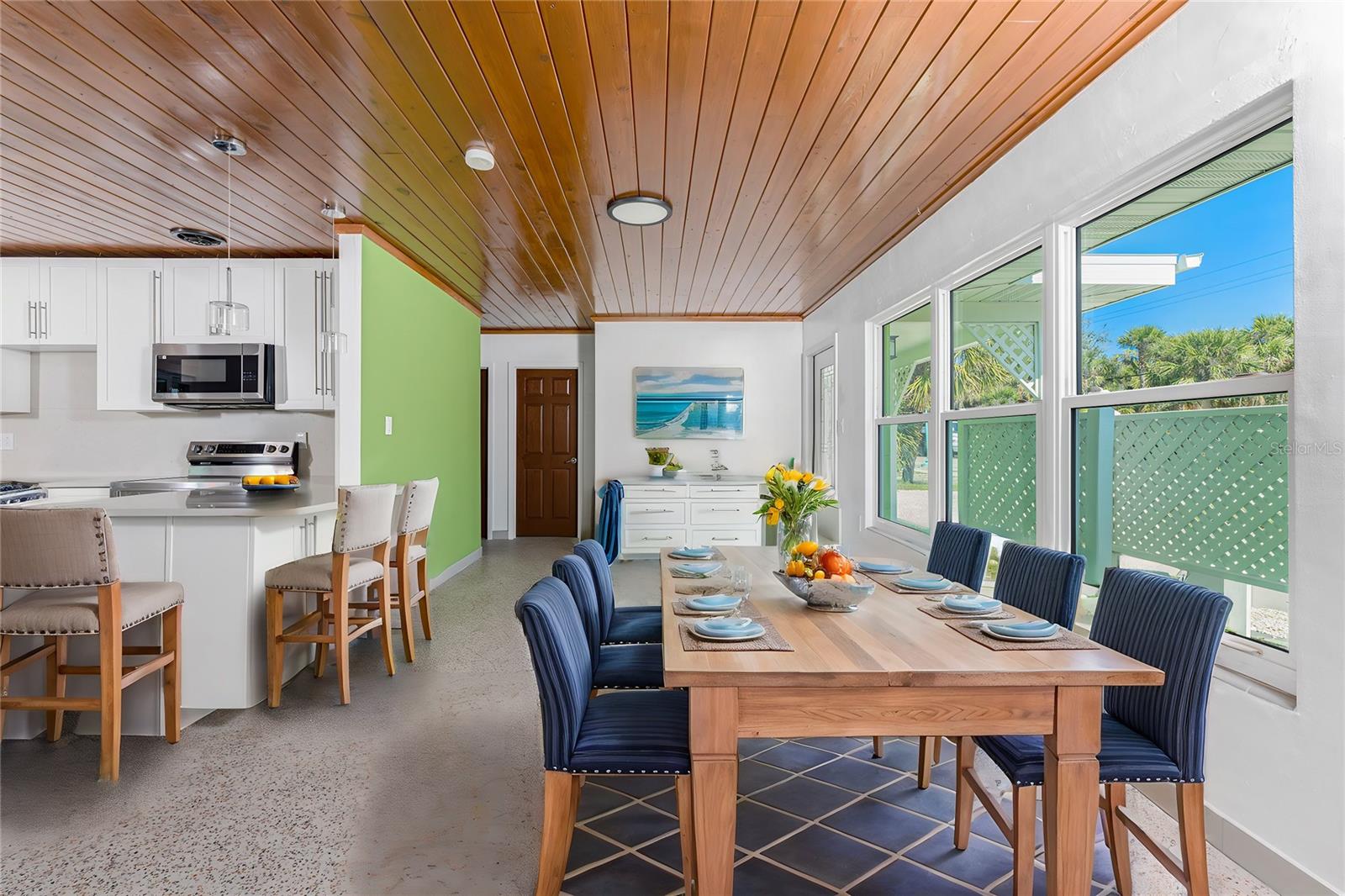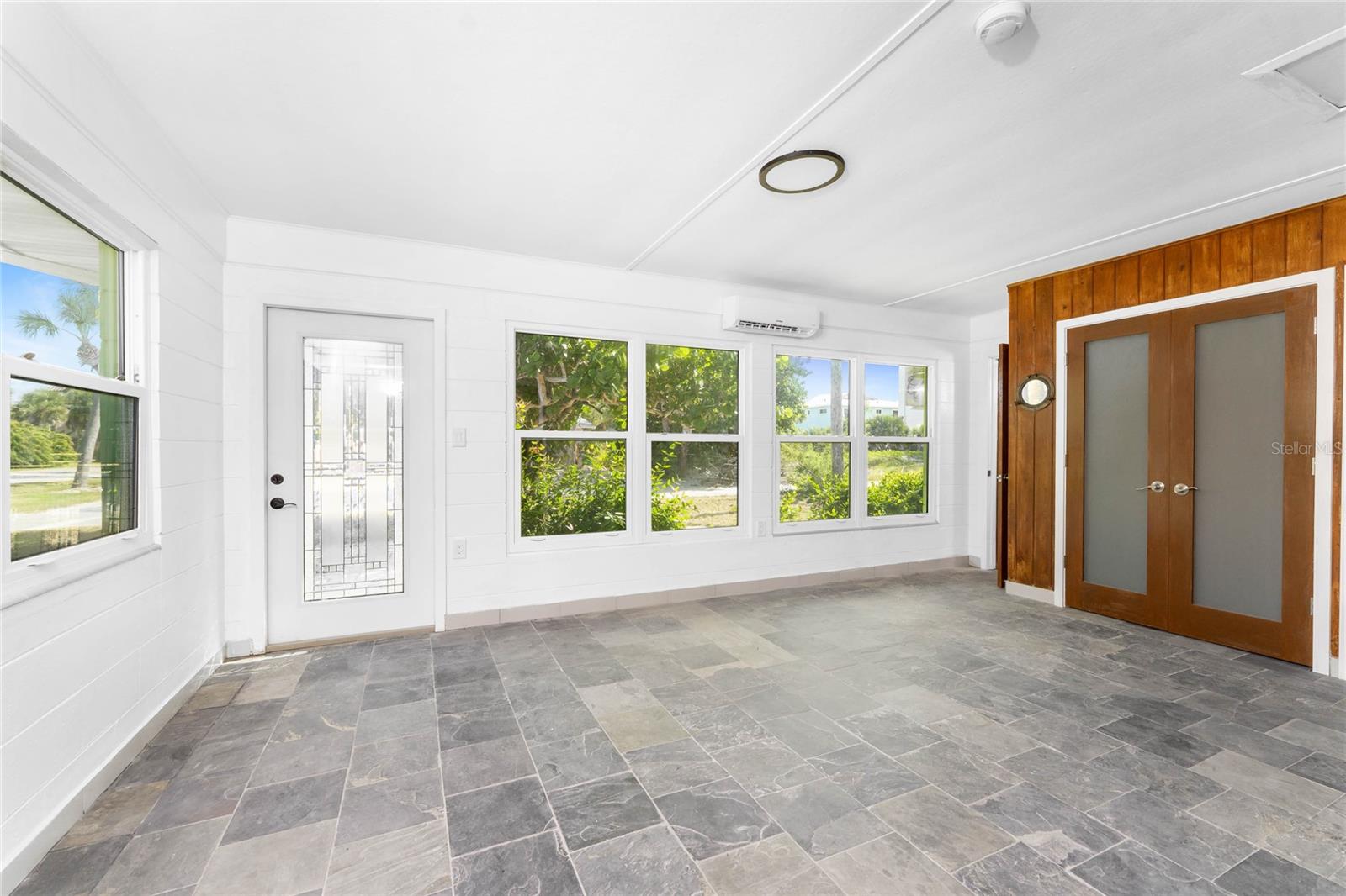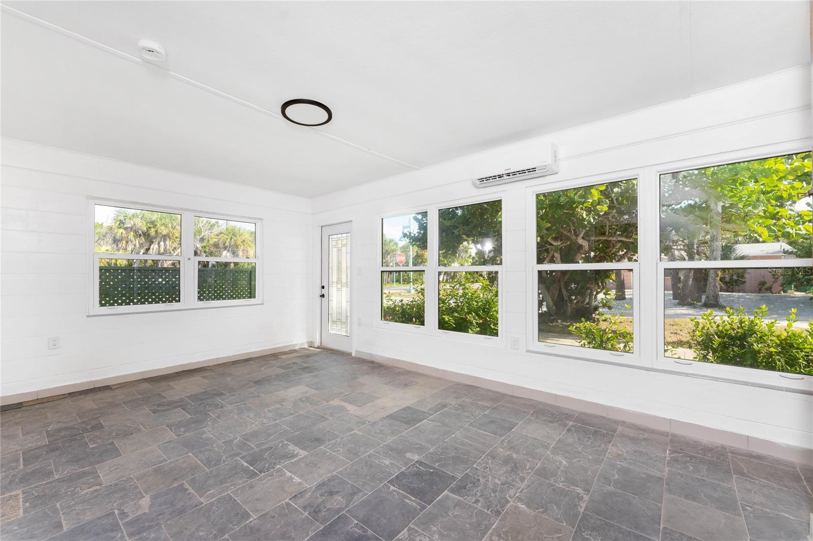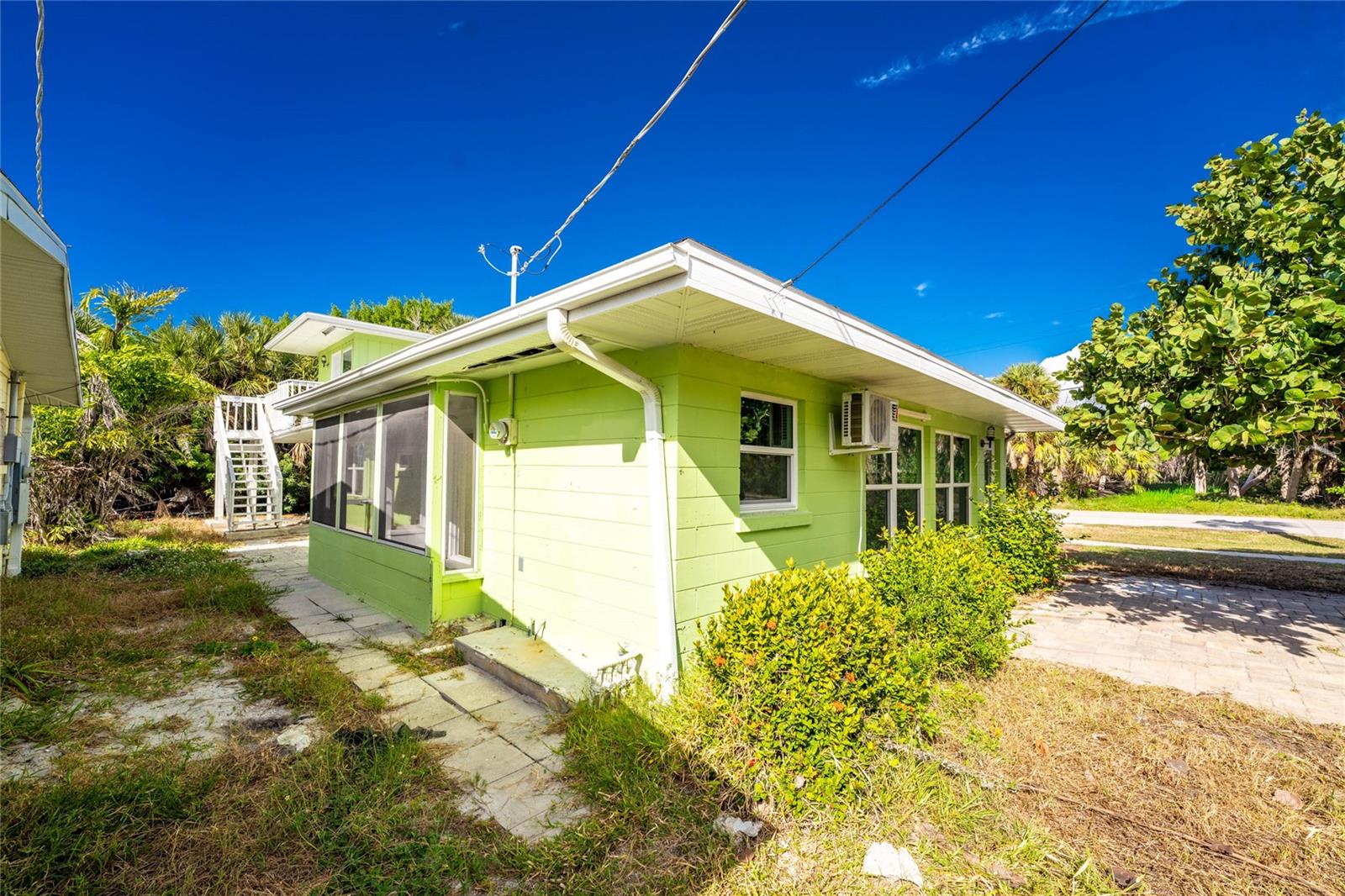 One or more photo(s) has been virtually staged. Experience the charm of coastal living and just steps from the glorious, evocative, Gulf of Mexico, on Manasota Key. This beautifully renovated, concrete block single family home stands strong as a solid Gulf-side retreat, that has truly withstood the test of time. Inside, you will find tasteful updates. The impact-rated windows meet 2025 standards, providing peace of mind and ambient light. Three new mini-split AC systems ensure efficient and customized comfort throughout the home. The kitchen features stone countertops, solid wood soft-close cabinetry, and stylish finishes, including the stainless brand new refrigerator, and stove. Historical details- from the original yellow pine ceilings to the terrazzo floors, blend classic Florida character with modern upgrades access. The bright Florida Room is spacious and ample light is brought in from the many impact windows. The Florida Room opens to a shaded patio with paver footing, ideal for gatherings and Beach Festivities. The home has a separate laundry room, with storage space. Upstairs, a private guest or in-law suite features a full bath, studio layout, and balconies with sweeping Gulf, and Bayside views. A Brand new hurricane impact door has been installed. This home is ideal for year-round living, or to purchase as an investment property for a beach rental. All the hard work has been done- simply bring your bags and start living the Gulf Coast dream.