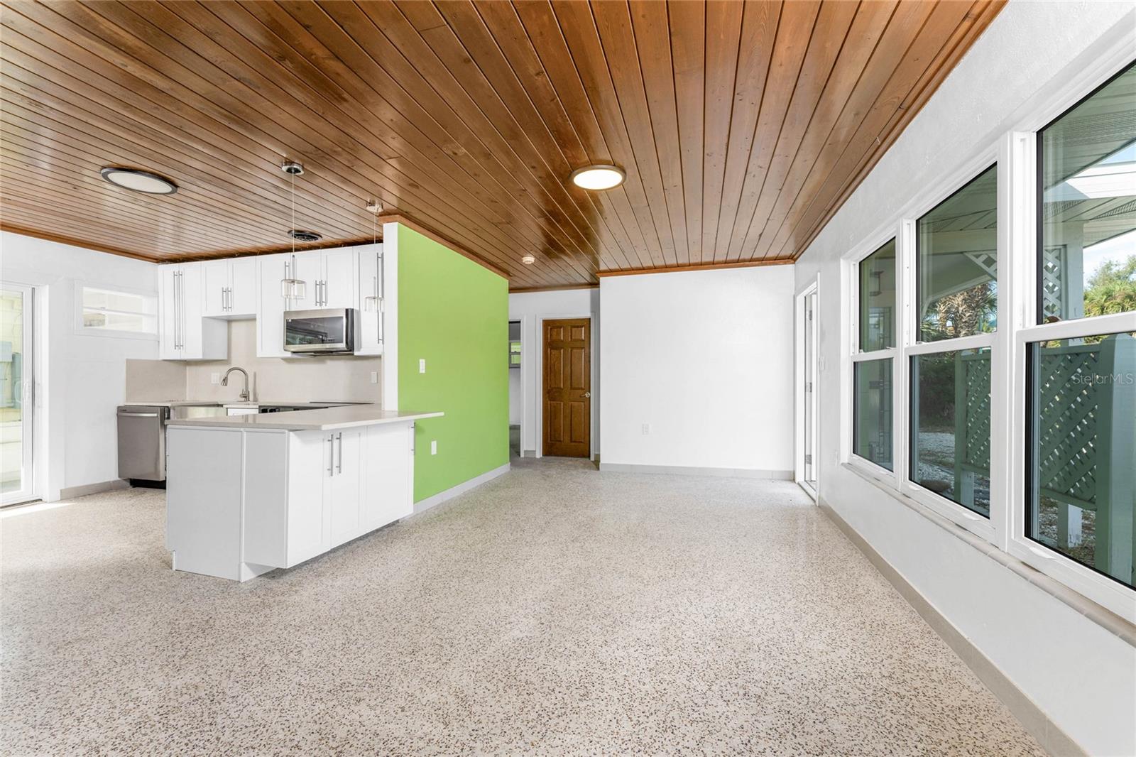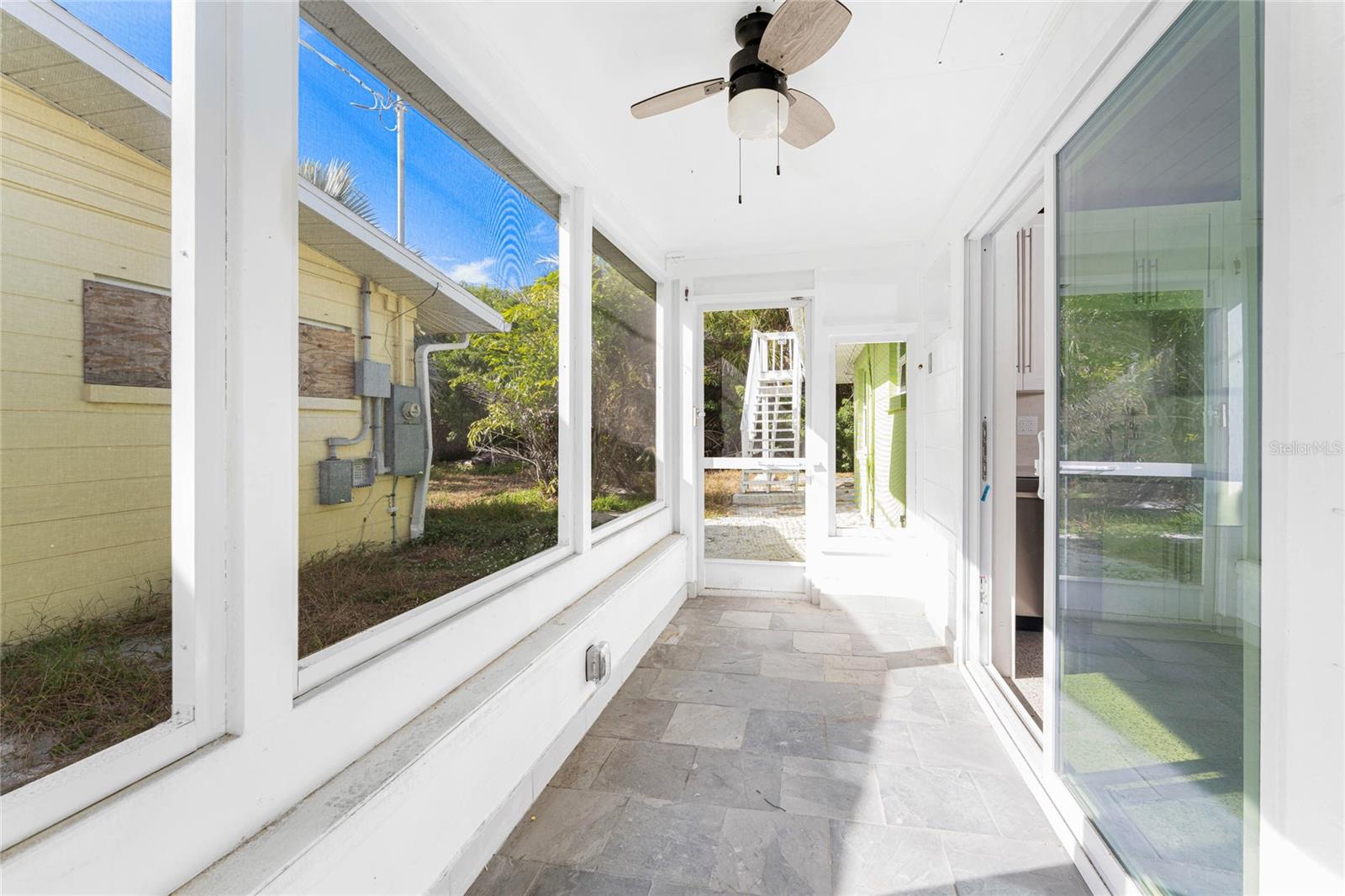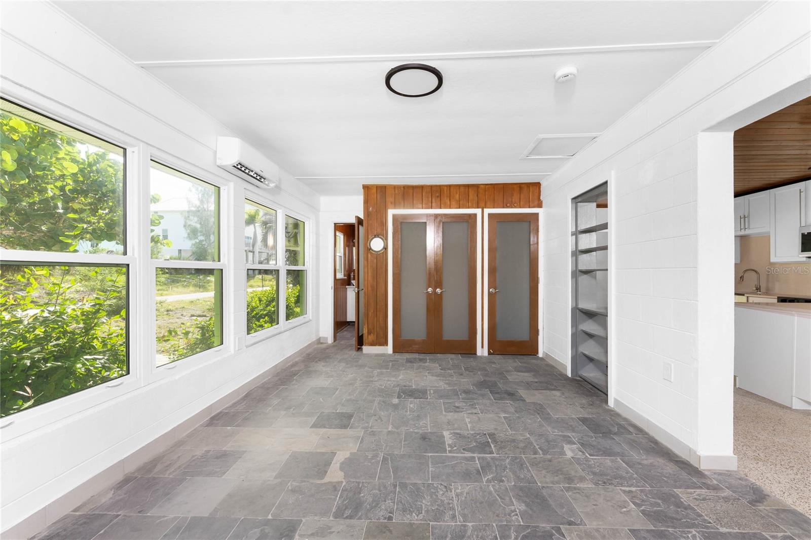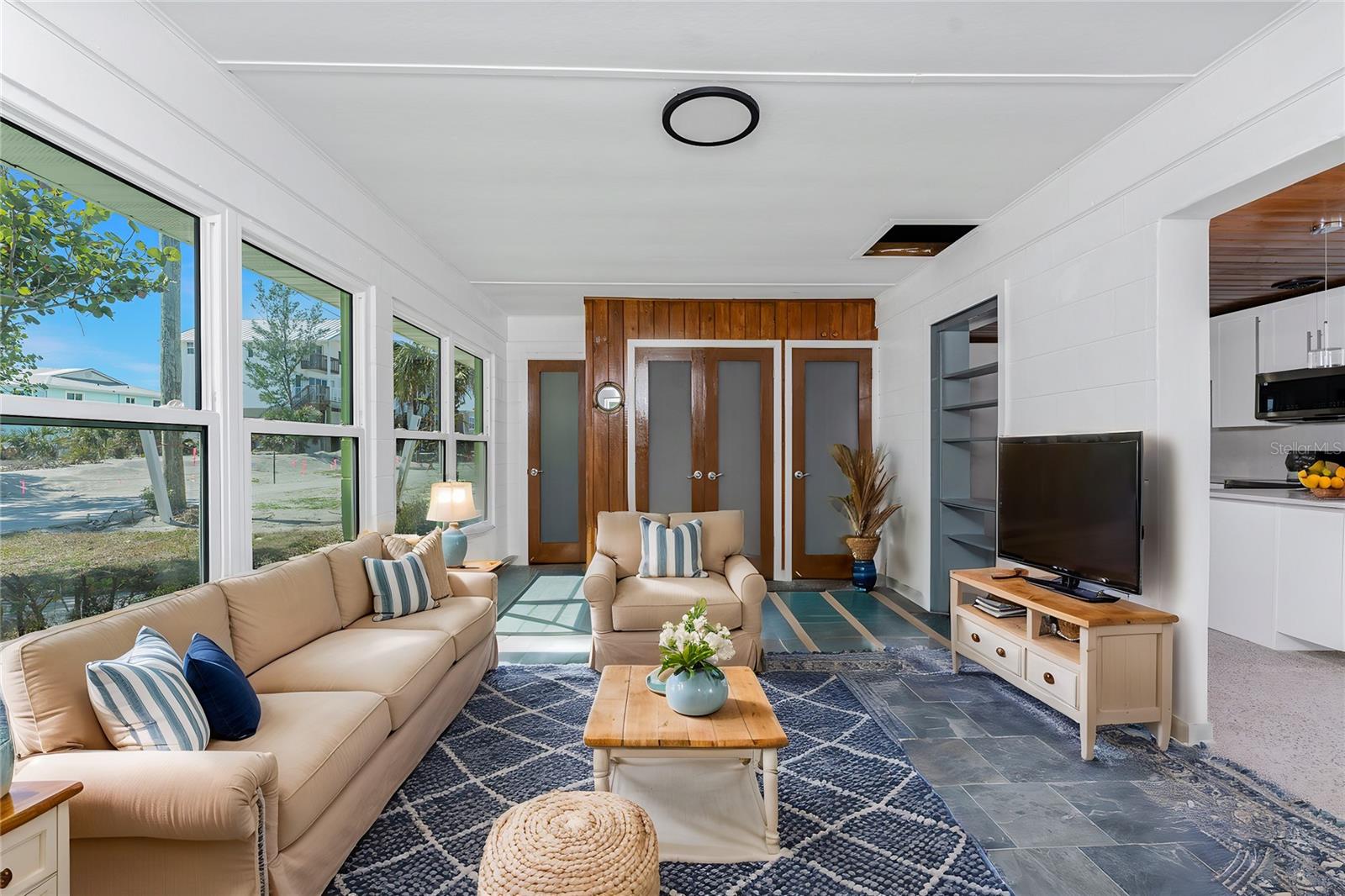 One or more photo(s) has been virtually staged. Experience the charm of coastal living and just steps from the glorious, evocative, Gulf of Mexico, on Manasota Key. This beautifully renovated, concrete block single family home stands strong as a solid Gulf-side retreat, that has truly withstood the test of time. Inside, you will find tasteful updates. The impact-rated windows meet 2025 standards, providing peace of mind and ambient light. Three new mini-split AC systems ensure efficient and customized comfort throughout the home. The kitchen features stone countertops, solid wood soft-close cabinetry, and stylish finishes, including the stainless brand new refrigerator, and stove. Historical details- from the original yellow pine ceilings to the terrazzo floors, blend classic Florida character with modern upgrades access. The bright Florida Room is spacious and ample light is brought in from the many impact windows. The Florida Room opens to a shaded patio with paver footing, ideal for gatherings and Beach Festivities. The home has a separate laundry room, with storage space. Upstairs, a private guest or in-law suite features a full bath, studio layout, and balconies with sweeping Gulf, and Bayside views. A Brand new hurricane impact door has been installed. This home is ideal for year-round living, or to purchase as an investment property for a beach rental. All the hard work has been done- simply bring your bags and start living the Gulf Coast dream.