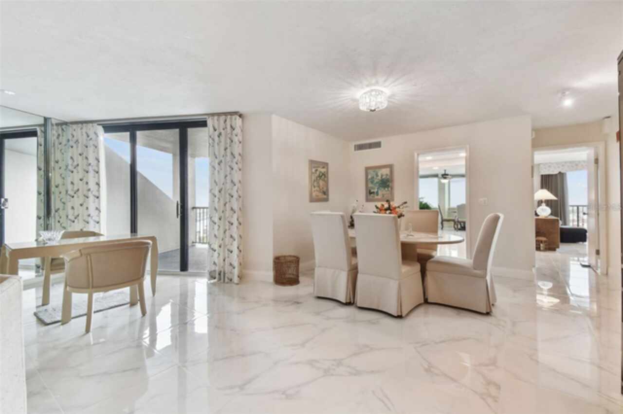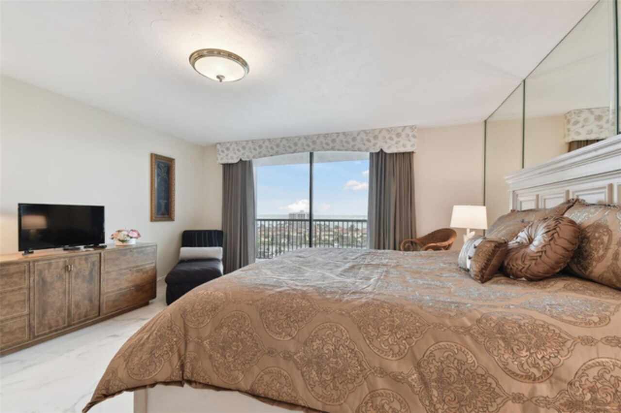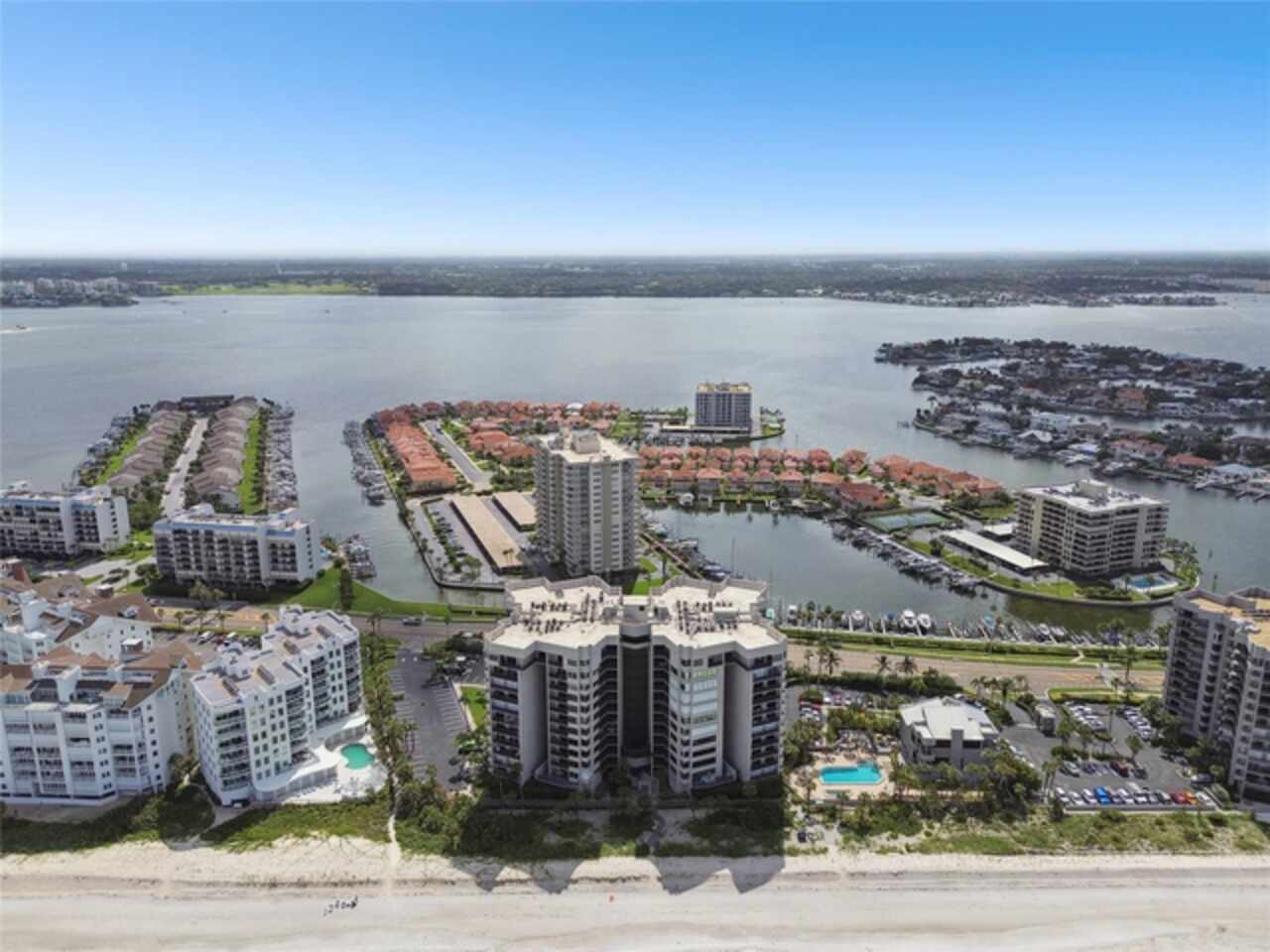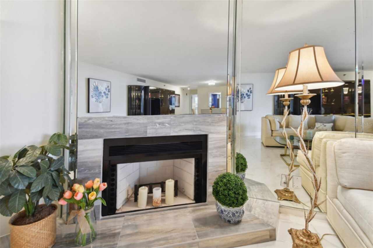 PRICE REDUCED!! Experience luxurious beachfront living in this beautifully updated 2BR/2BA completely turnkey condo in the prestigious Dan's Island community, located on the 8th floor with breathtaking 180-degree panoramic views of the Gulf and the Intracoastal Waterway. Offering 1, 880 sq. ft. of living space, this condo features modern upgrades and top-tier finishes that blend comfort and elegance. Upon entering through double front doors, you'll be greeted by gorgeous tile flooring throughout the entire unit, creating a seamless flow. The spacious living room boasts a cozy fireplace, perfect for chilly evenings, while the large new hurricane-impact rated windows frame stunning water views. Step out onto one of the three private balconies to enjoy the serene surroundings. The gourmet kitchen is a chef's dream with new shaker cabinets, high-end quartz countertops, subway tile backsplash, and brand-new stainless steel appliances. The oversized laundry room provides extra storage space and comes equipped with a new washer/dryer. The primary bedroom offers a private balcony, a walk-in closet, and an en-suite bath complete with a new dual-sink vanity, vanity nook, glass shower enclosure, and ample storage. The second bedroom also features its own private balcony, a generous closet, and an updated en-suite with a vanity and tub. Dan's Island offers exceptional amenities, including 24/7 security, a heated pool and spa, a three-story clubhouse with a basketball/racquetball court, billiards room, and a fitness center. For hosting memorable events, the clubhouse also includes a full-size kitchen with a wet bar. Across the street, you'll find 36 privately owned boat slips, occasionally available for purchase or lease—perfect for boating enthusiasts. Whether you're looking for a vacation getaway or a permanent residence, this condo is an ideal retreat. Call today for your private tour and start living the dream!