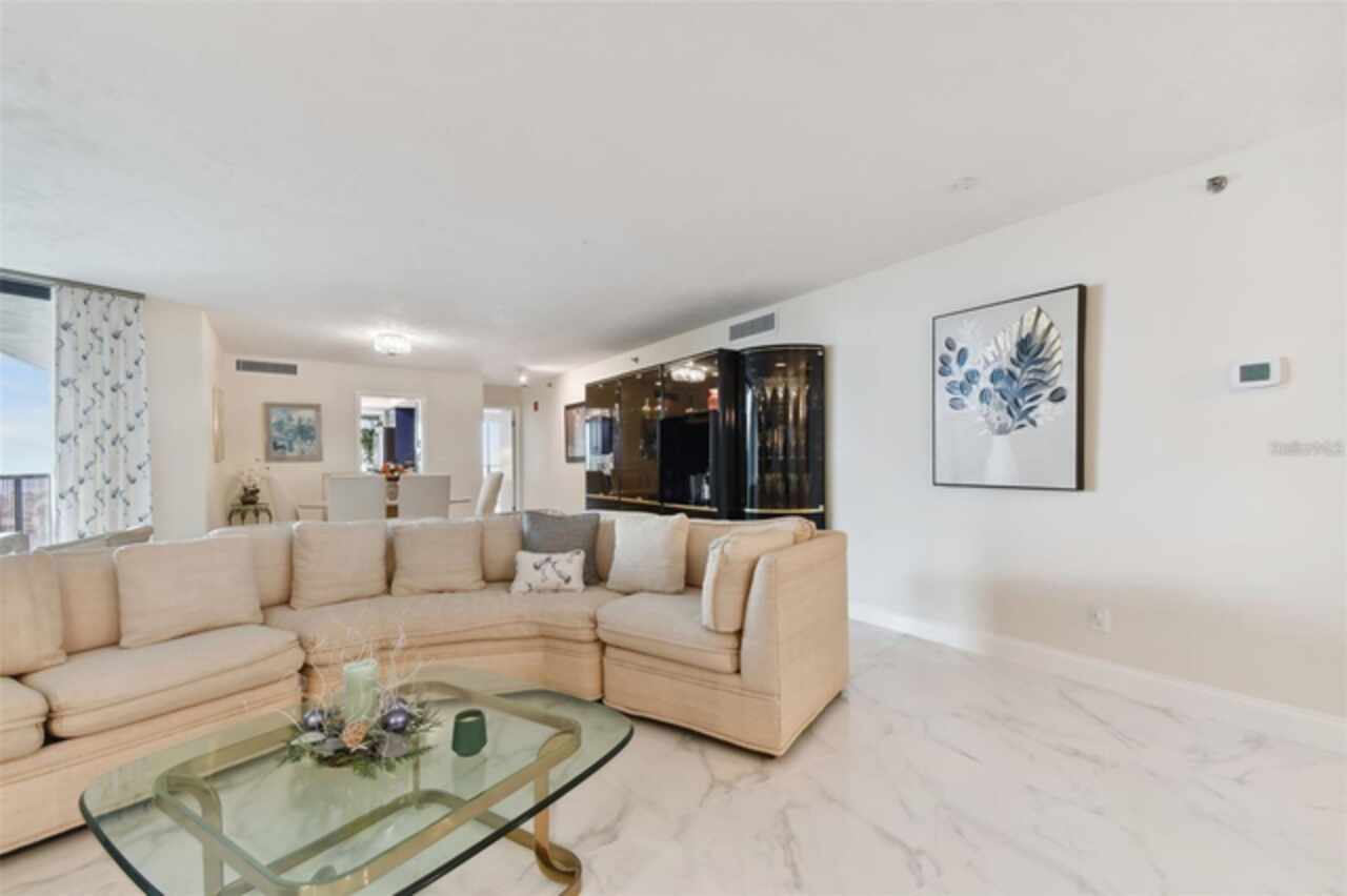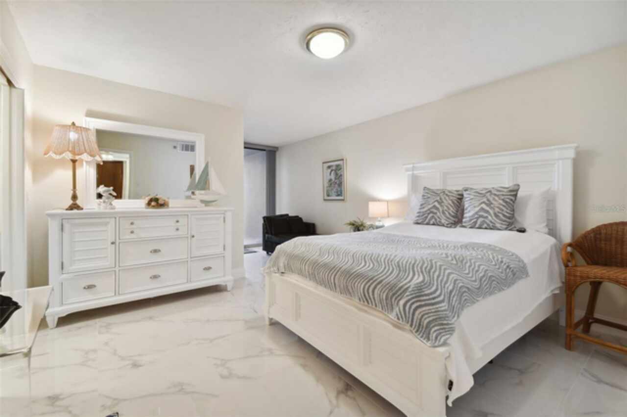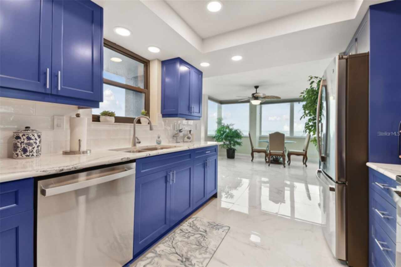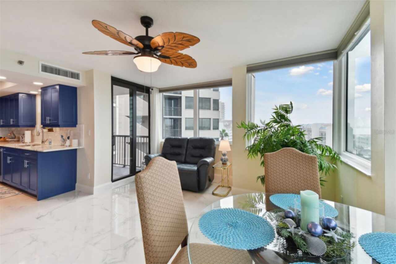 PRICE REDUCED!! Experience luxurious beachfront living in this beautifully updated 2BR/2BA completely turnkey condo in the prestigious Dan's Island community, located on the 8th floor with breathtaking 180-degree panoramic views of the Gulf and the Intracoastal Waterway. Offering 1, 880 sq. ft. of living space, this condo features modern upgrades and top-tier finishes that blend comfort and elegance. Upon entering through double front doors, you'll be greeted by gorgeous tile flooring throughout the entire unit, creating a seamless flow. The spacious living room boasts a cozy fireplace, perfect for chilly evenings, while the large new hurricane-impact rated windows frame stunning water views. Step out onto one of the three private balconies to enjoy the serene surroundings. The gourmet kitchen is a chef's dream with new shaker cabinets, high-end quartz countertops, subway tile backsplash, and brand-new stainless steel appliances. The oversized laundry room provides extra storage space and comes equipped with a new washer/dryer. The primary bedroom offers a private balcony, a walk-in closet, and an en-suite bath complete with a new dual-sink vanity, vanity nook, glass shower enclosure, and ample storage. The second bedroom also features its own private balcony, a generous closet, and an updated en-suite with a vanity and tub. Dan's Island offers exceptional amenities, including 24/7 security, a heated pool and spa, a three-story clubhouse with a basketball/racquetball court, billiards room, and a fitness center. For hosting memorable events, the clubhouse also includes a full-size kitchen with a wet bar. Across the street, you'll find 36 privately owned boat slips, occasionally available for purchase or lease—perfect for boating enthusiasts. Whether you're looking for a vacation getaway or a permanent residence, this condo is an ideal retreat. Call today for your private tour and start living the dream!