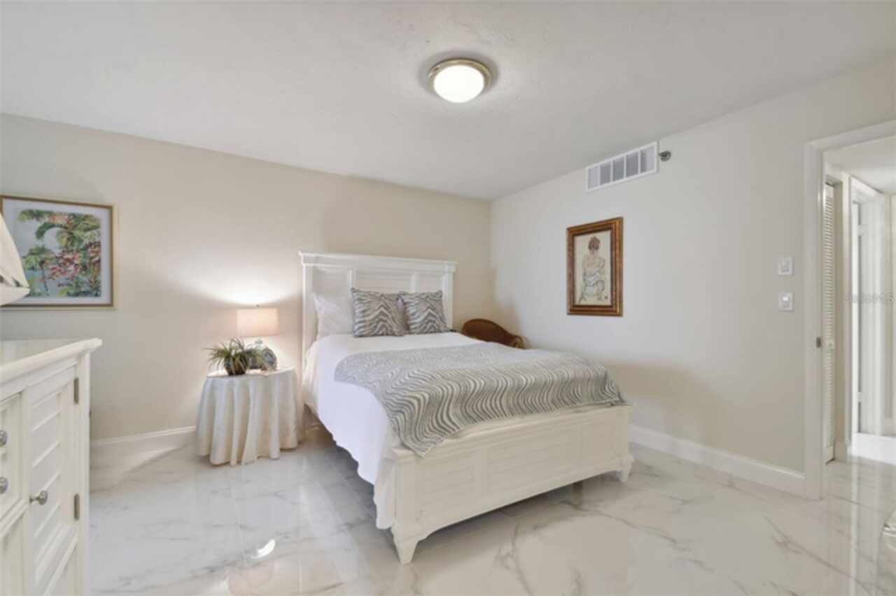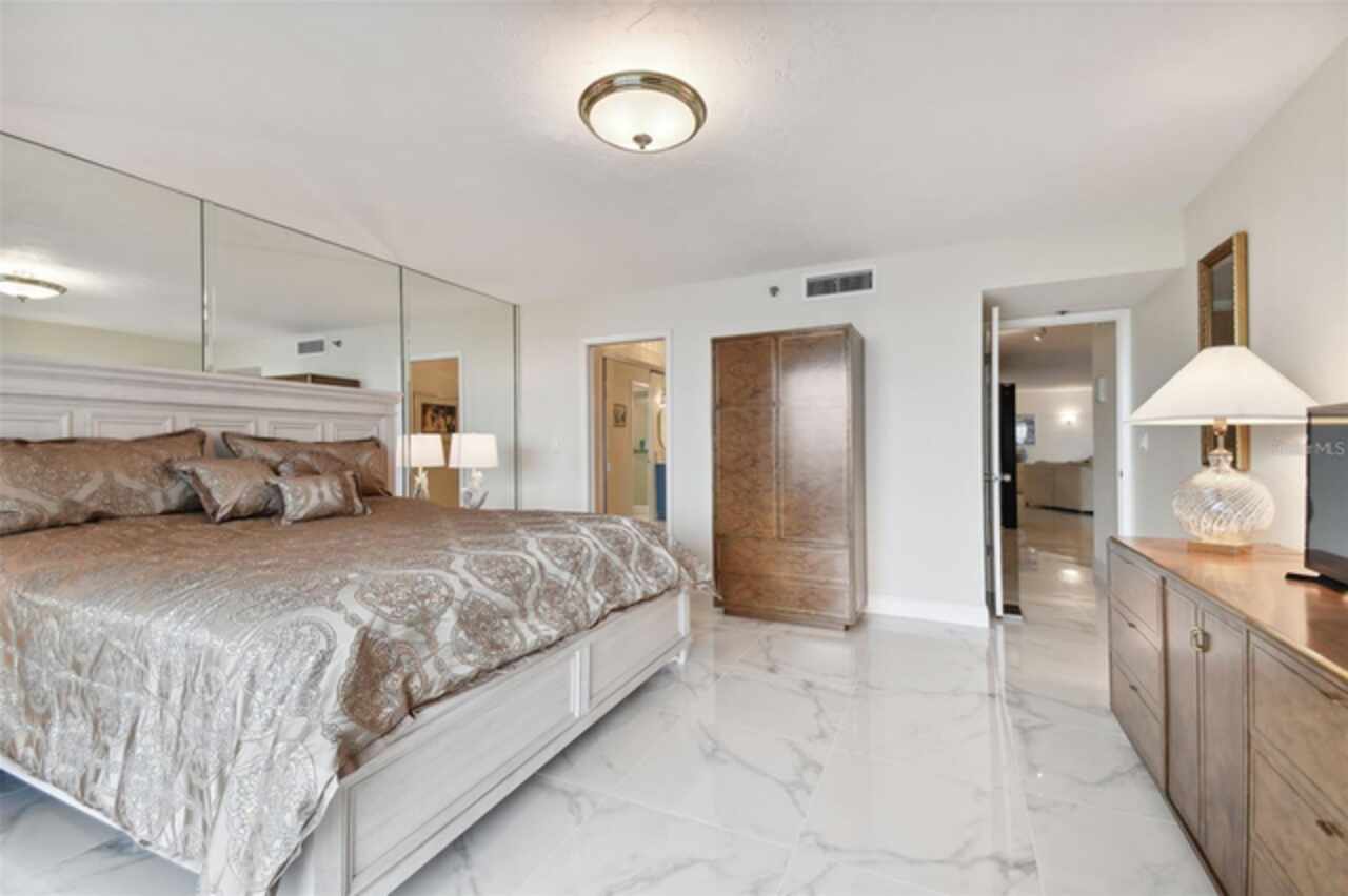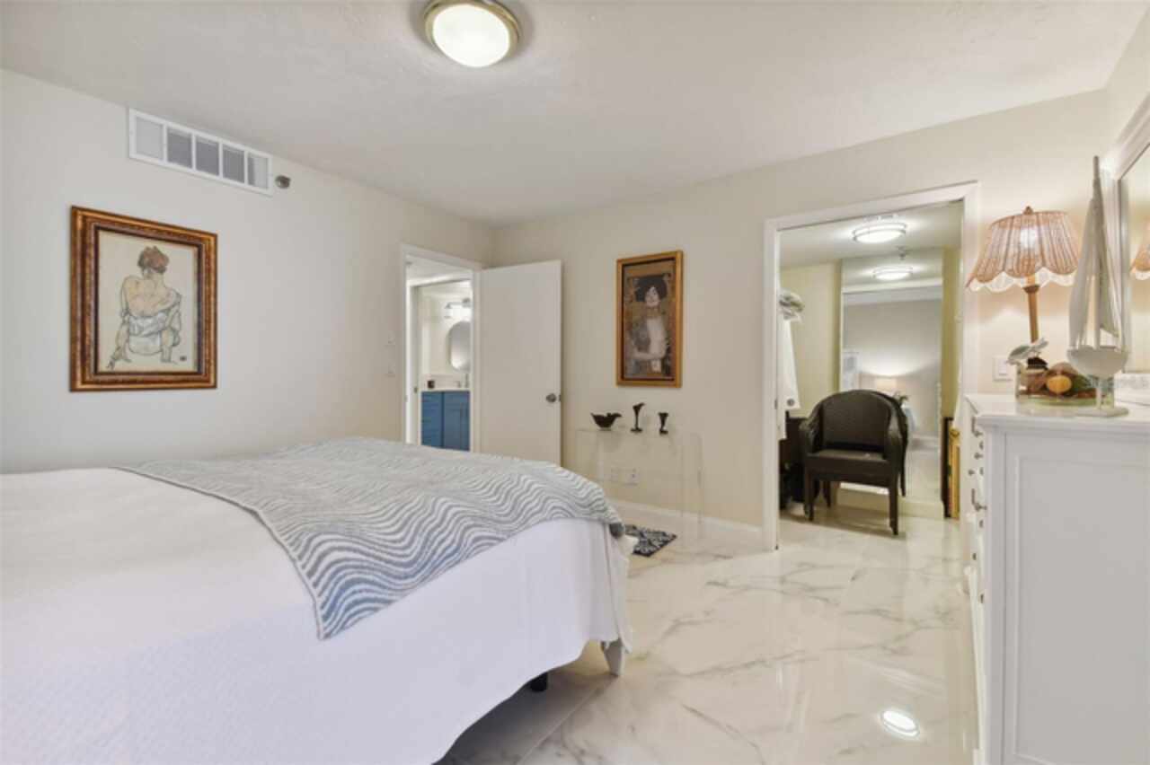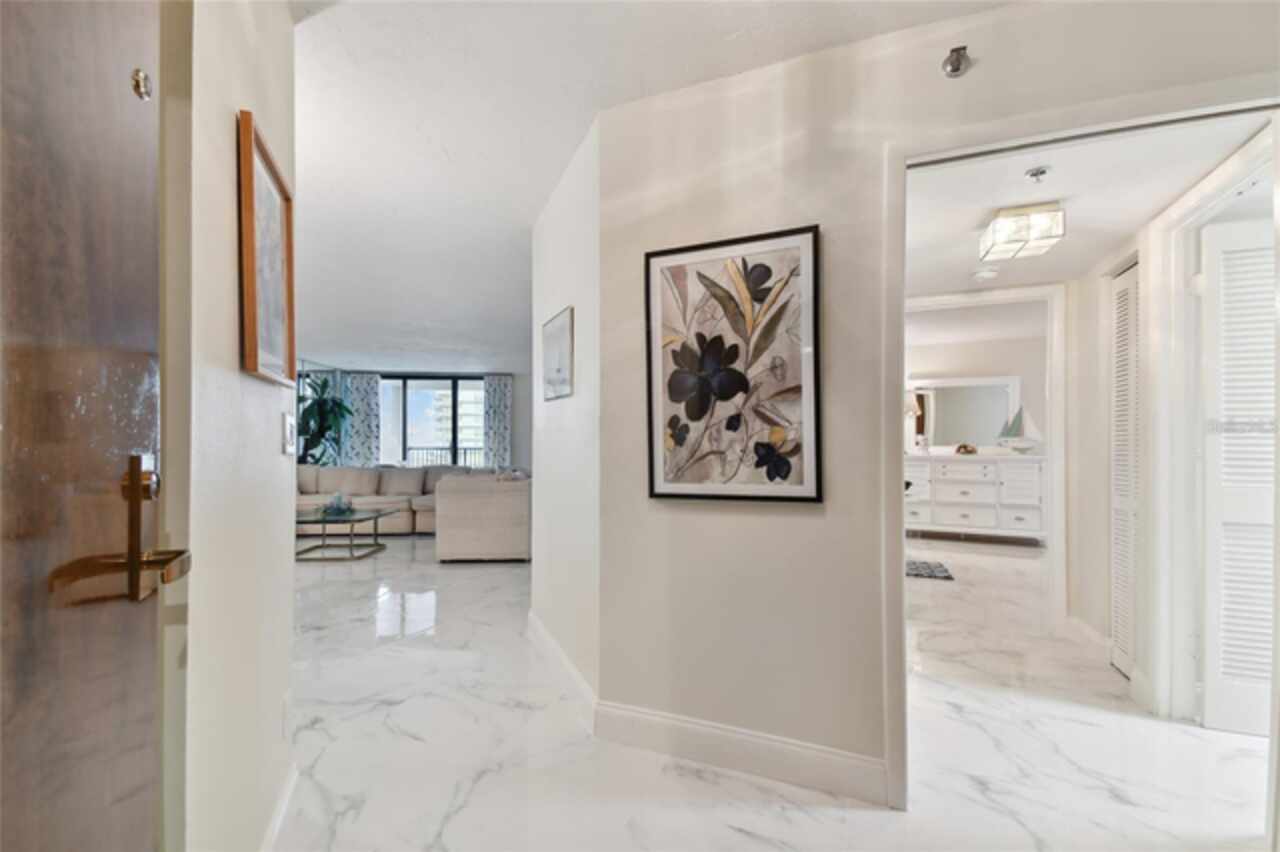 PRICE REDUCED!! Experience luxurious beachfront living in this beautifully updated 2BR/2BA completely turnkey condo in the prestigious Dan's Island community, located on the 8th floor with breathtaking 180-degree panoramic views of the Gulf and the Intracoastal Waterway. Offering 1, 880 sq. ft. of living space, this condo features modern upgrades and top-tier finishes that blend comfort and elegance. Upon entering through double front doors, you'll be greeted by gorgeous tile flooring throughout the entire unit, creating a seamless flow. The spacious living room boasts a cozy fireplace, perfect for chilly evenings, while the large new hurricane-impact rated windows frame stunning water views. Step out onto one of the three private balconies to enjoy the serene surroundings. The gourmet kitchen is a chef's dream with new shaker cabinets, high-end quartz countertops, subway tile backsplash, and brand-new stainless steel appliances. The oversized laundry room provides extra storage space and comes equipped with a new washer/dryer. The primary bedroom offers a private balcony, a walk-in closet, and an en-suite bath complete with a new dual-sink vanity, vanity nook, glass shower enclosure, and ample storage. The second bedroom also features its own private balcony, a generous closet, and an updated en-suite with a vanity and tub. Dan's Island offers exceptional amenities, including 24/7 security, a heated pool and spa, a three-story clubhouse with a basketball/racquetball court, billiards room, and a fitness center. For hosting memorable events, the clubhouse also includes a full-size kitchen with a wet bar. Across the street, you'll find 36 privately owned boat slips, occasionally available for purchase or lease—perfect for boating enthusiasts. Whether you're looking for a vacation getaway or a permanent residence, this condo is an ideal retreat. Call today for your private tour and start living the dream!