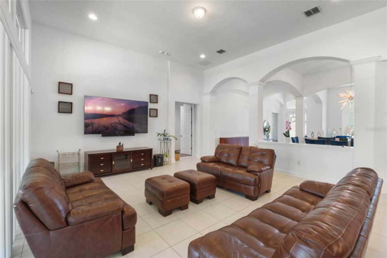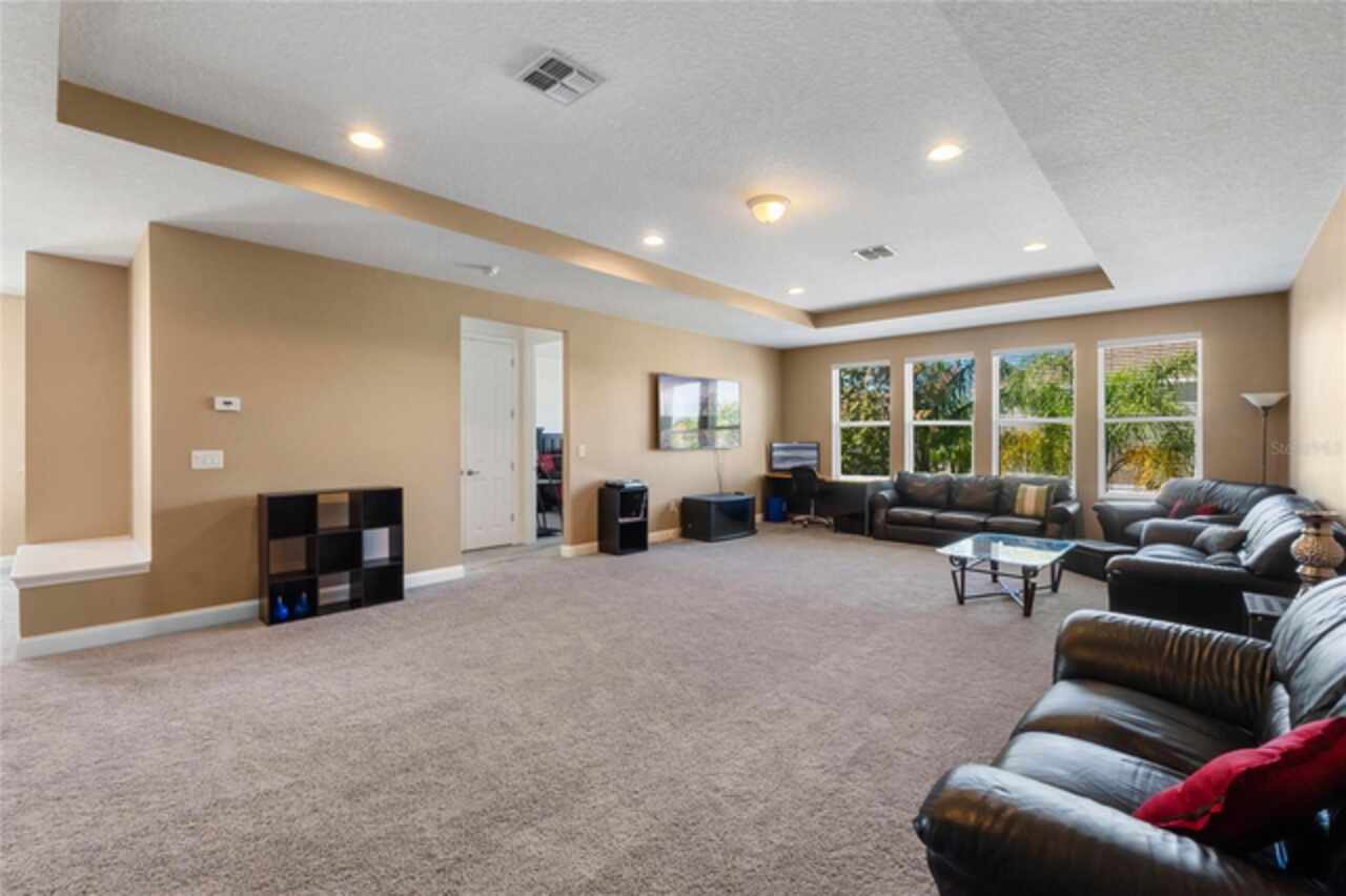 Under contract-accepting backup offers. *OPPORTUNITY: Seller will contribute $31, 912.50 towards the Buyers closing costs plus $31, 912.50 towards a Buy Down on the Interest Rate with Sellers prefered lender with an acceptable offer.* Your dream home awaits! This expansive five-bedroom, four-and-a-half-bathroom residence is situated on a spacious corner lot with over a quarter acre (0.31 acres), conveniently located just across the street from the amenity center and a short distance from a picturesque trail that leads to stunning views of Johns Lake. The home boasts impressive curb appeal, featuring a manicured lawn, paver driveway, stone accents, paver walkway and a covered patio that welcomes you to an etched glass front door. Upon entering, you will be greeted by soaring ceilings, elegant archways, and an abundance of natural light. The formal living room is enhanced by a captivating bay window. The formal dining area is highlighted by a modern light fixture. On the opposite side is a private bedroom with ensuite bathroom that could also make a great place for a home office or den. The modern eat-in kitchen is a chef’s delight, equipped with a stainless-steel built-in oven, a flat cooktop range, 42" cabinetry, sleek Silestone countertops, a decorative backsplash, deep farmhouse sink, pantry, and a breakfast bar adorned with striking pendant lighting. Unwind in the family room that is just off the kitchen, featuring an oversized sliding glass door that provides easy access to the outdoor space. The primary suite serves as a tranquil retreat, complete with a tray ceiling, a walk-in closet, and an ensuite bathroom offering dual sinks, a generously sized shower with a rain head, and a separate garden tub to soak away daily stress. The first floor also includes three additional well-sized bedrooms and a laundry room equipped with a utility sink. Ascend to the second floor to discover a large bonus room with a tray ceiling, presenting numerous possibilities for a game room or media area. A private fifth bedroom and a full bathroom are also located on this level. Step outside through the expansive sliding doors from the family room to the covered patio and screened-in paver patio, or bask in the sunshine in the backyard, enclosed by a vinyl privacy fence. For added convenience when entertaining, the patio features access to a cabana bathroom. Let’s not overlook the three-car garage, which provides ample space for your vehicles and additional storage. This residence is situated within the gated community of Hickory Hammock, which offers an array of amenities including a resort-style community pool, tennis courts, fitness center, clubhouse, playground, dog park, and walking trails leading to a community pier with a seating area. Conveniently located near the 429 expressway, the FL turnpike, and Highway 50, ensuring proximity to a variety of dining, shopping, entertainment options, and renowned Central Florida theme parks. Don’t put your dreams on hold, make this home your s today!