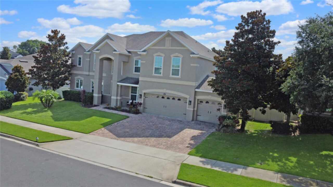 Welcome to this exceptional home with abundant natural light. Perfect for those looking for a home that is large or suitable for multi-generational living. The home features 7 bedrooms with two full master suites, on downstairs and one upstairs. Both have spa bathrooms with his and hers vanities, soaking tubs and separate shower, large oversized closets and spacious additional flex spaces. There are 5 additonal spacious secondary bedrooms that includes a guest bedroom on first floor with remaining bedrooms upstairs with walk in closets. With a 5 way bedroom split, this home offers true privacy for everyone. The family room is light and bright and open to the gourmet kitchen and nook area. In the gourmet kitchen there is a large center island, 42" cabinets, Kitchenaid stainless steel appliances with built in oven and microwave and cooktop, pot filler, touch faucet, granite counter tops and Samsung refrigerator. A large butler pantry is perfect for a morning coffee bar, wine bar or snack station. Off of the foyer is the dining room and additional living room that can be used as a home office, den, playroom or flex space. Upstairs you will find entertainment options with a large light and bright bonus room compete with wet bar and an additional TRUE media room for fun movie nights. Overlooking the kitchen/family room is the open lanai area that overlooks the sparkling salt water with fountain. The yard and patio allows for seamless indoor/outdoor living space and tv hookup. The 3 car tandem garage has custom built in metal storage cabinets and overhead garage racks for plenty of storage. Freshly painted exterior. Don't miss out on the opportunity to own this stunning home in the Verde Park Community. Not only does this exceptional home offer a luxurious lifestyle, but it's also conveniently located near the Florida Turnpike, 429, 408 ensuring an easy commute to downtown Orlando, the attractions and airport. Close to incredible shopping and dining options in Winter Garden and Clermont, as well as top public and private schools, hospitals, parks, lakes, and the West Orange Trail that is steps from the community entrance. This home is the perfect blend of convenience and luxury. And, it has a Winter Garden mailing address but is located in Lake County with Lake County taxes.
