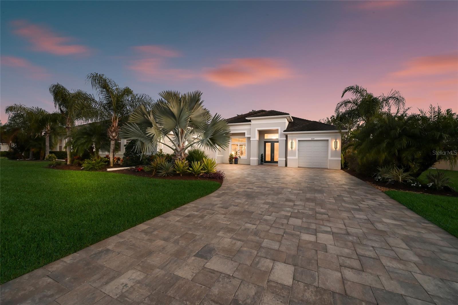 Welcome to this exquisitely customized and designed Santa Maria Model, perfectly situated within the secure, gated boutique community of The Reserve at Twin Rivers. This luxurious four-bedroom, three-bathroom home with two primary suites and an oversized four-car garage exudes sophistication from the moment you arrive, featuring striking curb appeal enhanced by mature landscaping, a long pavered driveway, and a modern custom elevation. Step inside to discover a warm, inviting atmosphere elevated by designer finishes, including elegant crown molding, wood-look tile flooring, and no carpet throughout the home for a sleek, cohesive aesthetic. Unobstructed preserve views are visible from nearly every window, creating a constant connection to nature. The open, flowing floor plan is ideal for both relaxed living and grand entertaining, offering multiple distinct gathering spaces. The great room impresses with a custom woodwork cathedral ceiling, a statement chandelier, a floor-to-ceiling stacked stone electric fireplace, and expansive pocket sliding doors that open effortlessly to the lanai. The dedicated dining room glows with natural light beneath a custom wrought iron chandelier and flows seamlessly into the gourmet kitchen. A chef’s dream, the kitchen features a massive 13-foot quartz island with updated pendant lighting, high-end appliances including a new glass Bespoke refrigerator, induction cooktop, and double steam microwave convection oven combo, all complemented by a sleek designer touch faucet. A charming eat-in nook framed by a bay fishbowl window offers beautiful preserve views while dining. The primary retreat is a private haven, complete with tall tray ceilings, sliding glass doors, and a picture window overlooking the sparkling pool and lush preserve. The luxurious en-suite includes two custom walk-in closets, dual vanities, a soaking tub, and a tiled walk-in shower. A private guest wing hosts two spacious bedrooms with new top-of-the-line LVP flooring and a large shared bath, while the club/flex room at the rear of the home—with full pocket doors and a private bath—offers versatile living options and direct access to the lanai. The true centerpiece of this home is the resort-style outdoor oasis. Three sets of pocket sliding doors create a seamless indoor-outdoor living experience. The expansive covered area features a custom-stained wood beam ceiling with dual designer fans, a full outdoor kitchen, and a sparkling saltwater pool with a new color-changing lighted waterfall. A 40-foot panoramic clear-view screen perfectly frames breathtaking views of majestic Spanish oaks and the beautifully fenced backyard, offering total privacy and tranquility. Every detail of this home has been meticulously curated, blending luxury, comfort, and natural beauty. Conveniently located near shopping, downtown St. Pete, Lakewood Ranch Waterside, Tampa and Sarasota airports, award-winning beaches, and UTC Mall—all with no CDD fees—this property delivers an unmatched Florida lifestyle in one of the area’s most sought-after communities.
