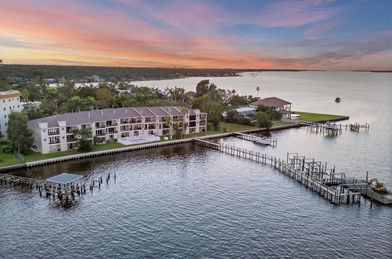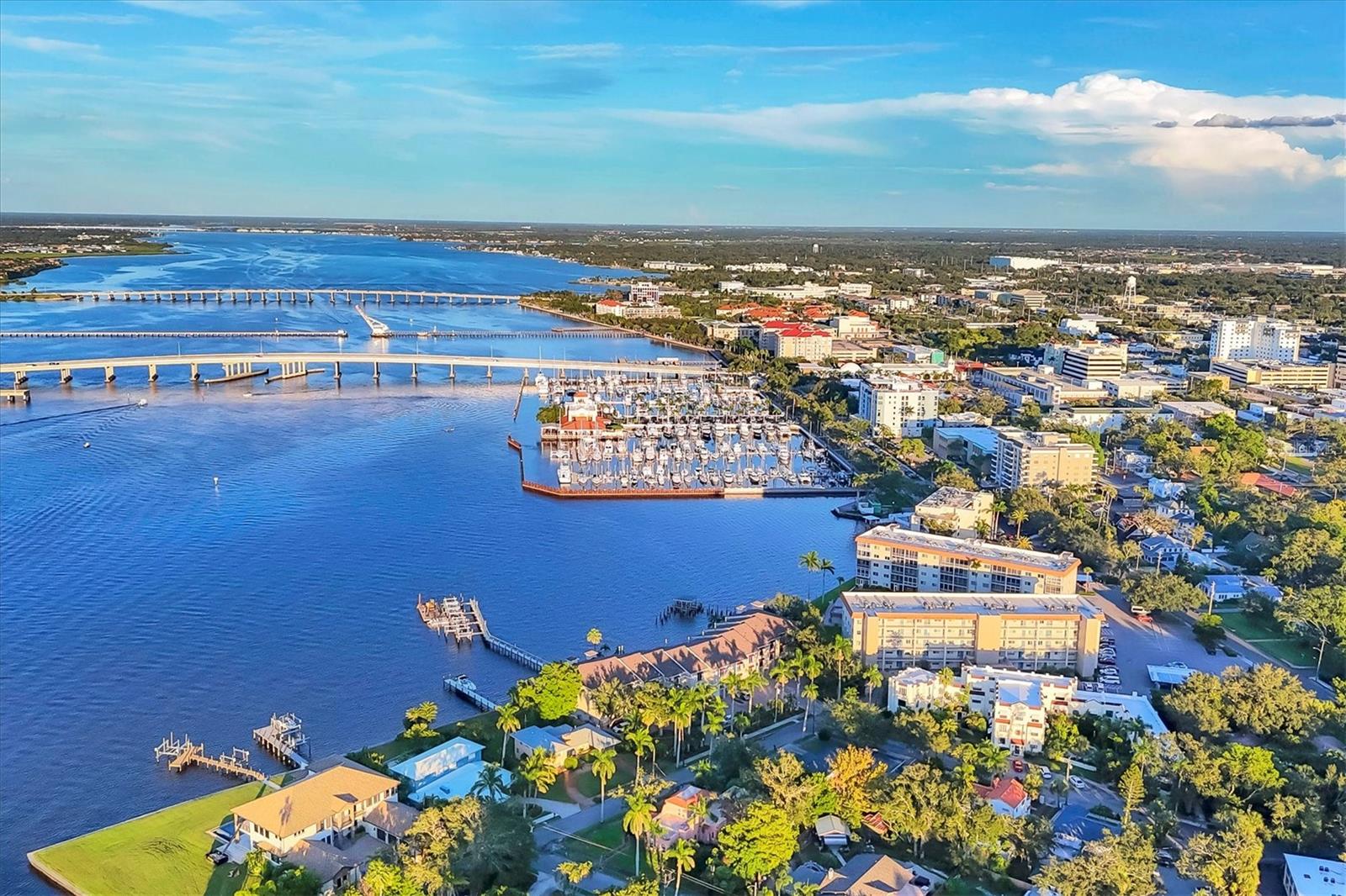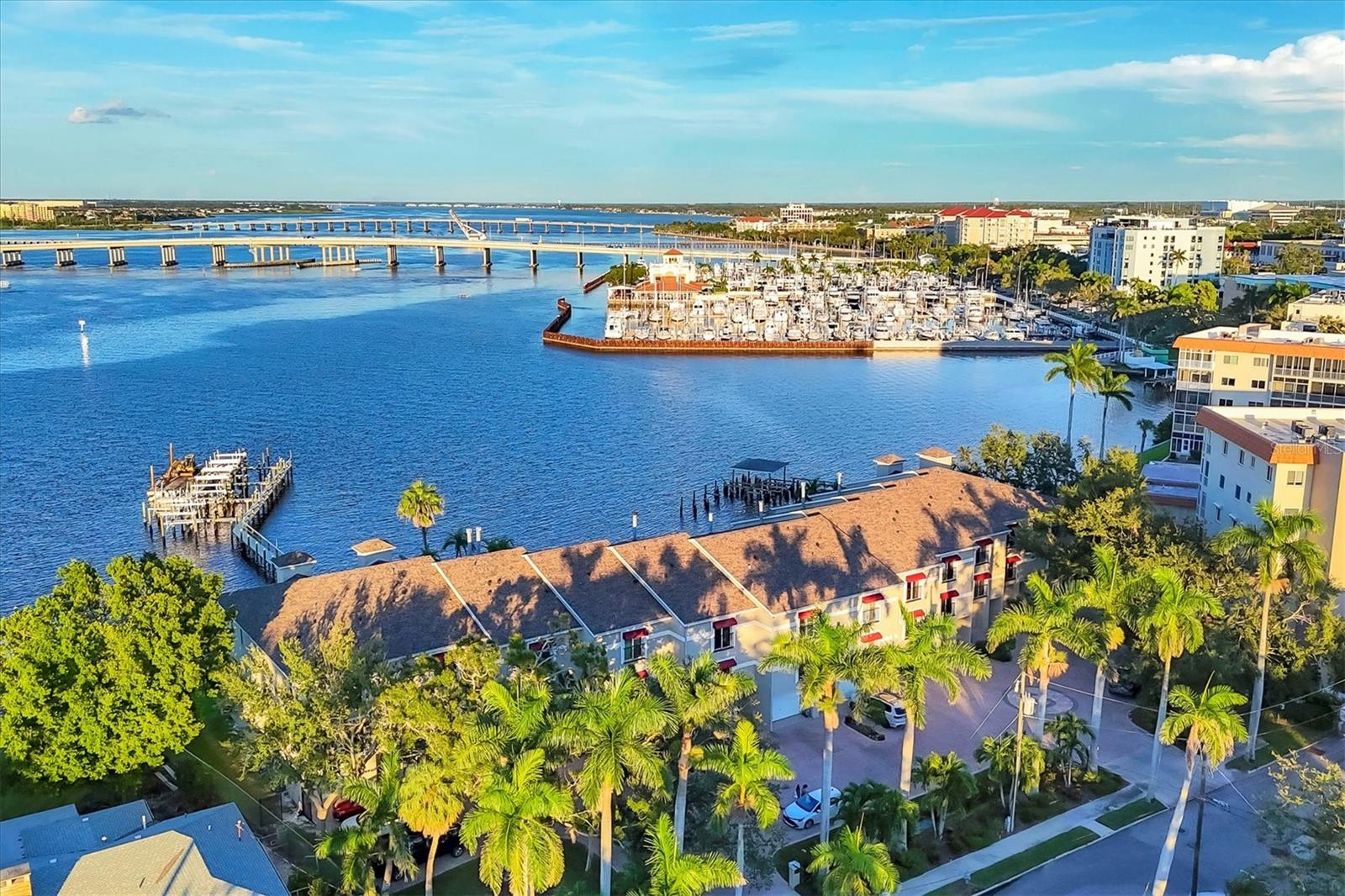 Breathtaking views from this stunning 3 bedroom, 3 bath end unit townhome that comes with your own deeded boat slip with lift that can accommodate up to 12, 500 lbs. An exclusive opportunity to own in this rarely available community of 12 units in the downtown hideaway community of Point Pleasant, convenient to marina, restaurants, and Riverwalk. This home has been beautifully decorated with a unique sense of style, perfect for entertaining family and friends, and you are sure to enjoy the sunset from either of the two porches overlooking the spectacular Manatee River. The private elevator was replaced in June 2025 making it so easy to access the 3 levels, and the A/C was replaced in July 2025. There are plantation shutters throughout along with the majestic crown molding, surround sound system and more. Safety features include a fire sprinkler system throughout and electric hurricane shutters that operate at the touch of a switch. The 2-car tandem garage has pulleys for storing your kayaks. Once you see this beautiful condo, you will fall in love! Call today to see it for yourself.