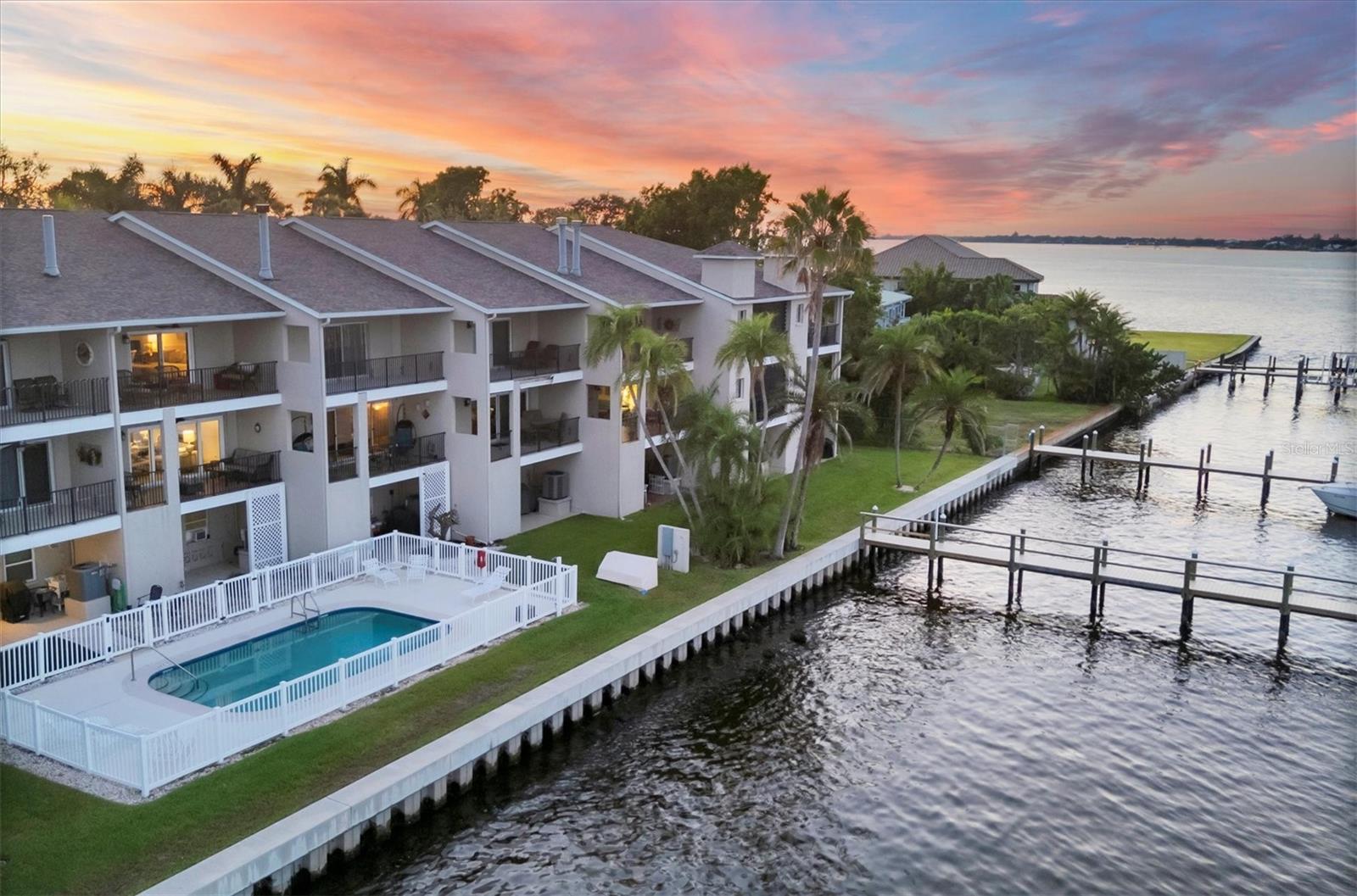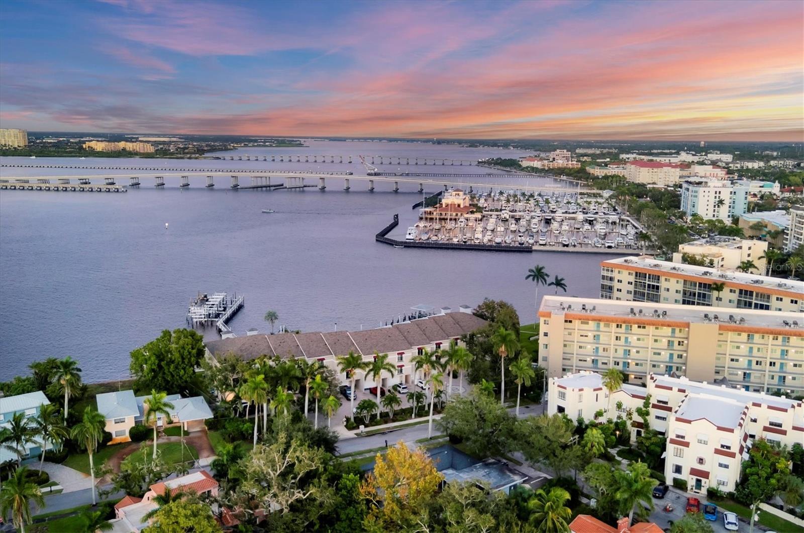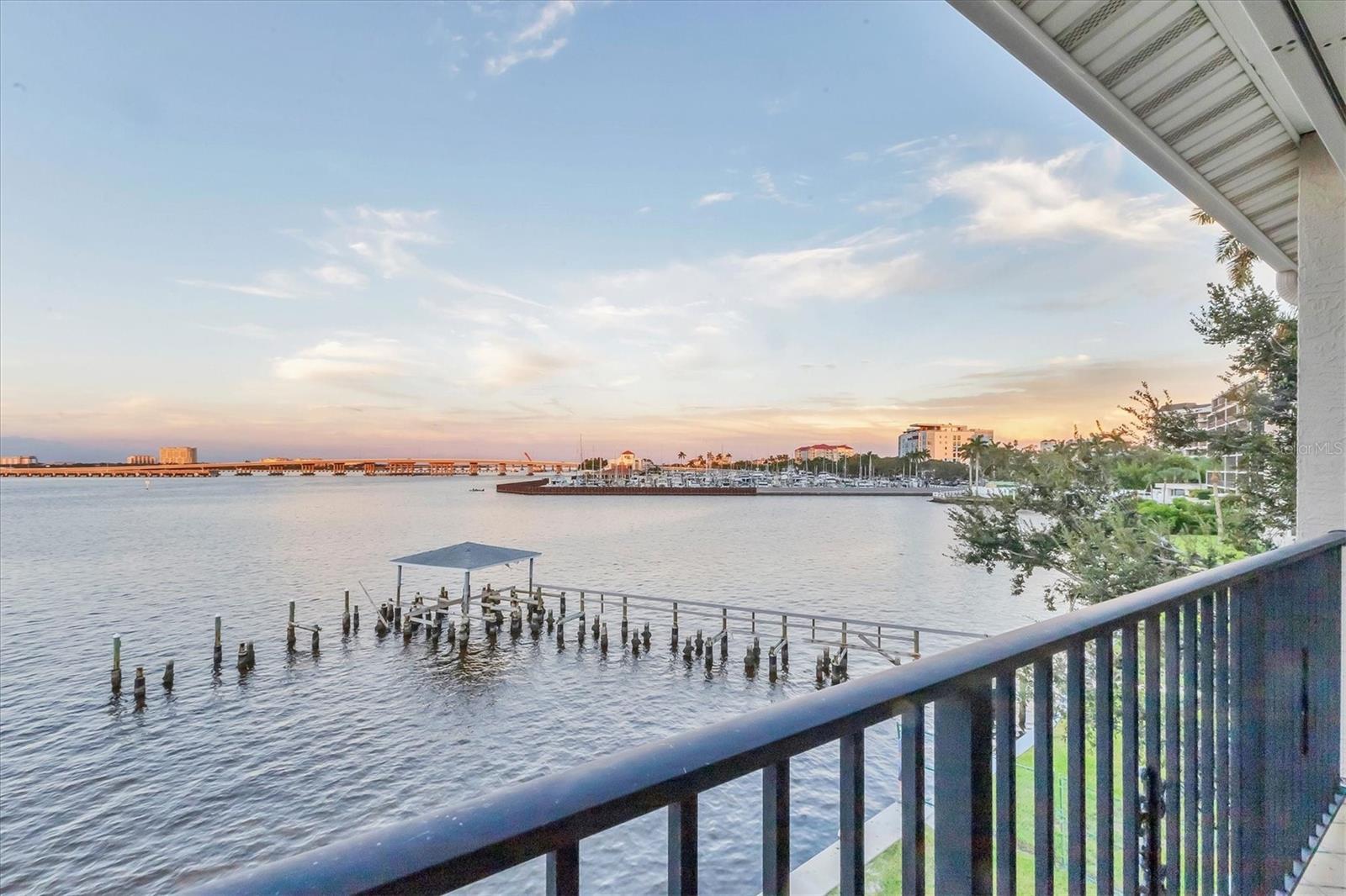 Breathtaking views from this stunning 3 bedroom, 3 bath end unit townhome that comes with your own deeded boat slip with lift that can accommodate up to 12, 500 lbs. An exclusive opportunity to own in this rarely available community of 12 units in the downtown hideaway community of Point Pleasant, convenient to marina, restaurants, and Riverwalk. This home has been beautifully decorated with a unique sense of style, perfect for entertaining family and friends, and you are sure to enjoy the sunset from either of the two porches overlooking the spectacular Manatee River. The private elevator was replaced in June 2025 making it so easy to access the 3 levels, and the A/C was replaced in July 2025. There are plantation shutters throughout along with the majestic crown molding, surround sound system and more. Safety features include a fire sprinkler system throughout and electric hurricane shutters that operate at the touch of a switch. The 2-car tandem garage has pulleys for storing your kayaks. Once you see this beautiful condo, you will fall in love! Call today to see it for yourself.
