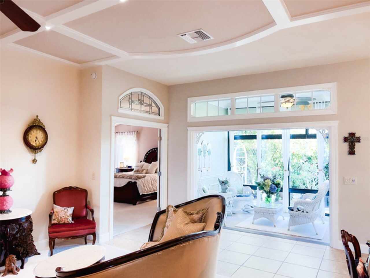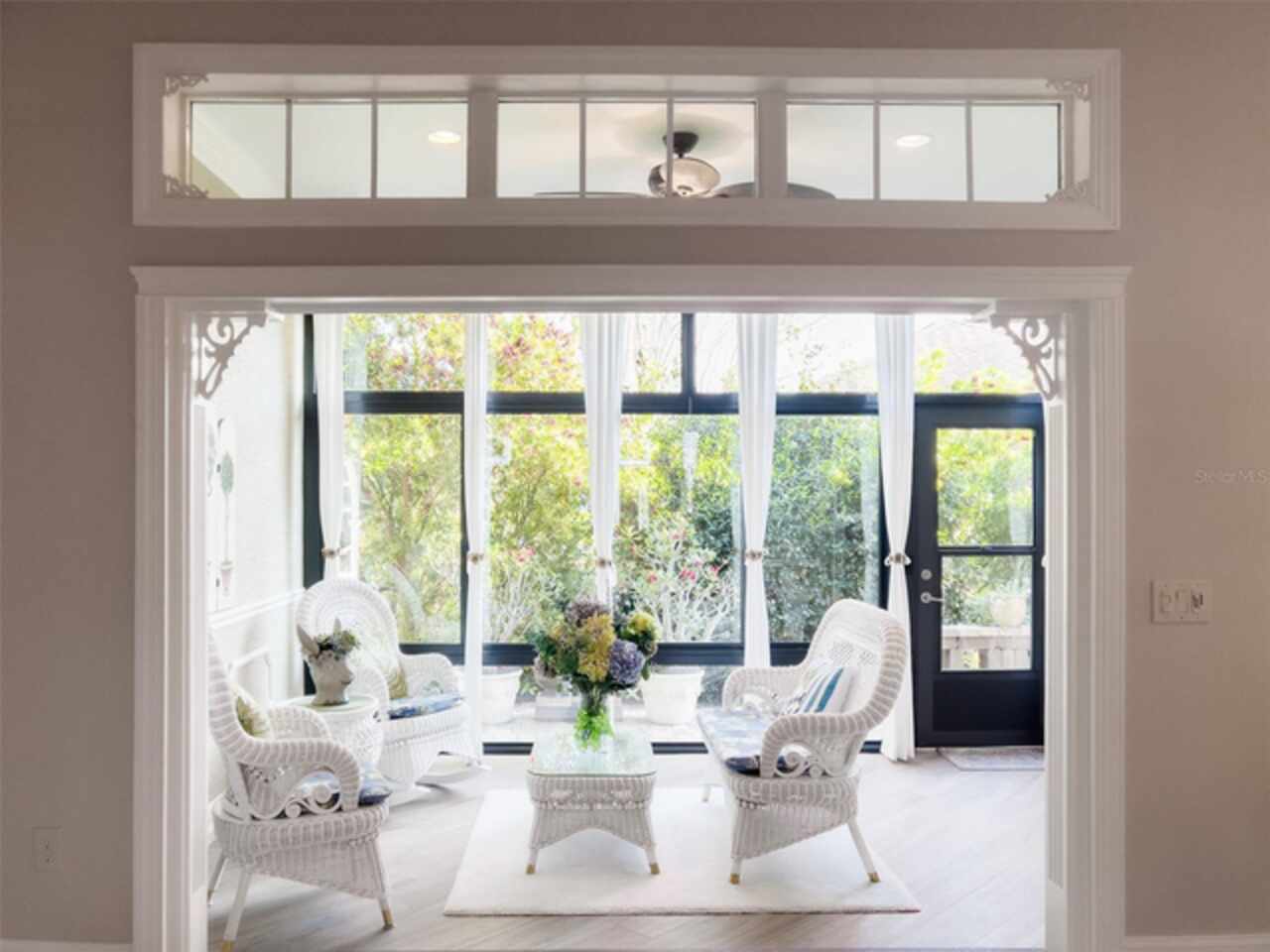 Under contract-accepting backup offers. SHOW STOPPER! NOT a COOKIE CUTTER HOUSE; this house has storybook appeal! Discover this one-of-a-kind, meticulously maintained 3-bedroom, 2-bathroom home with a spacious 2-stall garage within the Village of Hillsborough. This stunning residence showcases impeccable care inside and out with countless upgrades, including two large stunning Andersen casement windows with diamond-shaped panes, a gorgeous foyer that leads to a large living room featuring high ceilings, custom millwork and recessed lighting. Your eyes will immediately be drawn to the luxurious 140 sq ft. Lanai space with all the great views, floor to ceiling double pane windows for maximum natural light. Culinary enthusiasts will love the gorgeous kitchen, remodeled in 2020, boasting top-of-the-line cabinets, solid wood doors and drawers, a custom range hood, custom quartz countertops, stainless steel appliances, an upgraded backsplash, and a premium apron sink. The thoughtful split bedroom layout offers fantastic privacy, with a separate wing for guests, complete with a pocket door separating the two guest bedrooms and bathroom from the luxurious principal suite, which boasts French entry doors, his and her closets, and a private soaking tub. Enjoy the new laminate flooring in one of the three spacious bedrooms. Step outside to the backyard, affectionately named "The Serenity Garden, " which certainly lives up to its name with mature landscaping, a charming paver patio, and a tranquil atmosphere perfect for relaxation and gatherings, enhanced by upgraded lighting throughout the property. 31' of retractable awnings with new fabric. Enjoy a great meal in the dining room with spectacular views of the enchanting back patio. Additionally, energy-efficient windows provide both beauty and functionality. Need extra storage? The attic space with pull down stairs has added lighting and shelving to fulfill your organizing dreams. The roof was professionally cleaned and reconditioned in 2024 and the AC has been regularly maintained. Enjoy the benefits of the 1 million gallon whole house Pelican Water treatment system. Don’t miss the chance to own this exceptional home in a vibrant community with easy access to golf courses, recreational activities, shopping, and dining options. Schedule your private showing today! Please note that the chandeliers in both the foyer & the dining room, along with the ceiling fans in the living & primary bedroom will be replaced. Seller motivated!