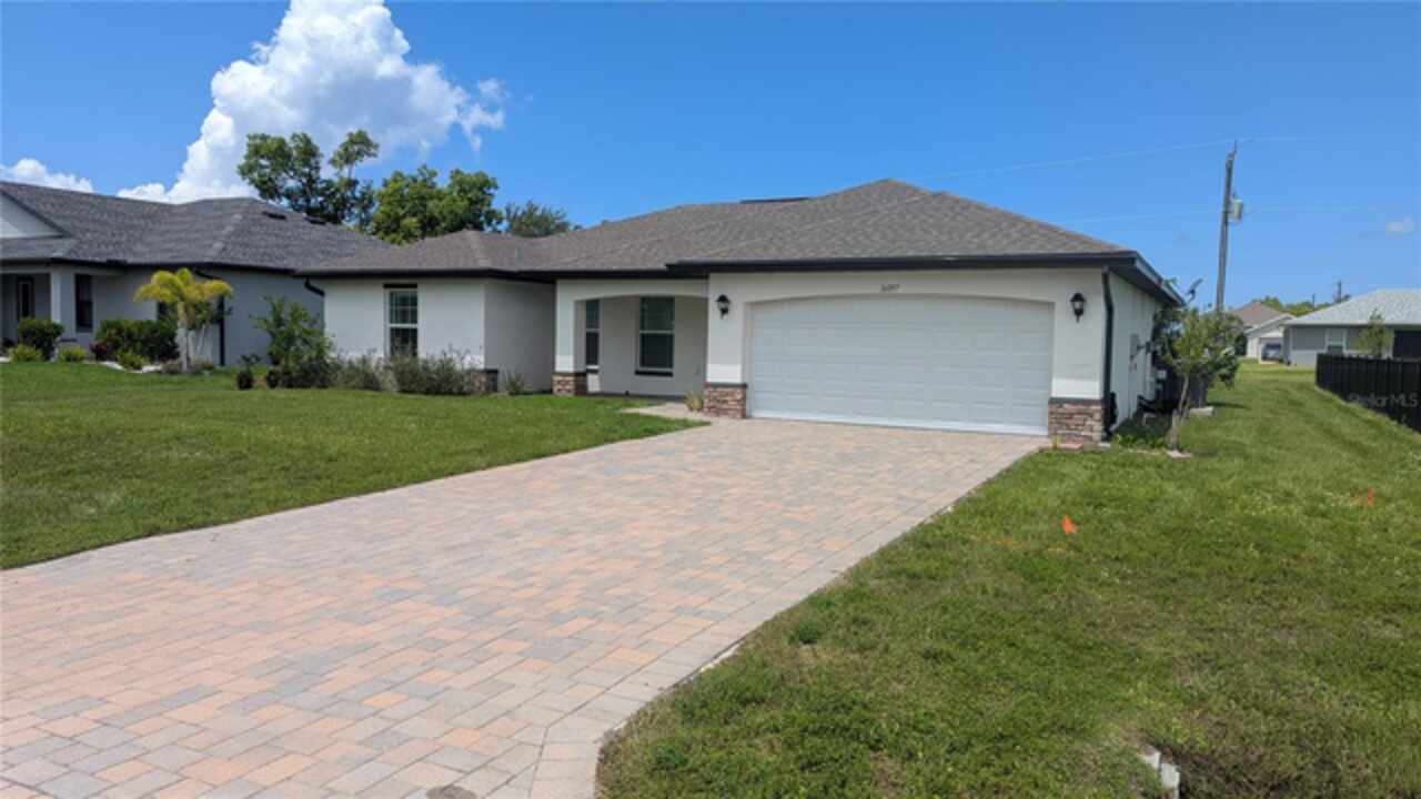 Short Sale. Bank Approved Price! This Is A Short Sale. Welcome to Burnt Store Village! This beautiful home built in 2022 is ready for a new owner! This home consists of 3 bedrooms, 2 baths, a large open family room with volume ceilings open to the kitchen, perfect for large gatherings. The home has all tile floors throughout. The current owner has installed all mororized blinds in the main portion of the house and custom plantation shutters in the bedrooms. Outside you will find a huge screened in porch with pavers, great for entertaining. The current owner has installed a hurricane rated screen enclosure. Burnt Store Village is convenient to Punta Gorda and Fort Myers. Call today to schedule your tour of this great home! Agents: Please read confidential comments