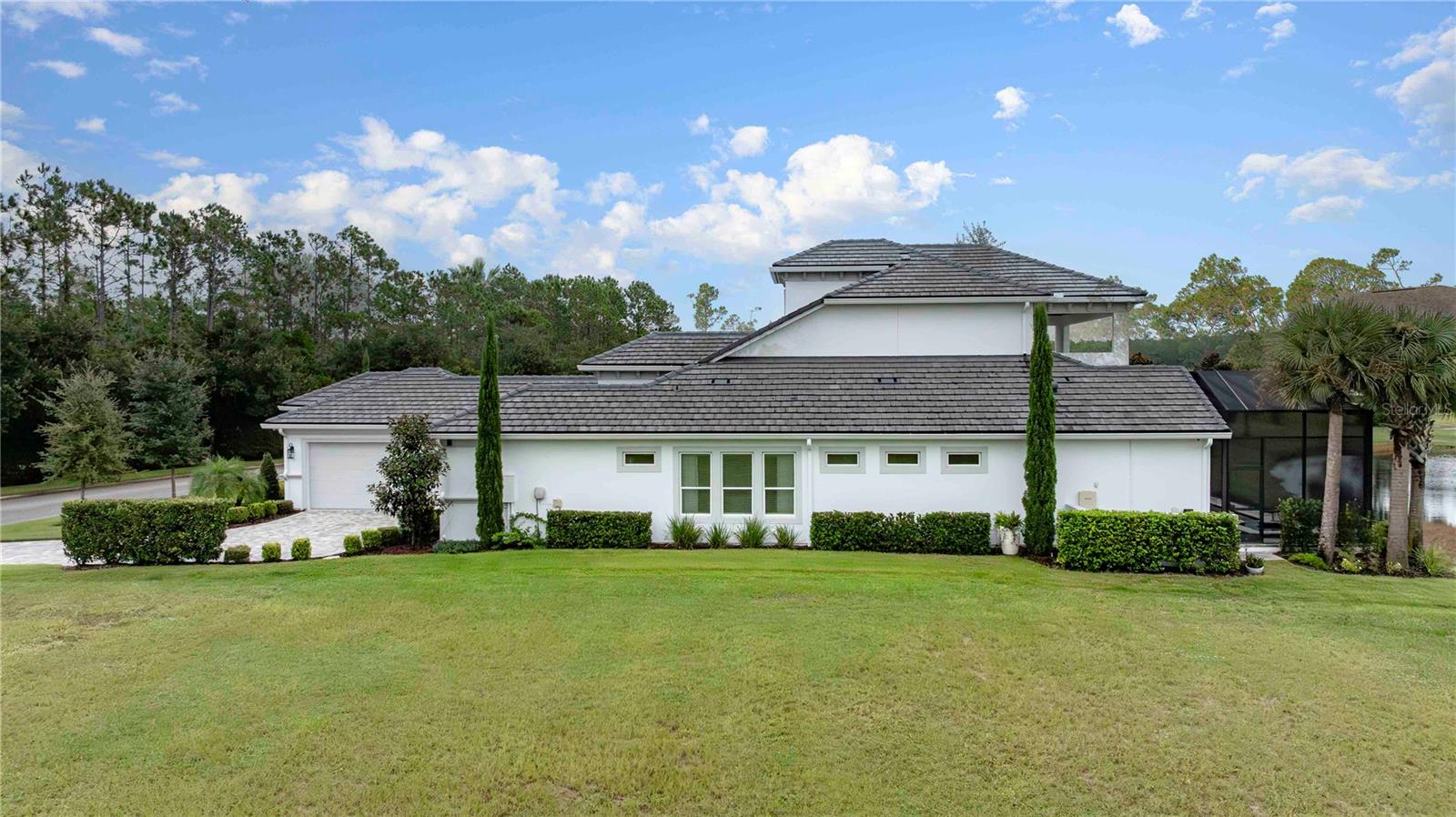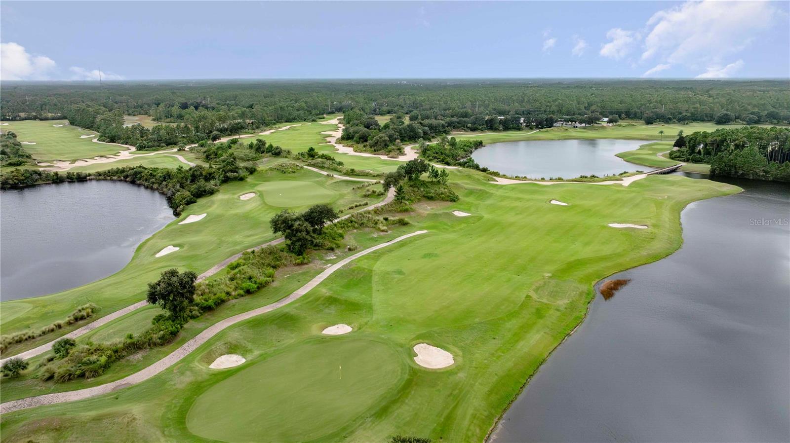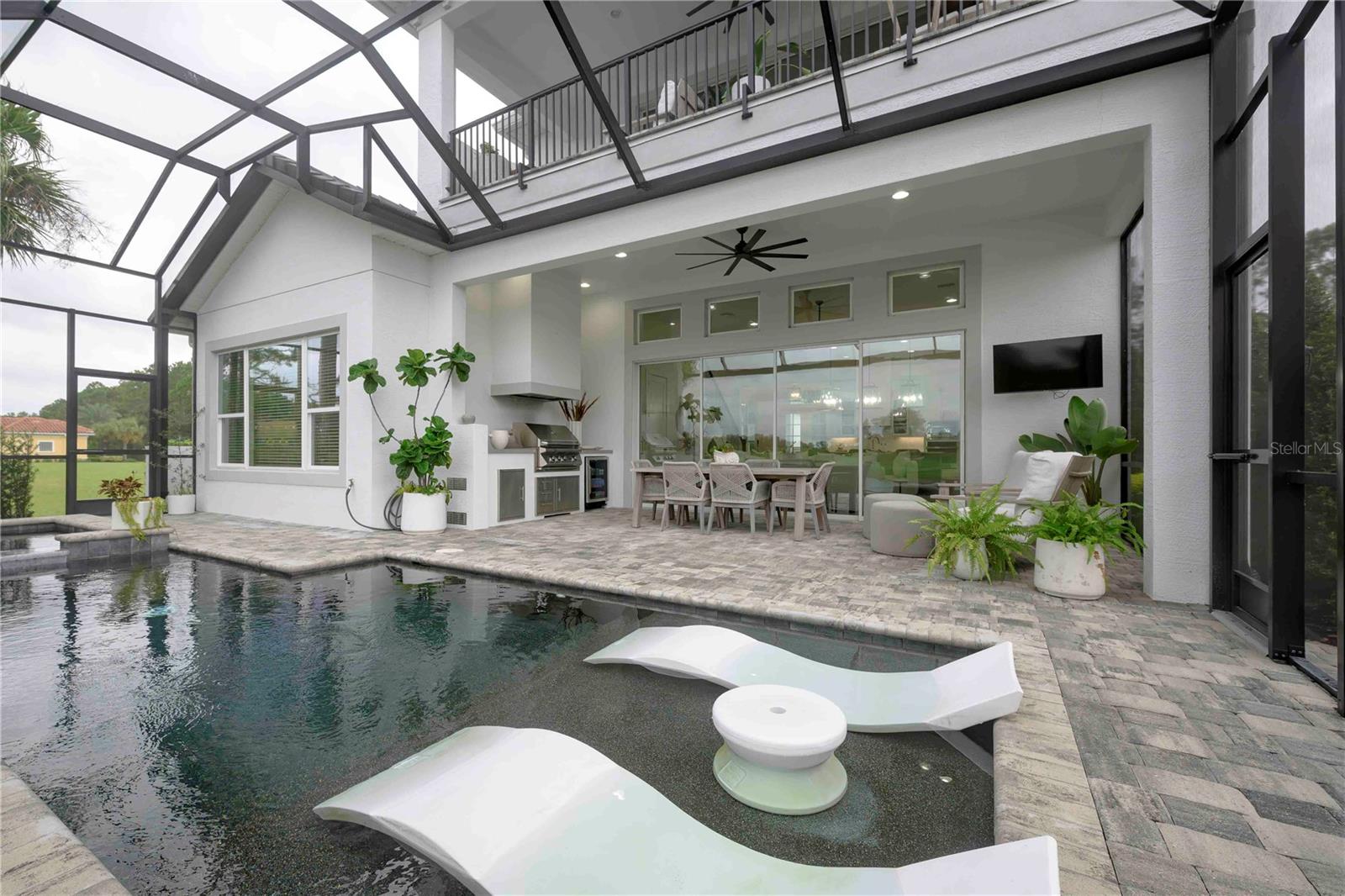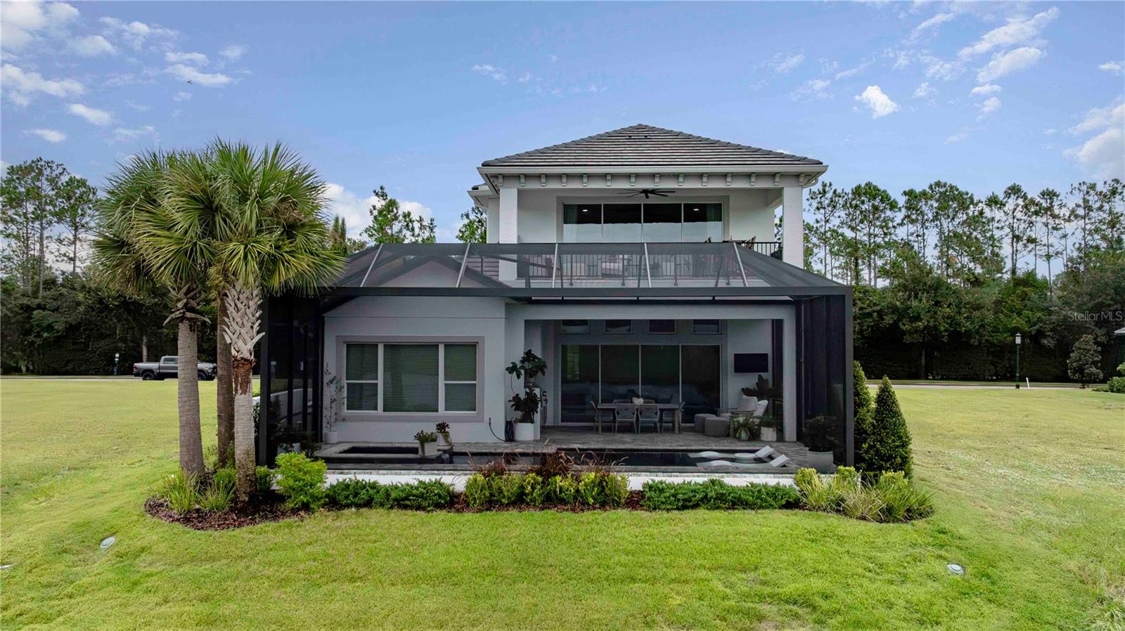 Welcome to 161 Aspen Way, an architectural masterpiece in the exclusive Conservatory at Hammock Beach. Crafted in 2022, this 3-bedroom, 3.5-bath residence spans nearly 3, 000 sq ft of refined living space, blending timeless design with modern sophistication. From the moment you step inside, soaring ceilings and expansive windows frame panoramic water and fairway vistas, setting the stage for a home that is as breathtaking as its surroundings. The gourmet chef’s kitchen, complete with custom cabinetry, premium appliances, and an expansive island, flows seamlessly into the great room and out to the private lanai. Here, a heated, lighted pool with spa and a fully equipped outdoor kitchen create an entertainer’s paradise. The primary suite is a private retreat, featuring a spa-quality bath and generous walk-in closets, while the secondary bedrooms, each with its own en suite or nearby bath offers guests uncompromising comfort and privacy. Upstairs, indulge in the unparalleled sitting area, showcasing custom built-ins with a wine cooler, beverage refrigerator, and bar sink. This south-facing haven delivers sweeping views of multiple golf holes, glowing sunsets, and even rocket launches from Cape Canaveral, a true one-of-a-kind spectacle. Every detail has been curated for ease and elegance: a spacious laundry room with washer/dryer, built-in dog wash, and ample storage; a full security system with exterior cameras; and professionally designed landscape lighting that enhances the property’s evening allure. The Conservatory is a private, guard-gated community centered around Tom Watson’s signature golf course and offering multiple membership options. Members enjoy exclusive access to Hammock Beach Club’s world-class amenities, including resort-style pools, a luxurious spa, state-of-the-art fitness, fine dining, and the pristine Atlantic shoreline just minutes away. 161 Aspen Way is not just a home, it’s a lifestyle, where sophistication meets resort-style coastal living at its absolute finest.