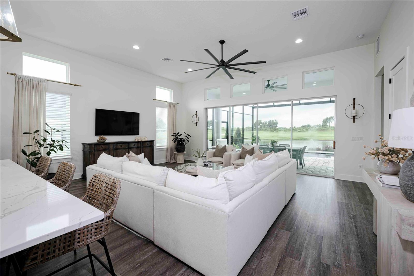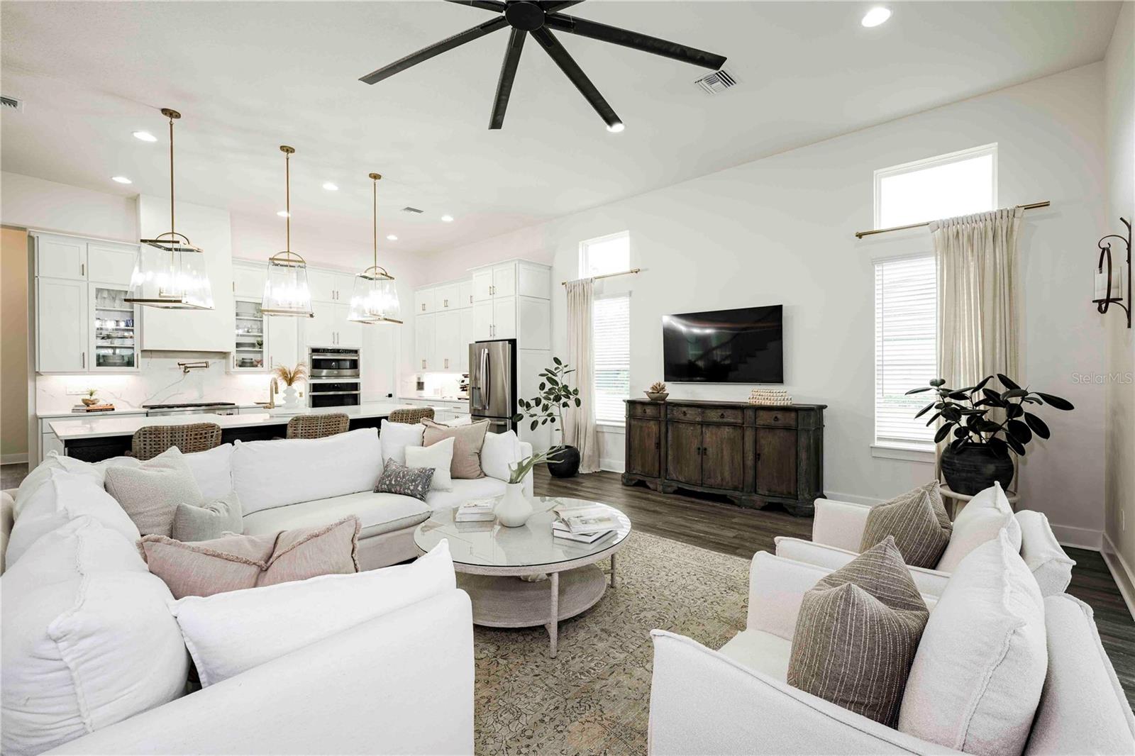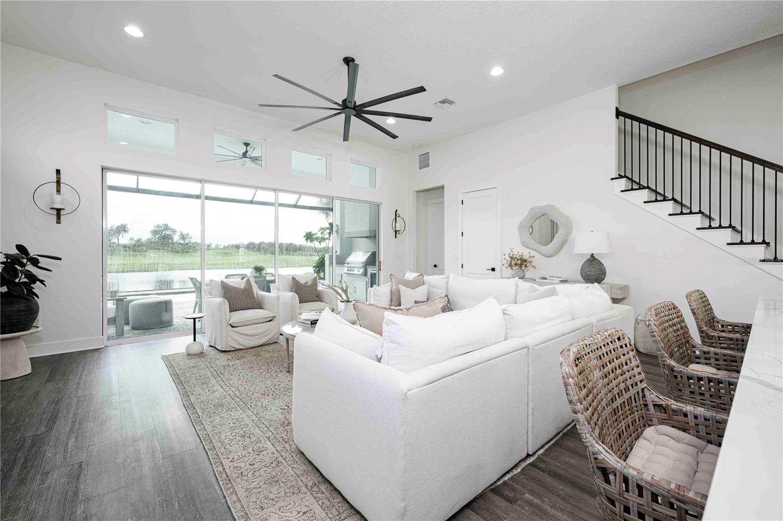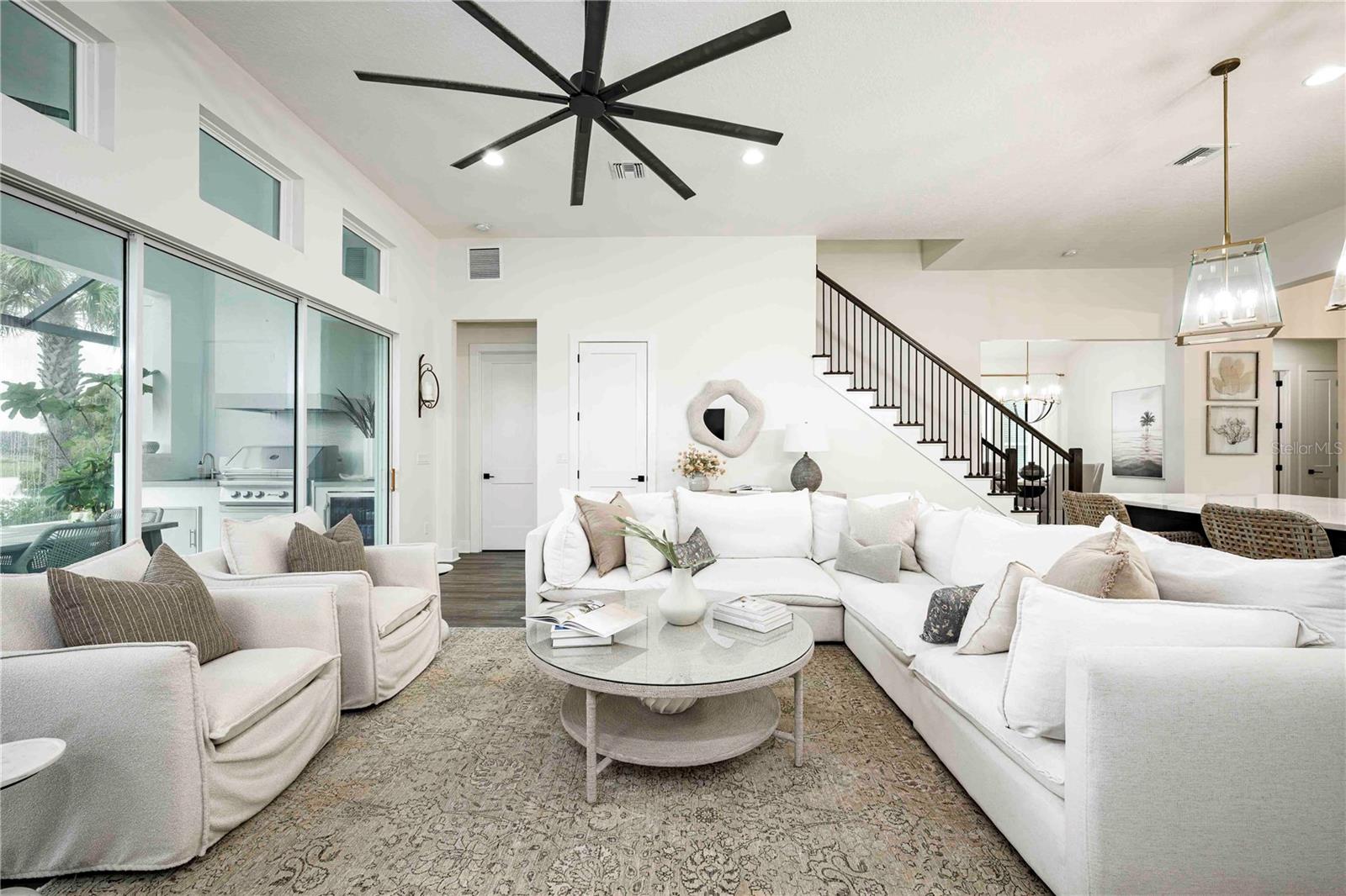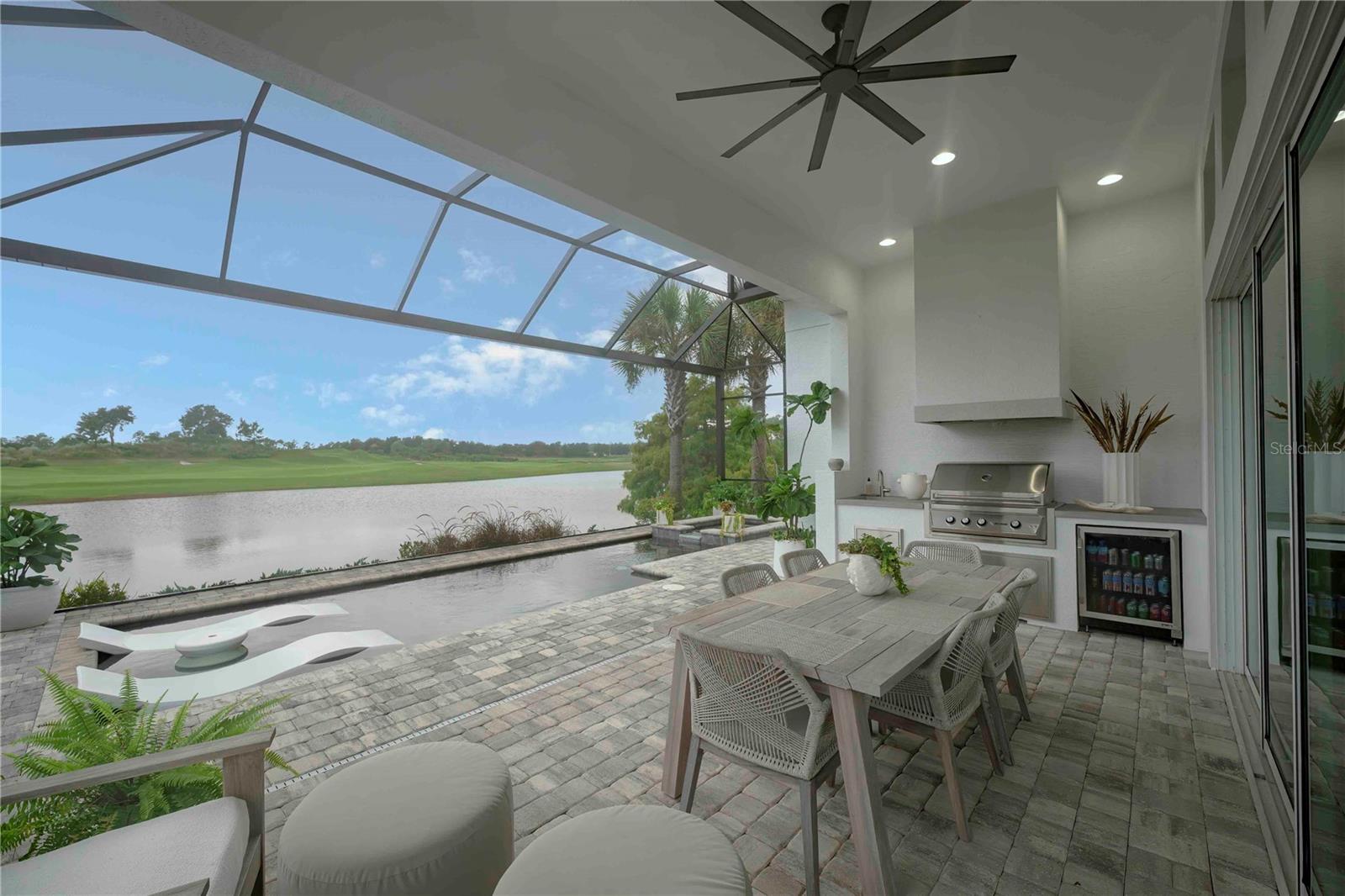 Welcome to 161 Aspen Way, an architectural masterpiece in the exclusive Conservatory at Hammock Beach. Crafted in 2022, this 3-bedroom, 3.5-bath residence spans nearly 3, 000 sq ft of refined living space, blending timeless design with modern sophistication. From the moment you step inside, soaring ceilings and expansive windows frame panoramic water and fairway vistas, setting the stage for a home that is as breathtaking as its surroundings. The gourmet chef’s kitchen, complete with custom cabinetry, premium appliances, and an expansive island, flows seamlessly into the great room and out to the private lanai. Here, a heated, lighted pool with spa and a fully equipped outdoor kitchen create an entertainer’s paradise. The primary suite is a private retreat, featuring a spa-quality bath and generous walk-in closets, while the secondary bedrooms, each with its own en suite or nearby bath offers guests uncompromising comfort and privacy. Upstairs, indulge in the unparalleled sitting area, showcasing custom built-ins with a wine cooler, beverage refrigerator, and bar sink. This south-facing haven delivers sweeping views of multiple golf holes, glowing sunsets, and even rocket launches from Cape Canaveral, a true one-of-a-kind spectacle. Every detail has been curated for ease and elegance: a spacious laundry room with washer/dryer, built-in dog wash, and ample storage; a full security system with exterior cameras; and professionally designed landscape lighting that enhances the property’s evening allure. The Conservatory is a private, guard-gated community centered around Tom Watson’s signature golf course and offering multiple membership options. Members enjoy exclusive access to Hammock Beach Club’s world-class amenities, including resort-style pools, a luxurious spa, state-of-the-art fitness, fine dining, and the pristine Atlantic shoreline just minutes away. 161 Aspen Way is not just a home, it’s a lifestyle, where sophistication meets resort-style coastal living at its absolute finest.