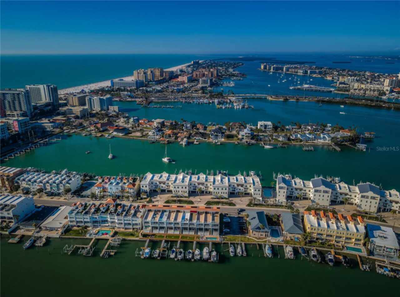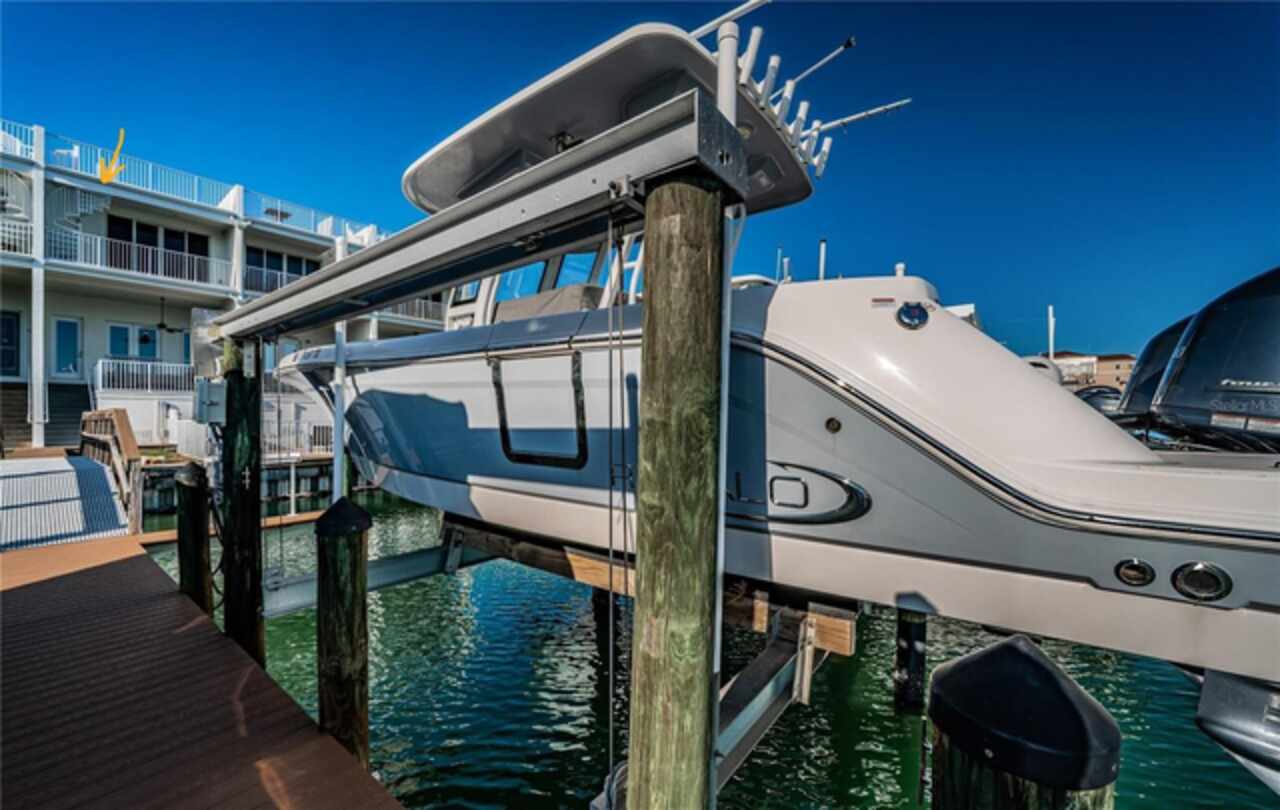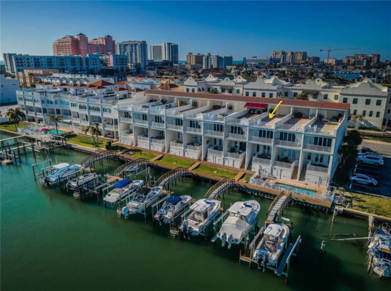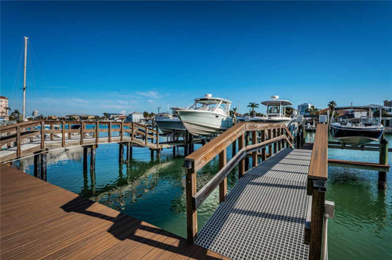 Exceptional New Pricing! Sellers are motivated and open to reasonable offers on this stunning waterfront townhome featuring a private dock and boat lift with direct Gulf access — an opportunity not to be missed. This completely remodeled elevated residence is move-in ready and offers the perfect blend of luxury and convenience. The gourmet kitchen features custom cabinetry, quartz countertops, and stainless-steel appliances, while the spacious master suite boasts a spa-like bathroom with dual vanities, a walk-in shower, and elegant designer finishes. Additional upgrades include new flooring throughout, updated lighting, stylishly renovated guest baths, a recently coated roof, and an upgraded A/C system. Enjoy the ease of a private elevator to all levels including the roof top patio, a rebuilt balcony ideal for entertaining, and your own private boat dock with a 10, 000 lb. boat lift and direct Gulf access. The home’s crown jewel is the private rooftop patio, perfect for relaxing or entertaining while taking in sweeping views. A tandem 3-car garage with separate storage access provides plenty of space for vehicles, water toys, and more. The pool is just steps away, and all of this is within a short walk to world-renowned Clearwater Beach, vibrant entertainment, shopping, and fine dining.