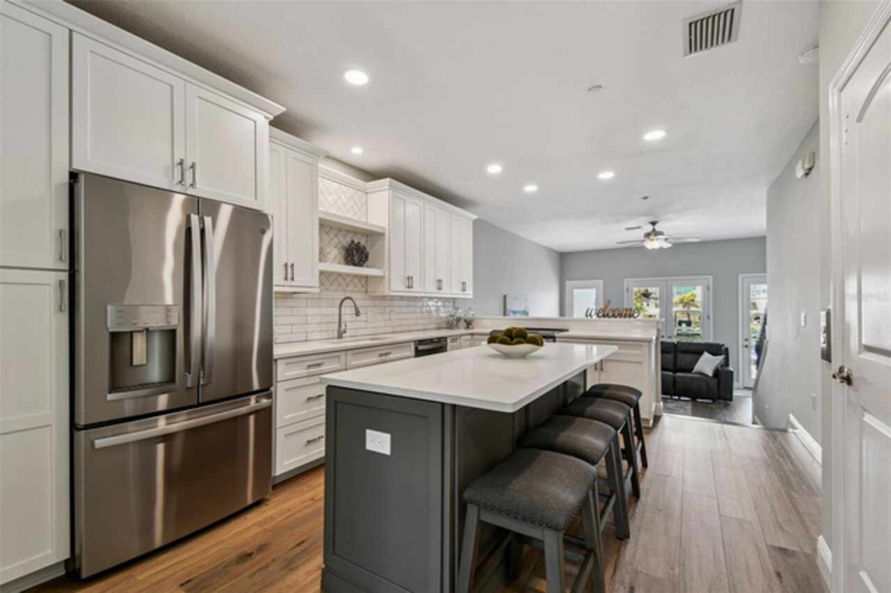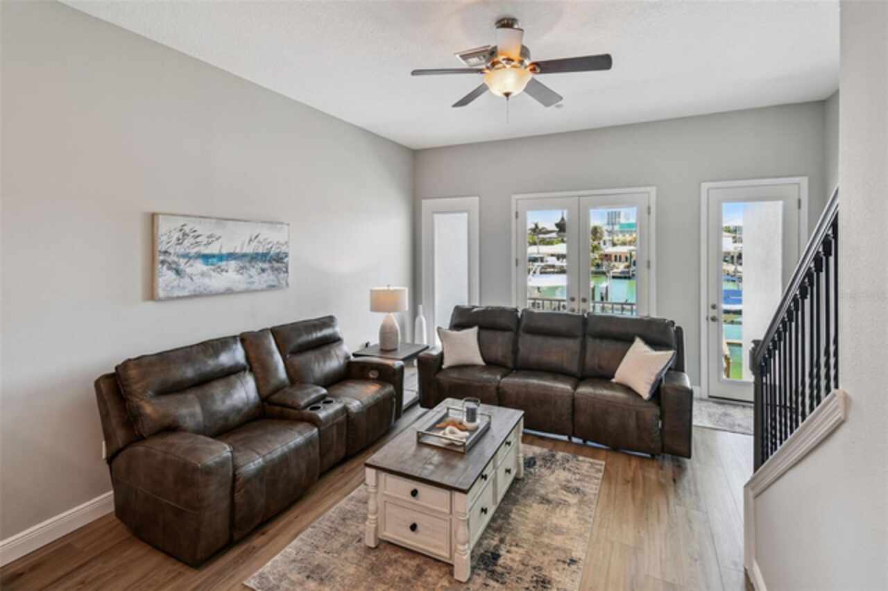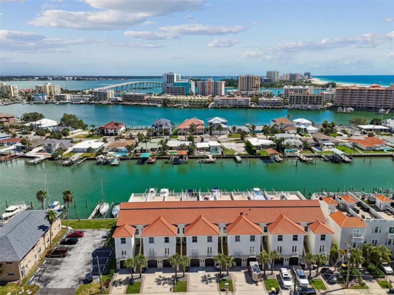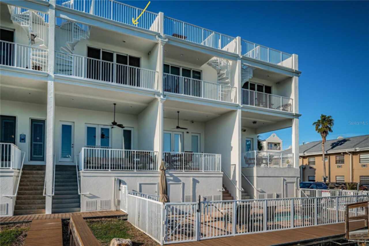 Exceptional New Pricing! Sellers are motivated and open to reasonable offers on this stunning waterfront townhome featuring a private dock and boat lift with direct Gulf access — an opportunity not to be missed. This completely remodeled elevated residence is move-in ready and offers the perfect blend of luxury and convenience. The gourmet kitchen features custom cabinetry, quartz countertops, and stainless-steel appliances, while the spacious master suite boasts a spa-like bathroom with dual vanities, a walk-in shower, and elegant designer finishes. Additional upgrades include new flooring throughout, updated lighting, stylishly renovated guest baths, a recently coated roof, and an upgraded A/C system. Enjoy the ease of a private elevator to all levels including the roof top patio, a rebuilt balcony ideal for entertaining, and your own private boat dock with a 10, 000 lb. boat lift and direct Gulf access. The home’s crown jewel is the private rooftop patio, perfect for relaxing or entertaining while taking in sweeping views. A tandem 3-car garage with separate storage access provides plenty of space for vehicles, water toys, and more. The pool is just steps away, and all of this is within a short walk to world-renowned Clearwater Beach, vibrant entertainment, shopping, and fine dining.