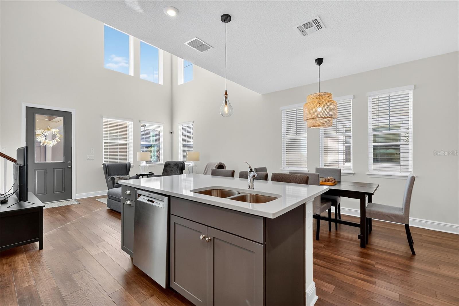 Step inside this Winter Garden stunner and feel your shoulders drop. Everything about this upgraded and move in ready, 3 bedroom, 2.5-bath Hawksmoor townhome whispers comfort, style, and ease. Just bring your clothes. The furnishings are included! The moment you enter, sunlight pours across the upgraded luxury vinyl plank floors, and the entire main living space feels warm and inviting. The kitchen is the kind of space that makes guests say things like “How do you ever leave this house?” Quartz counters, upgraded cabinetry with under cabinet lighting, a tiled backsplash, and sleek stainless appliances all come together in a way that feels both modern and timeless. The WiFi connected refrigerator with a built in Keurig and the new Bosch dishwasher creates the beautiful blend of style and high-end convenience. The primary suite sits privately on the first floor, which means quiet mornings, and peaceful evenings become part of your everyday rhythm. Upstairs offers two spacious bedrooms with walk-in closets, a versatile loft that can become a play area, workout room, media space, or office, and a full laundry room that keeps everyday living effortless. This home is filled with thoughtful upgrades that enhance comfort and peace of mind. A whole house surge protector, UV protective film on the family room windows, a WiFi enabled garage door opener with camera, and three exterior security cameras are already in place. Washer and dryer are included, and all furnishings are included for buyers who want a seamless move in. Step outside to your private courtyard and enjoy a quiet spot for morning coffee or evening unwinding. Exterior maintenance and landscaping are handled for you which means more living and far less doing. The HOA covers lawn care, exterior cleaning, paver upkeep, and reserves for future roof and exterior painting. Residents enjoy resort level amenities including a zero-entry pool, splash pad, fitness center, clubhouse, parks, playgrounds, and beautifully maintained sidewalks throughout the community. Hawksmoor is known for its charm, walkability, and strong sense of community. Nearby schools include Atwater Bay Elementary, Water Spring Middle, and Horizon High. Short term rentals are not allowed in this neighborhood preserving a connected residential atmosphere that many buyers value. This home is both easy on the eyes and easy to live in. For someone searching for style, simplicity, and a location that keeps them close to everything while still feeling wonderfully tucked away, 16154 Treadwell Street delivers it all.