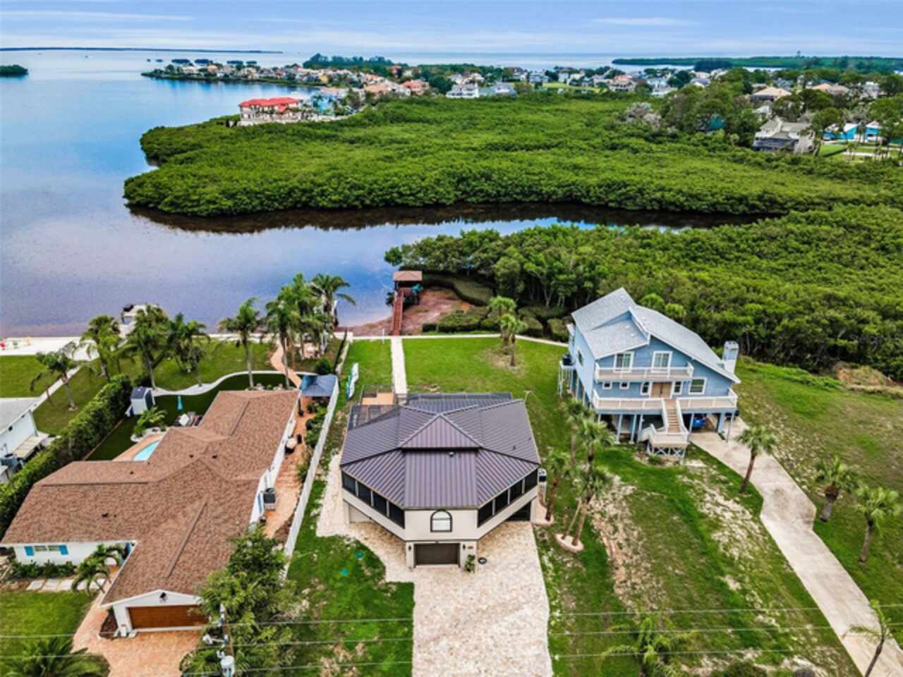 All Bells & whistle's here!! Low Flood insurance and transferable. No HOA! New Exterior Paint & Pavers, Curbing and River rock Just Added to This Amazing Home!! Discover resort-style living in this stunning 3-bedroom, 2-bathroom split-floor plan home with a separate in-law studio, offering breathtaking sunsets over Anclote Island Lighthouse and the surrounding barrier islands. Nestled in a quiet cove of lush mangroves, this aerodynamically built home provides the perfect blend of privacy, beauty, and convenience with low flood insurance and no HOA restrictions. While not on a canal, the property offers open water access to the Gulf of Mexico, making it a boater’s paradise with a newly rewired dock, electric davits, and a well-equipped water hose and outlets. The oversized lot features a spacious 4+ car garage, ideal for storage and hobbies. Outdoor living is truly elevated with a fiberglass saltwater pool, complete with a brand-new pump and system, surrounded by screened-in porches that keep no-see-ums at bay. Enjoy stunning views from the outdoor tanning balcony or relax on the front porch with partial sights of Fred Howard Beach. Inside, the home boasts brand-new bay windows in the living area and primary bedroom, a new roof, an electric hot water heater, and a recently built seawall. Located near the heart of Tarpon Springs, this home is surrounded by rich Greek culture, from the historic sponge docks to the charming downtown filled with unique shops, art, and culinary delights. With frequent community events, including a few monthly festivals, top-rated schools, and access to beautiful beaches like Fred Howard Park and Sunset Beach—complete with free water vehicle ramps—this home offers an unmatched coastal lifestyle. Don’t miss your chance to own this waterfront retreat—schedule your private showing today! Come live the Salt Life!