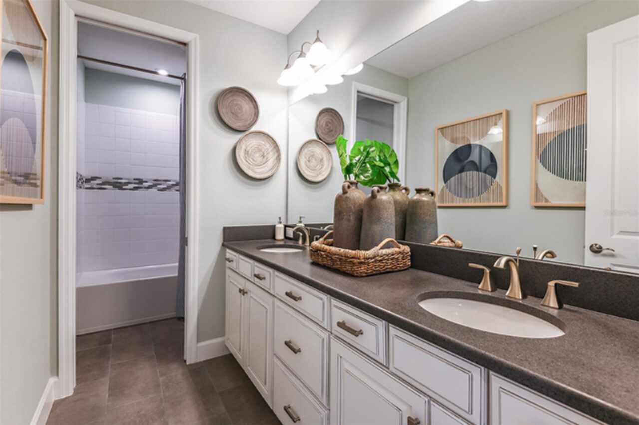 Under Construction. MLS#TB8312100 REPRESENTATIVE PHOTOS ADDED. Introducing the Tortola, a beautifully designed 5-bedroom home in Victoria Lakes. Enter through double doors into a welcoming foyer with a striking 2-story ceiling, leading to a half bathroom, laundry room, and a guest bedroom with a private bath. The spacious gathering room features oversized sliding doors that open to a sunny lanai, while the kitchen boasts a large island, walk-in pantry, and ample counter space, complemented by a dining area. The main floor's primary suite serves as a serene retreat, and upstairs, additional bedrooms are connected by a versatile game room—perfect for movie nights or studying. This home seamlessly blends style and functionality! Structural options include: outdoor rough in, extended lanai, courtyard garage, gourmet kitchen, and 8ft doors.