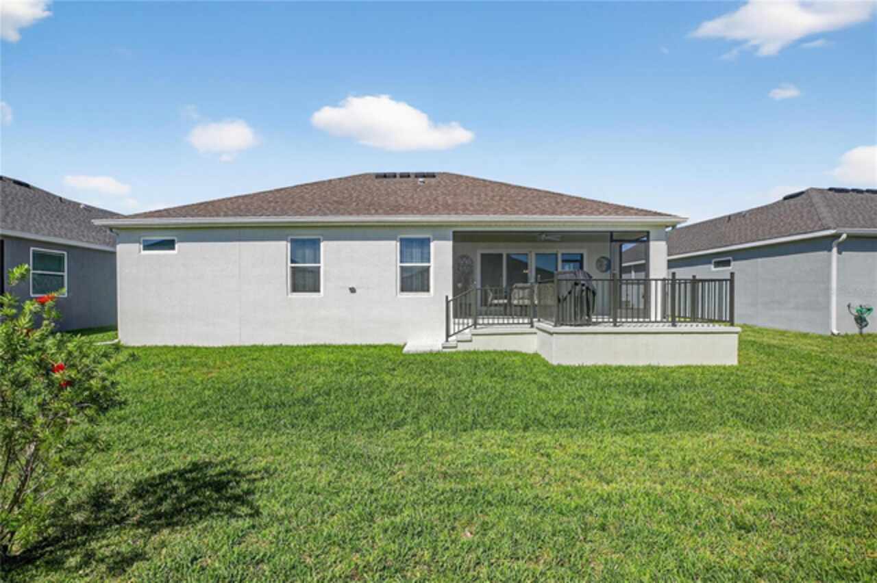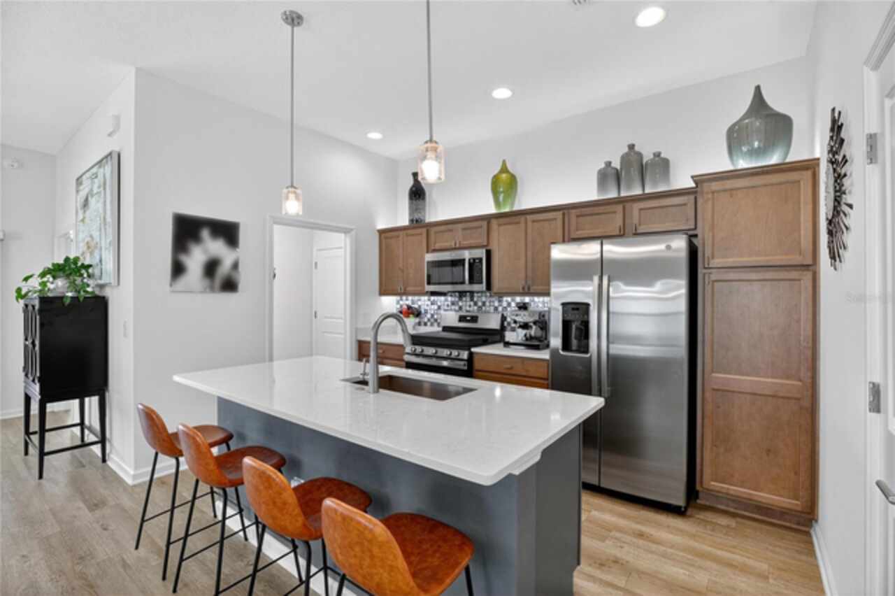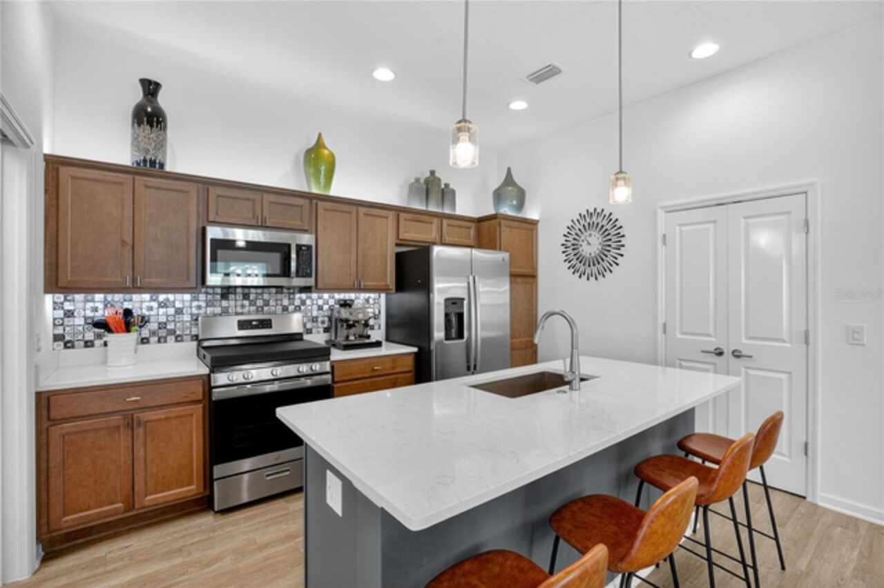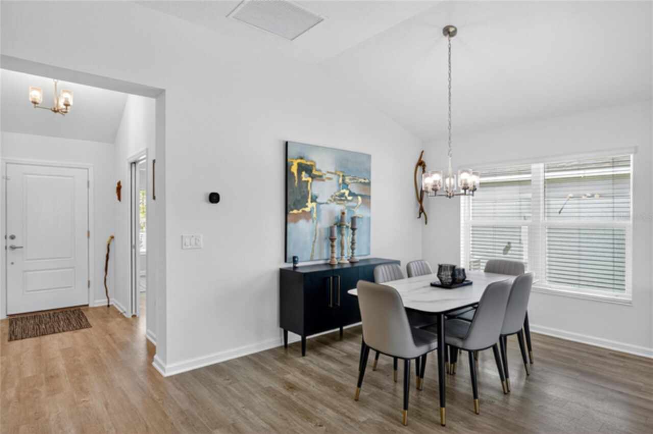 Welcome to 1627 McLucas Ln—a beautifully upgraded 3/2 (1, 512 sf) in The Villages – Lake Denham, minutes from the new Eastport dining & entertainment district. Inside, you’ll love the all-LVP flooring (no carpet), bright open plan, and a chef’s kitchen with quartz counters, tile backsplash, stainless appliances, and a custom wood pantry. The vaulted great room flows to an elevated, screened lanai with epoxy floor. The spacious primary suite offers two walk-in closets with custom wood shelving and a quartz double-vanity bath. A true utility wing features a cabineted laundry (W/D stay) and direct access to the painted, epoxy-finished 2-car garage with pull-down attic stairs. Thoughtful extras include a 40-ft stamped-concrete driveway, full gutter system, smart thermostat, and a whole-home water filtration/tankless gas water heater. What’s nearby: pickleball, pools & recreation centers, executive golf, plus Eastport’s new lineup of shops and restaurants. Amenity fee approx. $199/mo; ask for the bond/CDD balance and 2024 tax bill for full monthly picture.