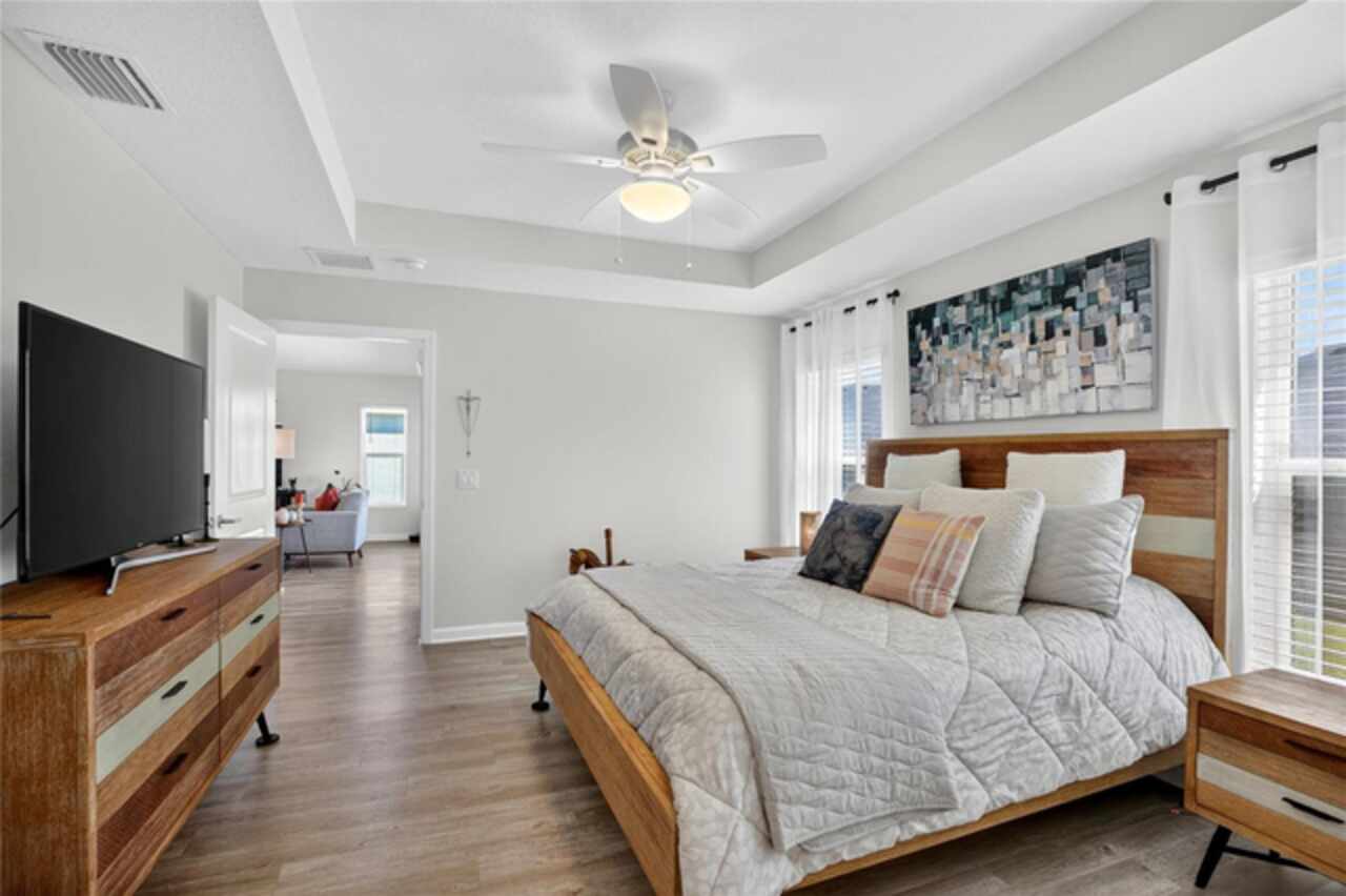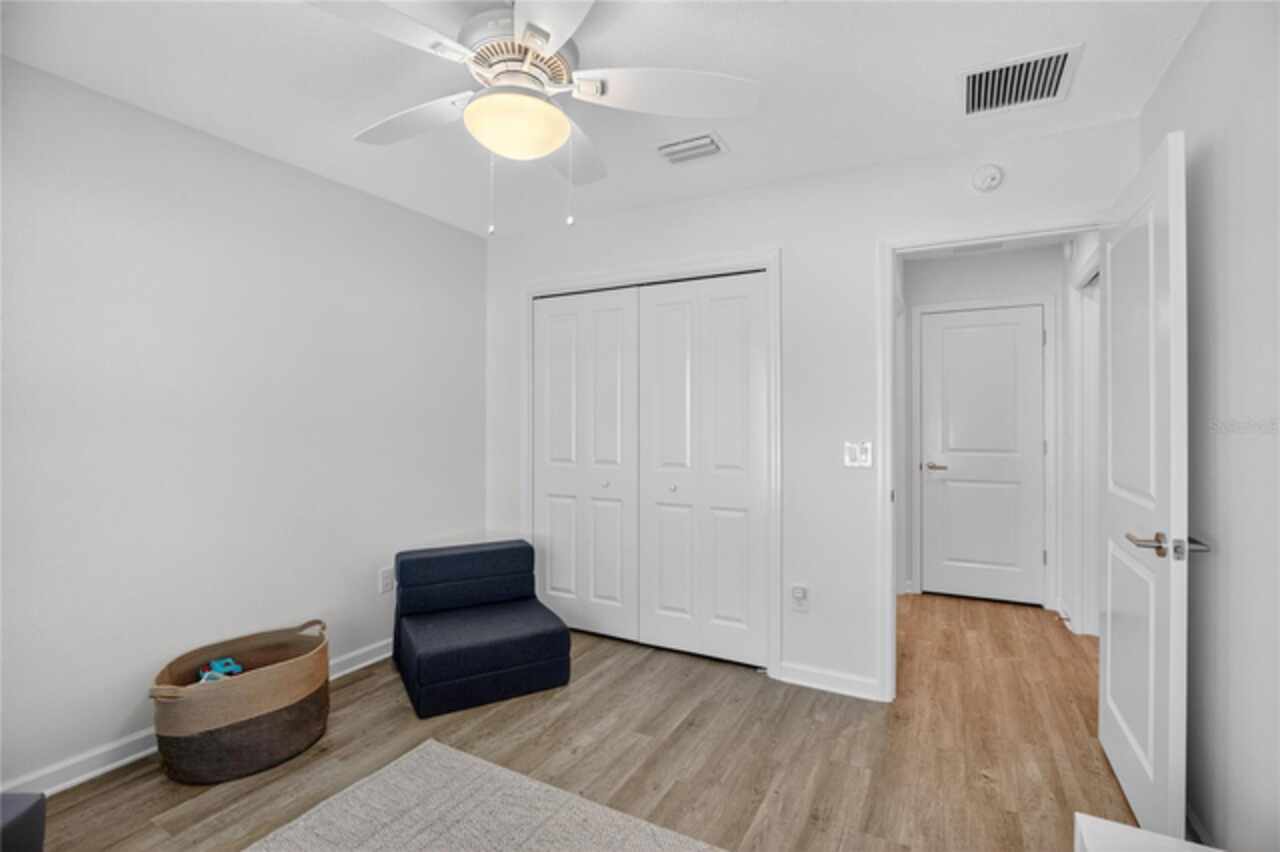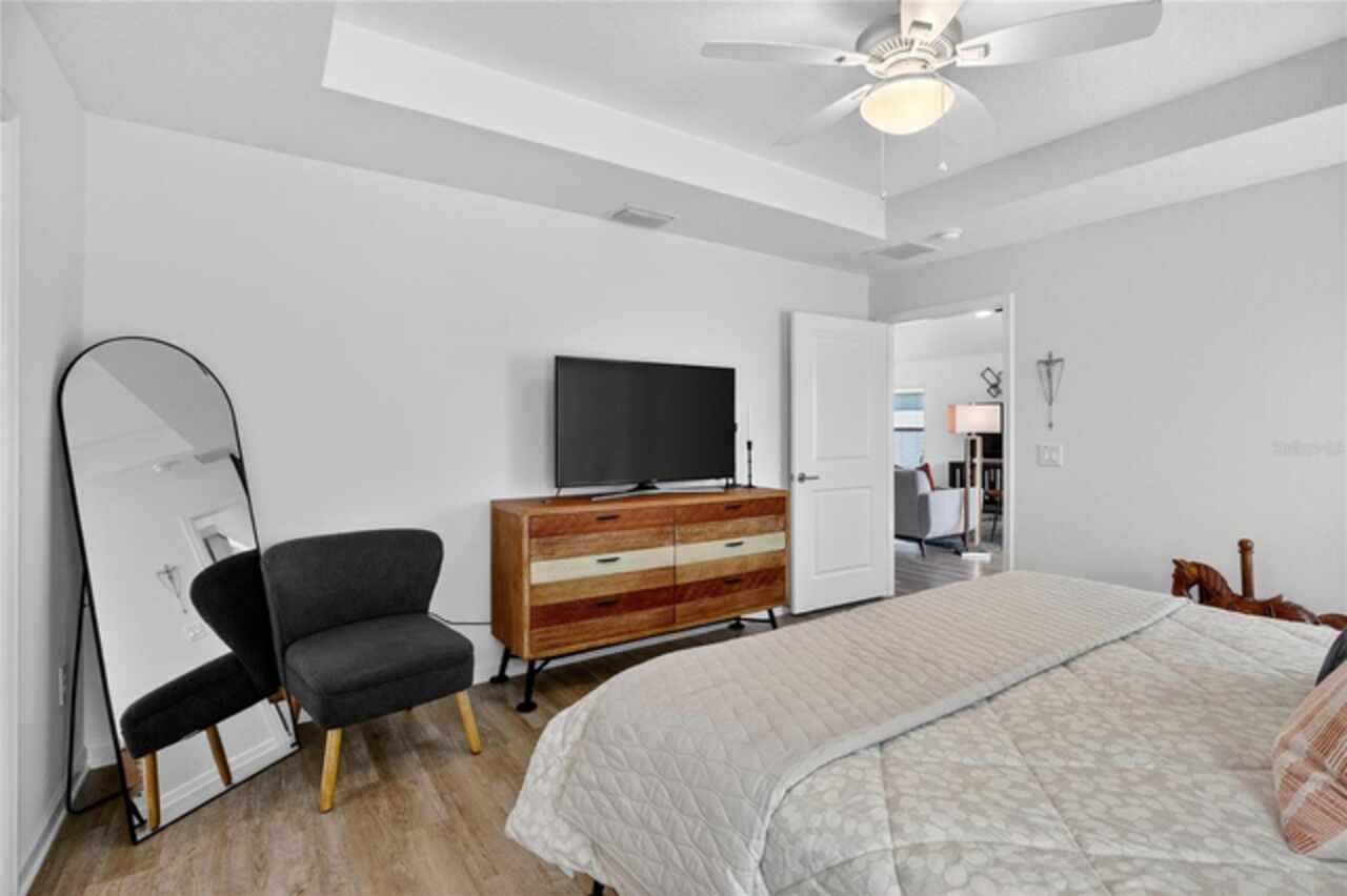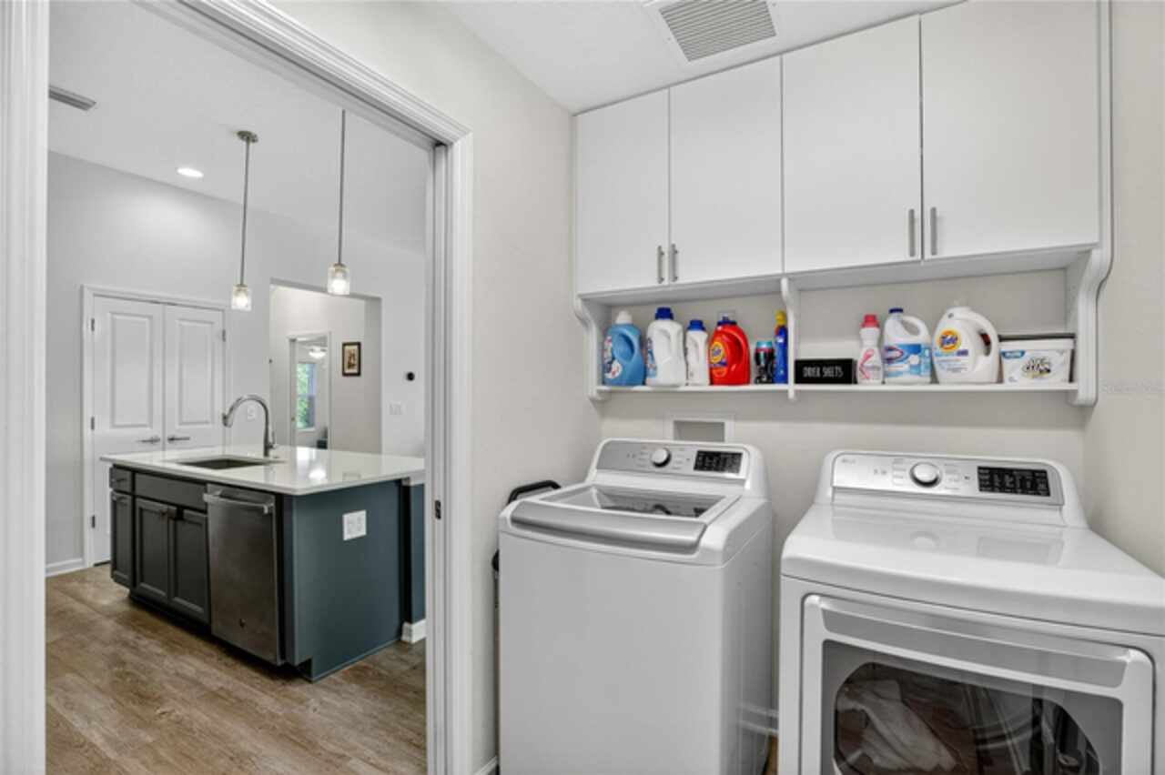 Welcome to 1627 McLucas Ln—a beautifully upgraded 3/2 (1, 512 sf) in The Villages – Lake Denham, minutes from the new Eastport dining & entertainment district. Inside, you’ll love the all-LVP flooring (no carpet), bright open plan, and a chef’s kitchen with quartz counters, tile backsplash, stainless appliances, and a custom wood pantry. The vaulted great room flows to an elevated, screened lanai with epoxy floor. The spacious primary suite offers two walk-in closets with custom wood shelving and a quartz double-vanity bath. A true utility wing features a cabineted laundry (W/D stay) and direct access to the painted, epoxy-finished 2-car garage with pull-down attic stairs. Thoughtful extras include a 40-ft stamped-concrete driveway, full gutter system, smart thermostat, and a whole-home water filtration/tankless gas water heater. What’s nearby: pickleball, pools & recreation centers, executive golf, plus Eastport’s new lineup of shops and restaurants. Amenity fee approx. $199/mo; ask for the bond/CDD balance and 2024 tax bill for full monthly picture.