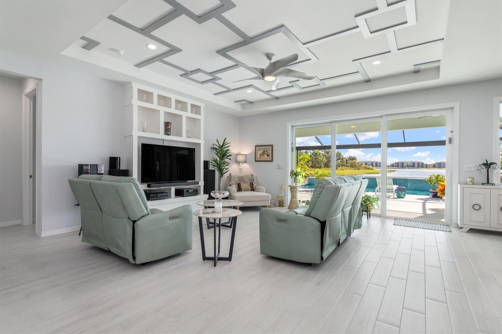 Welcome to lakefront living at its finest on the 300 acre recreational Lake Babcock in Babcock Ranch, Florida. The home site allows for the construction of a private dock on the lake, perfect for boating, paddle boarding, and fishing enthusiasts. More than a just a home; it’s a thoughtfully curated retreat where every upgrade has been chosen with comfort, style, and functionality in mind including Quartz Countertops, JennAir Appliances, and ventilated wood shelving. From the moment you arrive, you’ll sense the care and investment that went into creating a one-of-a-kind property that stands apart in this community. Inside, various structural and design selections from the builder set the stage for a modern and luxurious lifestyle. Featuring over $200, 000 in additional upgrades after closing such as: Custom woodwork accents the ceilings, walls, windows, and shelving, while a built-in feature wall was designed to hold a large screen tv, making the living space both functional and striking. Laundry cabinets, upper garage storage, and a whole-house water filtration system with UV bring convenience and peace of mind, while thoughtful touches like screened front entry, garden beds, window treatments, Kohler bath accessories, and designer backsplashes elevate the details that make daily life easier and more beautiful. A 400-amp electric service ensures that this home is future-ready, with more than enough power for electric vehicles and even dual 80-amp Level 2 chargers. Premium finishes flow throughout, creating a seamless balance of elegance and everyday livability. Many enhancements transform this house into something extraordinary. The outdoor spaces are a dream for those who love to entertain or simply unwind. A custom 32-by-12 pool sparkles with a PebbleTec finish and shimmering blue glass beads, framed by Carrera marble decking and a forty-foot picture window that opens up sweeping lake views. This heated saltwater pool is fully automated and powered by Hayward equipment, making it as easy to enjoy as it is beautiful. Just steps away, a twelve-by-forty paver patio stretches behind the pool cage, perfect for gatherings or quiet evenings under the stars by the lakefront. You even have the ability to add a dock. Relaxation continues with a 2024 HotSpring Envoy hot tub, one of the finest on the market, offering a spa experience right at home. An outdoor kitchen, ceiling fans, and lush additional landscaping complete the resort-like atmosphere. For peace of mind, a complete CCTV system with PTZ cameras on all four corners, as well as impact doors and windows, provides unmatched security. Every inch of this property has been carefully considered, even the over-sized garage features insulated doors and professional grade epoxy flooring, blending high-end upgrades with the kind of comforts that make a house feel like home. This is not simply a home on Lake Babcock, —it is a complete lifestyle. From the expansive water views to the private resort-like amenities, it offers the rare chance to move into a property where every upgrade has already been done for you. Don't miss another sunrise by the pool. Schedule your showing today!