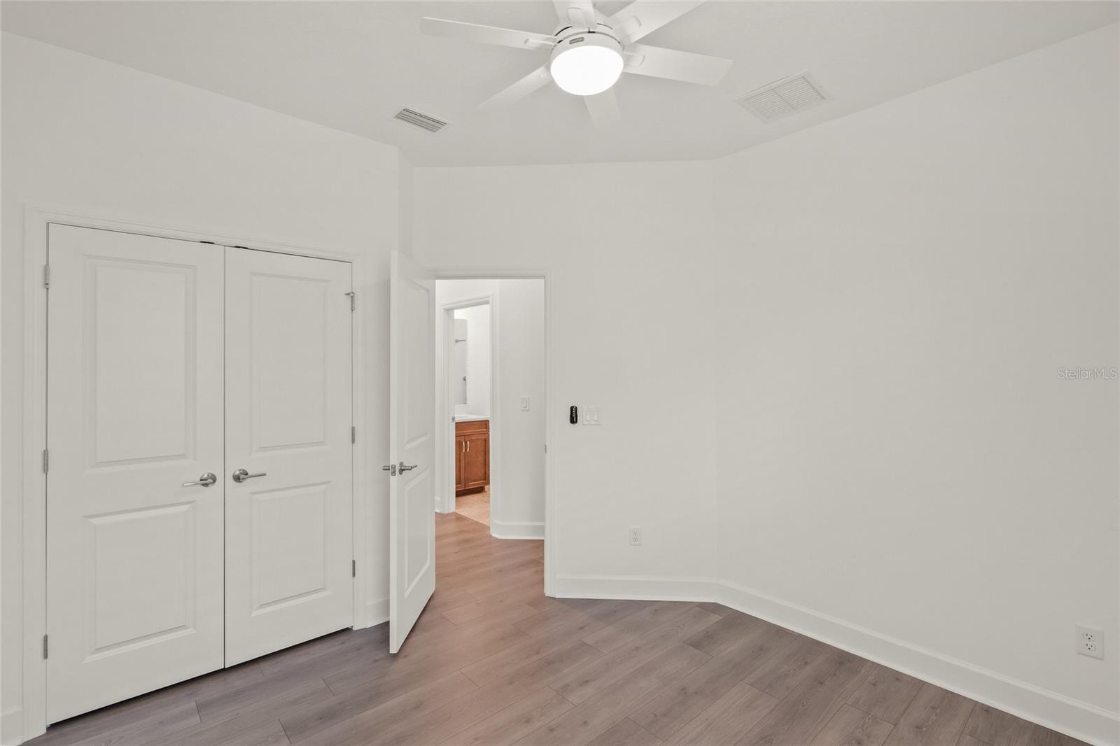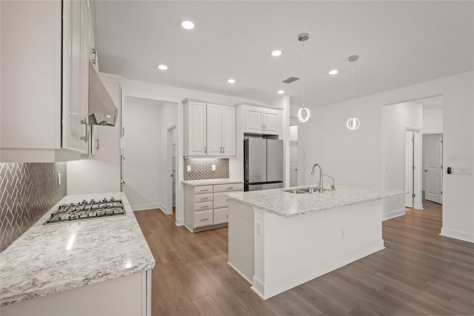 Built in 2023 by Taylor Morrison, this thoughtfully designed 4-bedroom + office, 3-bathroom home is filled with high-end features and modern finishes. The front guest bedroom offers ample space and privacy, complete with its own bathroom featuring a tub/shower, oversized tile to the ceiling, Quartz countertops, and a dedicated linen closet. The private office is ideally positioned just off the main living area, making it a perfect space for a home office, studio, or quiet den. Two additional guest bedrooms share a well-appointed bathroom, also finished with a tub/shower and oversized tile to the ceiling, Quartz countertops, and a separate linen closet. Adjacent to this space is the laundry room, thoughtfully equipped with a washer, dryer, and built-in cabinetry for added convenience and storage. The upgraded gourmet kitchen is a true highlight, boasting beautiful Quartz counters, an abundance of cabinetry and drawers, GE appliances, a sleek Samsung refrigerator, and additional prep and storage space provided by a butler’s pantry and a large walk-in pantry. The expansive great room and dining area accommodate a variety of furniture configurations, while 11-foot sliding glass doors provide abundant natural light and open fully to create seamless indoor-outdoor living. The spacious Owner's Suite is a private retreat featuring a luxurious en-suite bath with a garden tub, upgraded shower, dual Quartz vanities, and an oversized double-decker closet featuring metal hanging rods and integrated shelving. Additional home features include luxury vinyl plank flooring throughout, plantation shutters, gutters, a triple-filter water system, and a powerful 22kW whole-house Generac generator for peace of mind. The expansive 22-foot lanai offers a perfect space to enjoy the pleasant weather, featuring panoramic screening that provides uninterrupted views of the lush, green backyard. Just a short distance away, the community amenities include a tot lot, basketball and volleyball courts, a soccer field, dog park, and a sparkling pool/spa area with a grill—offering something for everyone to enjoy! Located in southeast Manatee County, Park East at Azario has convenient access to shopping, restaurants, schools, and lots of entertainment and recreational choices. Call now to schedule your private showing.