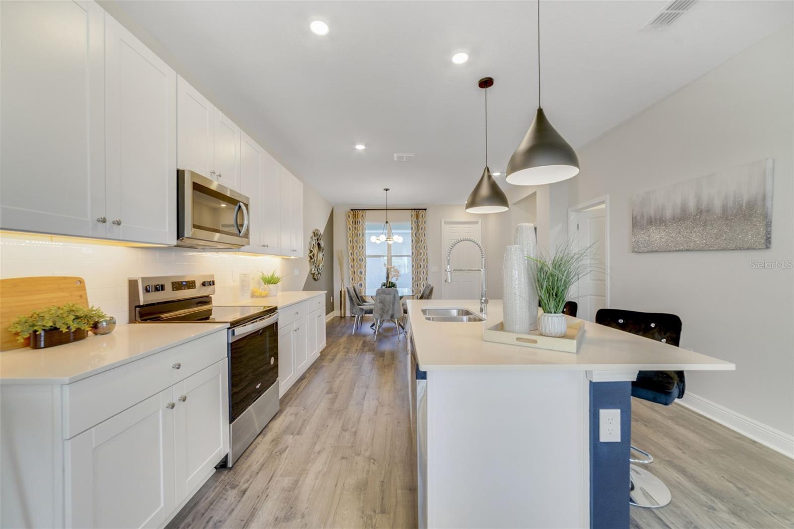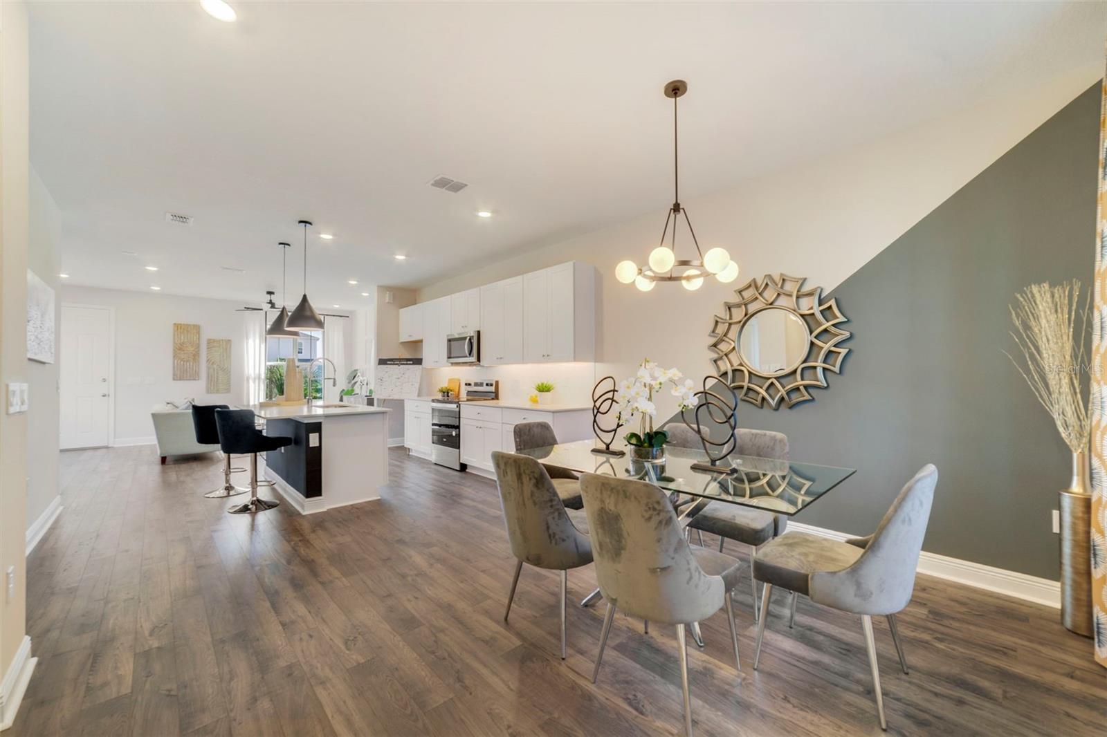 SELLER IS MOTIVATED! This former model, 2024 corner townhome, offers 3 bedrooms, 2.5 bathrooms, and HAS NEVER BEEN LIVED IN. Steps from Hamlin Elementary and Middle School, with easy access to Horizon West Hospital, OCOM, shopping, dining, and the 429, this 2024 Dream Finders home (2025 National Builder of the Year) INCLUDES A 1-year builder WARRANTY. Upgrades feature quartz countertops, matte-finish cabinets with under-cabinet lighting, pendant lights, custom window treatments, modern fixtures, ceiling fans, and a slat-wood accent wall. The primary suite features a large tiled shower, a double vanity, and a spacious walk-in closet. Enjoy outdoor living on the covered front porch, private patio, or unique paver walkway to the nearby playground and picnic area. HOA ($225/mo) covers exterior paint, lawn maintenance, roof replacement, and high-speed internet. **$1, 500 Buyer credit for appliances included with acceptable offer!** Schedule your private showing today!