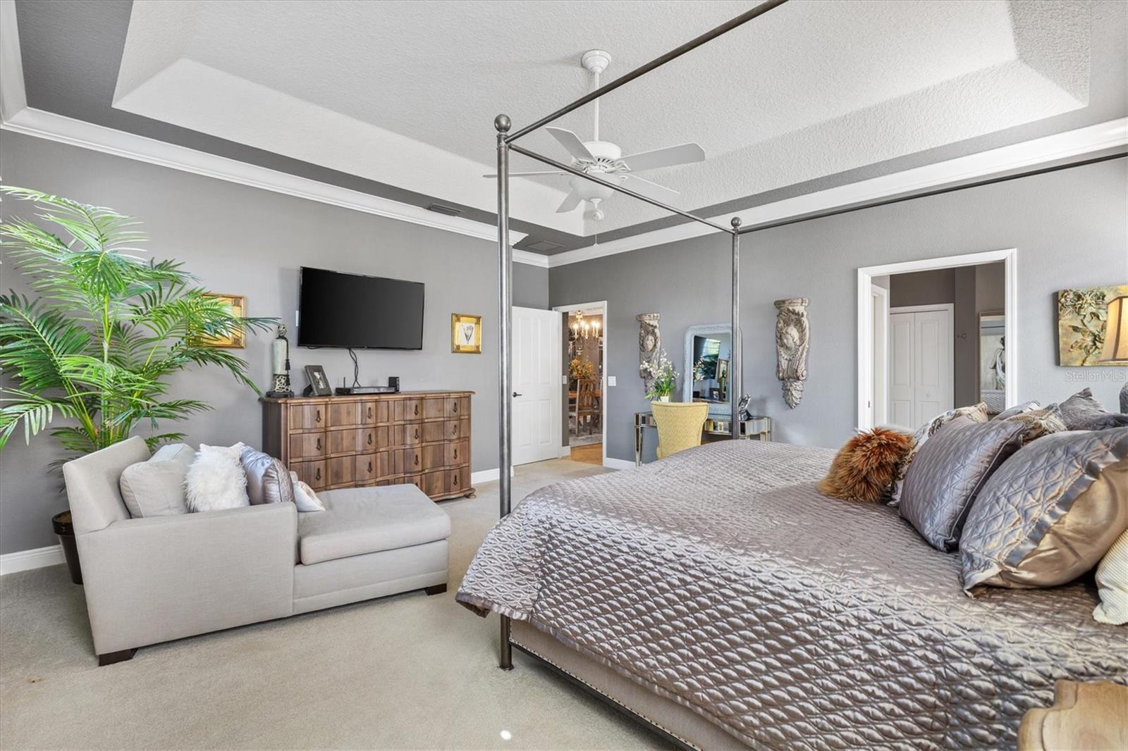 Ceiling Fans(s), Crown Molding, High Ceilings, Living Room/Dining Room Combo, Open Floorplan, Solid Wood Cabinets, Split Bedroom, Tray Ceiling(s), Walk-In Closet(s), Window Treatments