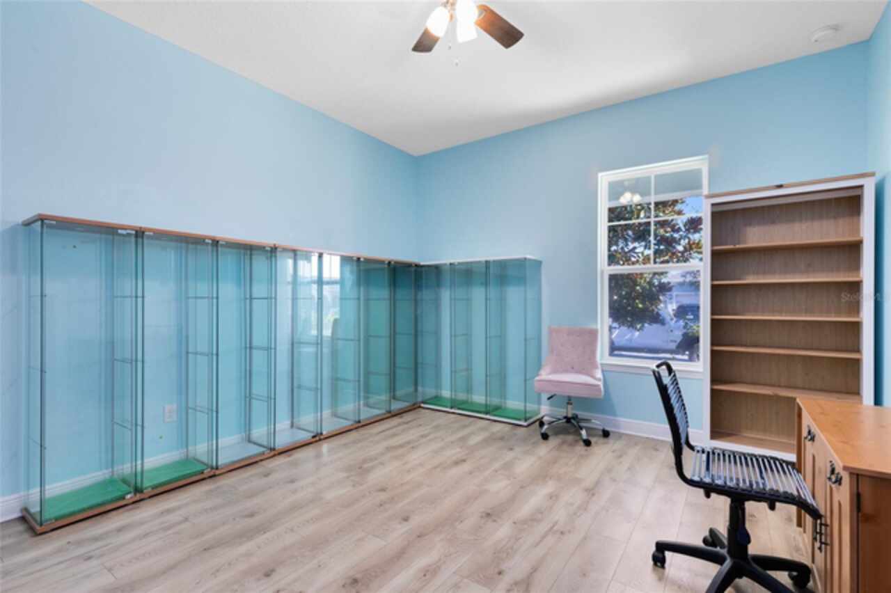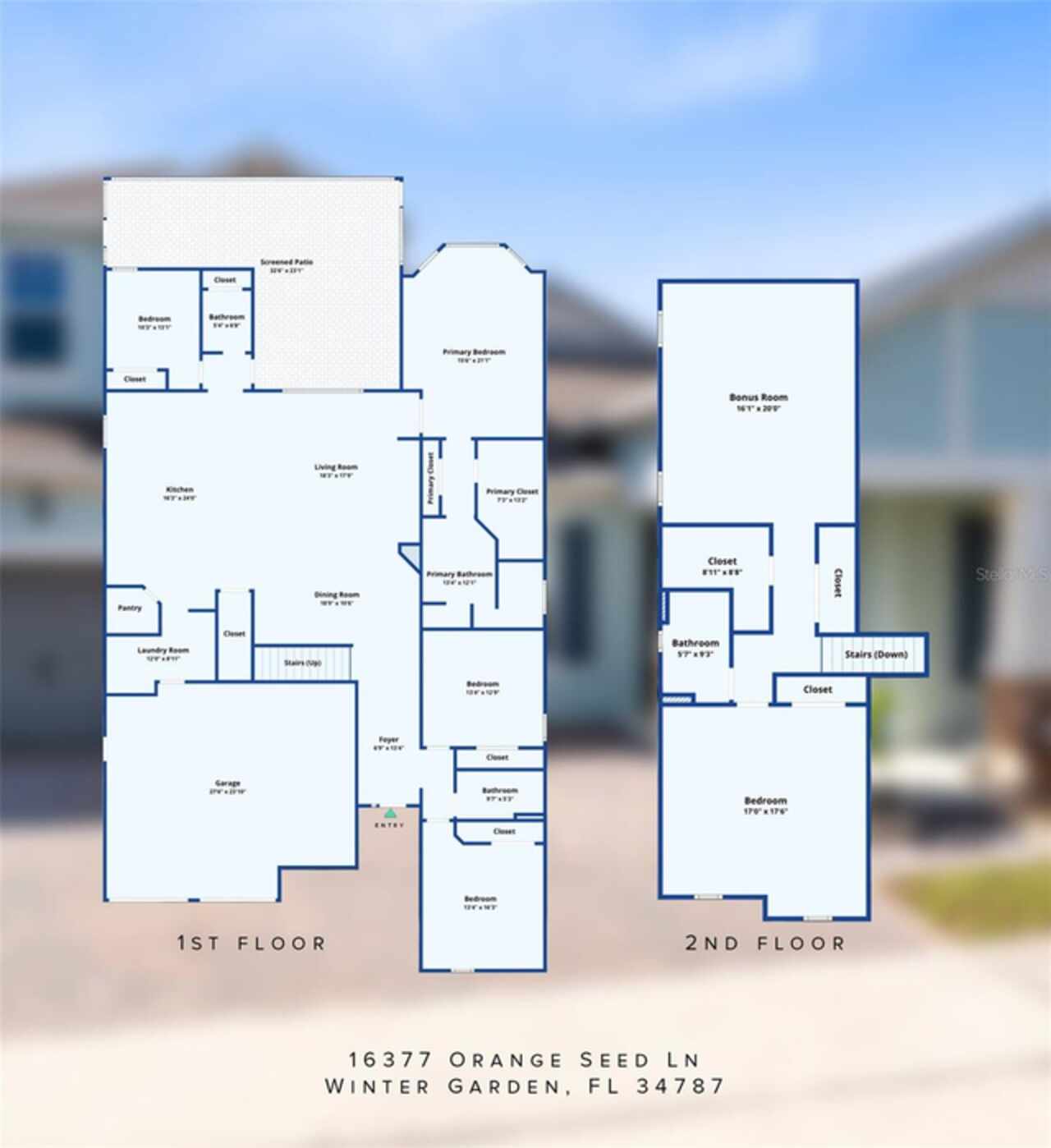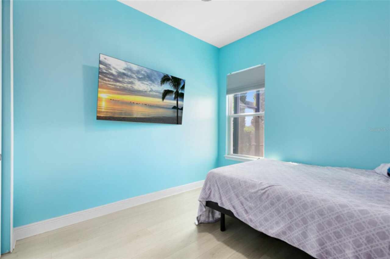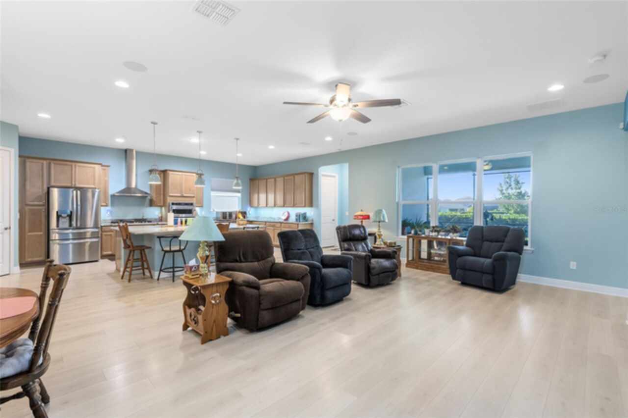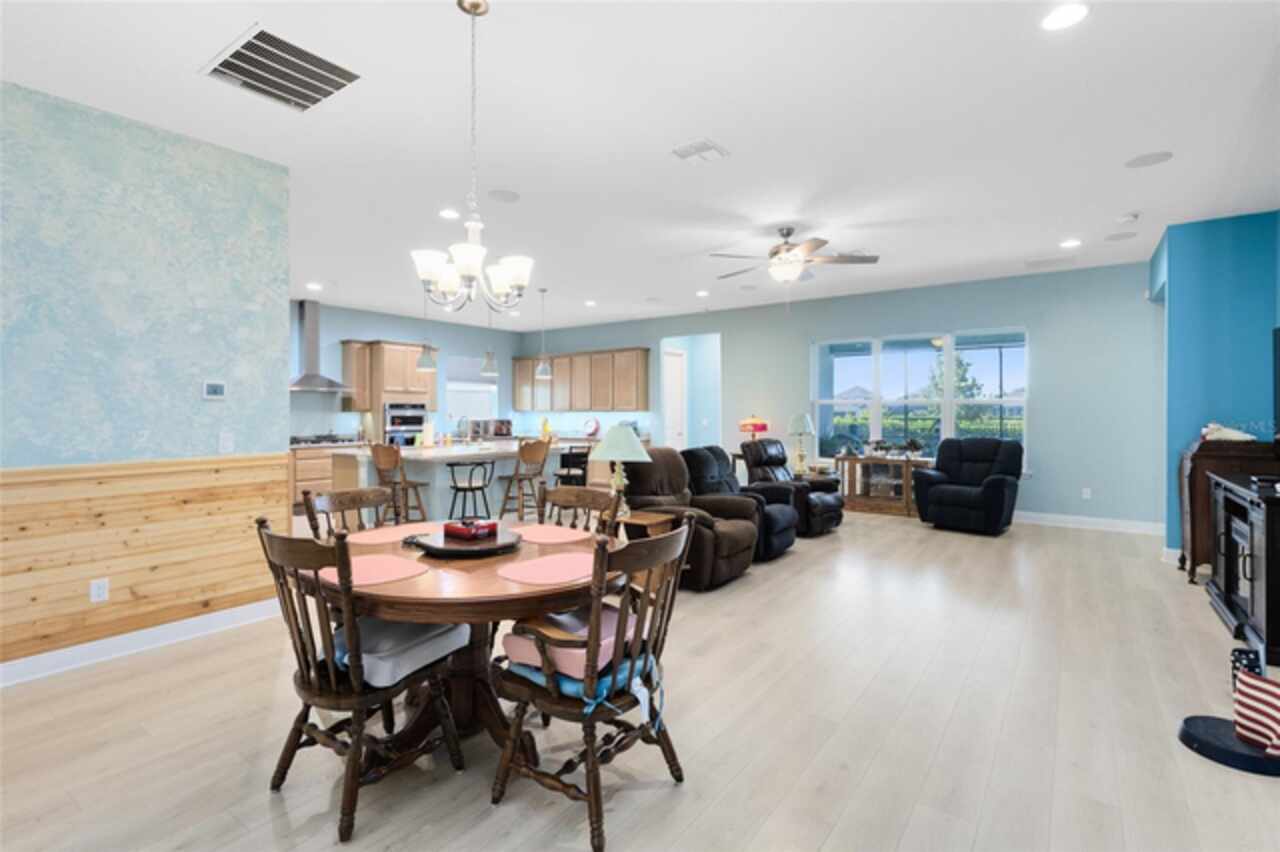 Welcome to this beautifully maintained two-story home blending thoughtful upgrades with inviting indoor and outdoor living spaces. Step inside to find an open layout filled with natural light, where laminate flooring flows throughout the main areas. The living and dining rooms connect seamlessly to the kitchen, which features granite countertops, pendant lighting, abundant cabinetry with an enlarged pantry, and a spacious island with seating. A gas cooktop fueled by a buried propane tank makes the kitchen ideal for both everyday meals and entertaining. The dining area is accented with wainscoting, while a display niche with built-in lighting adds charm and functionality. The primary suite offers a true retreat with a tray ceiling, bay window, and views of the backyard. Its upgraded bath includes an enlarged shower with rain and handheld showerheads, a built-in seat, and a double vanity. Additional bedrooms provide comfort and flexibility, while a large upstairs bonus room creates space for a media area, home office, or playroom. A full guest suite with a private bath on the second floor offers added convenience for visitors or extended stays. Outdoor living is a highlight with a screened lanai featuring professionally applied epoxy flooring, a ceiling fan, and a chlorine hot tub included in the sale. Beyond the lanai, the fenced backyard offers plenty of space to enjoy Florida living, complete with irrigation and open views. From the lanai, you can even watch Disney’s nightly fireworks. The garage is also finished with epoxy flooring and the driveway provides a third parking space for extra convenience. Additional features include a Culligan whole-house and under-sink water filtration system, modified laundry room, ceiling fans, and blinds throughout. Major systems — roof, AC, and water heater — are all just five years old and well maintained. The location is exceptional, just 1.3 miles from Walmart and the Hamlin shopping and dining district, with easy access to local conveniences and major highways. This home combines comfort, thoughtful upgrades, and a prime location, making it move-in ready for its next owners.