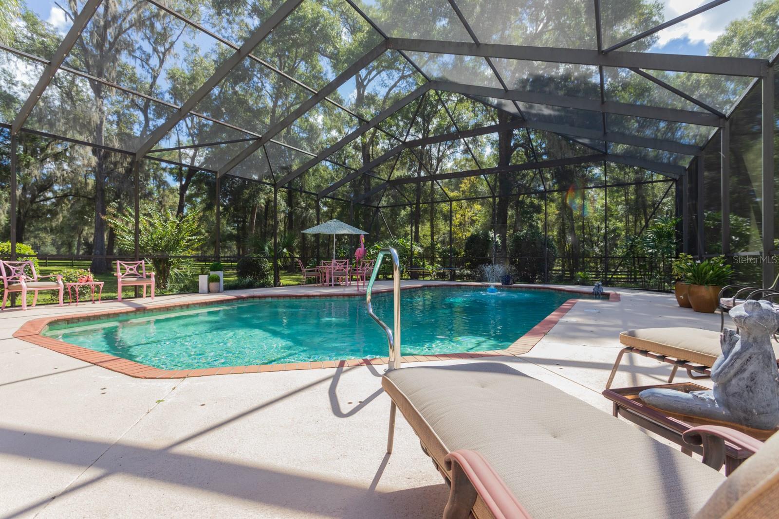 Here is your chance to Own a beautiful pool home in Turning Hawk II, a wonderful equestrian community with access to the Cross Florida Green way for riding, hiking, or biking. This stately home is on 2.2 acres, is fenced and has a automatic ornamental gate at the entrance, a large circular drive, and 3 car garage. You will enter through the double front doors and be greeted with the beautiful formal living and dining rooms, and the library. The center of the home is the cook’s dream kitchen, with an island, coffee bar, double ovens, lots of tall warm wood cabinets and granite counters. The kitchen overlooks a large second dining space and a large family room with a cozy fireplace. The primary suite is sure to impress. There are French doors to the lanai, large bay windows and a closet everyone would envy. The on-suite bath is truly luxurious with split sinks, a vanity area, soaker tub and separate shower. The home offers 3 additional bedrooms, and 3 additional baths. The 4th bedroom is located above the garage and could be used as an in-law suite. Bath 3 is a full cabana bath with access to the pool. This gorgeous home has a backyard oasis. You will find the large covered lanai with an outdoor bar that flows seamlessly to the pool deck under a large bird cage. This home was made for entertainment. Roof and 2 ac units replaced in 2023 Call for your home tour today.
