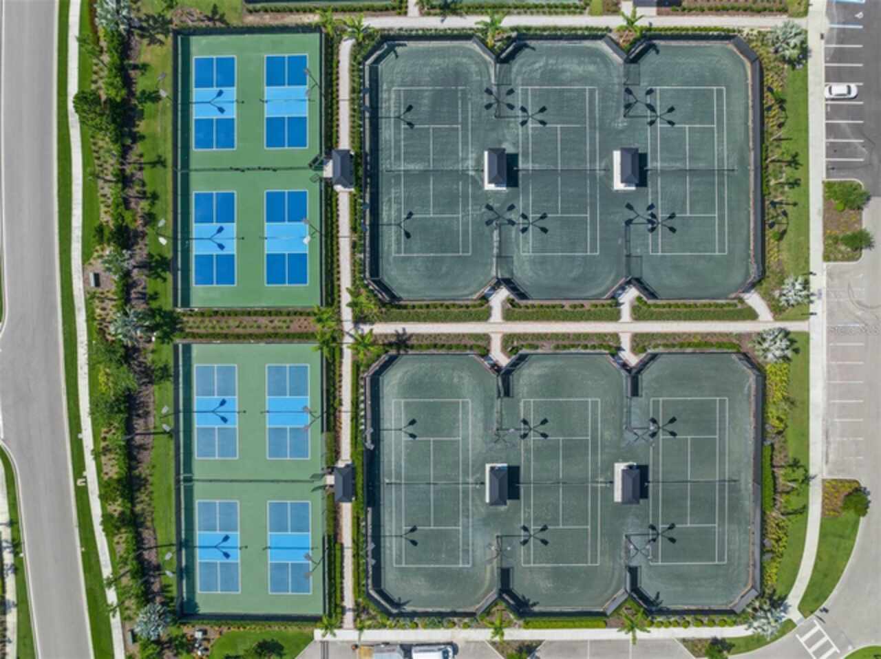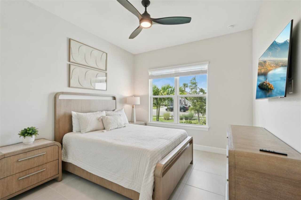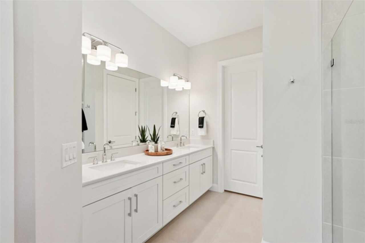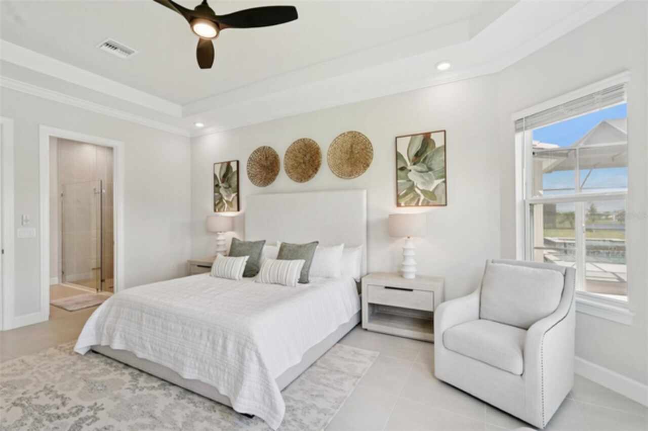 DON'T LOOK AT A WALL. Welcome to your BRAND NEW and upgraded 3-bedroom, 3-bathroom single-family home with a den on a premium lake lot in the sought-after Esplanade at Azario. This stunning residence features a tandem 3-car garage designed with luxury and functionality in mind. While golf is not deeded to the property, independent golf memberships can be obtained at the community's pro shop. Unique features and upgrades include a GOURMET KITCHEN complete with a range hood, gas cooktop, a 56-bottle wine fridge, and 42” soft-close cabinets. The home boasts 10’ tray ceilings with double crown molding, 8’ closet doors, and an extended covered lanai pre-plumbed and pre-wired for outdoor entertaining and a future pool. Additional enhancements include epoxy-coated garage floors, full landscape lighting with pathway, flower bed, palm tree uplighting, and prewiring for front and rear security cameras. Lawn maintenance is included in the HOA fees, offering convenience and peace of mind. Location & Community Features This home offers unparalleled privacy and access to resort-style living, situated in the exclusive gated community of Esplanade at Azario within the Lakewood Ranch. Indulge in various on-site amenities, including a culinary dining experience, casual poolside drinks, and numerous social and wellness activities. Community highlights feature an 18-hole championship golf course (with membership options), a pro shop and bunker bar, an aqua driving range, a full-time activities director, a resort-style pool with a poolside Bahama Bar, a spa/wellness center, and a culinary center with a teaching kitchen. Additional amenities include a state-of-the-art fitness center, clubhouse, 16 pickleball courts, 6 Har-Tru tennis courts, bocce ball courts, walking trails, a dog park, and flexible space for gaming and meetings. This exceptional home and vibrant community provide the perfect blend of luxury, comfort, and active living!