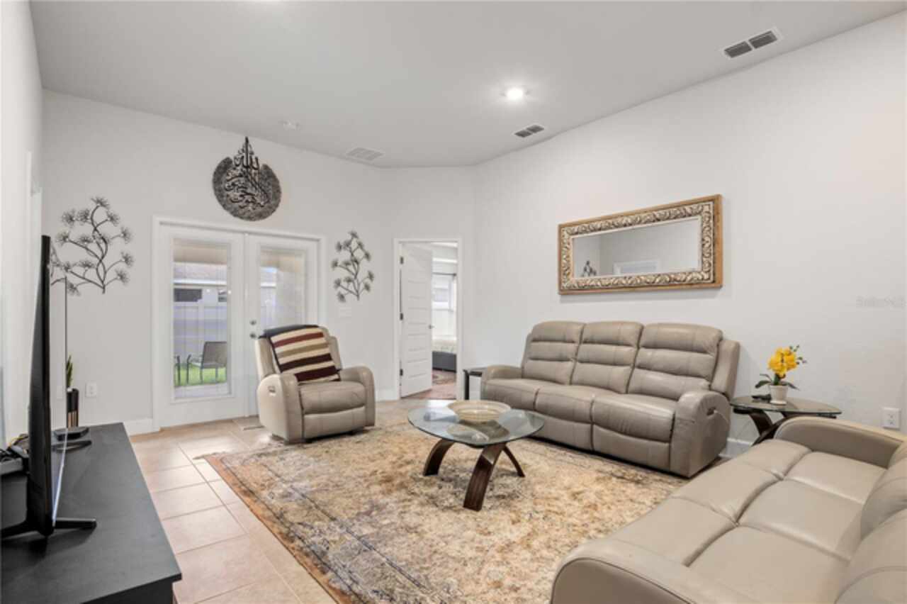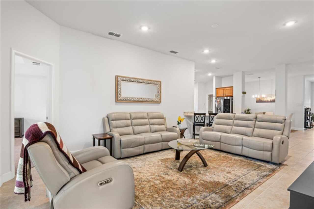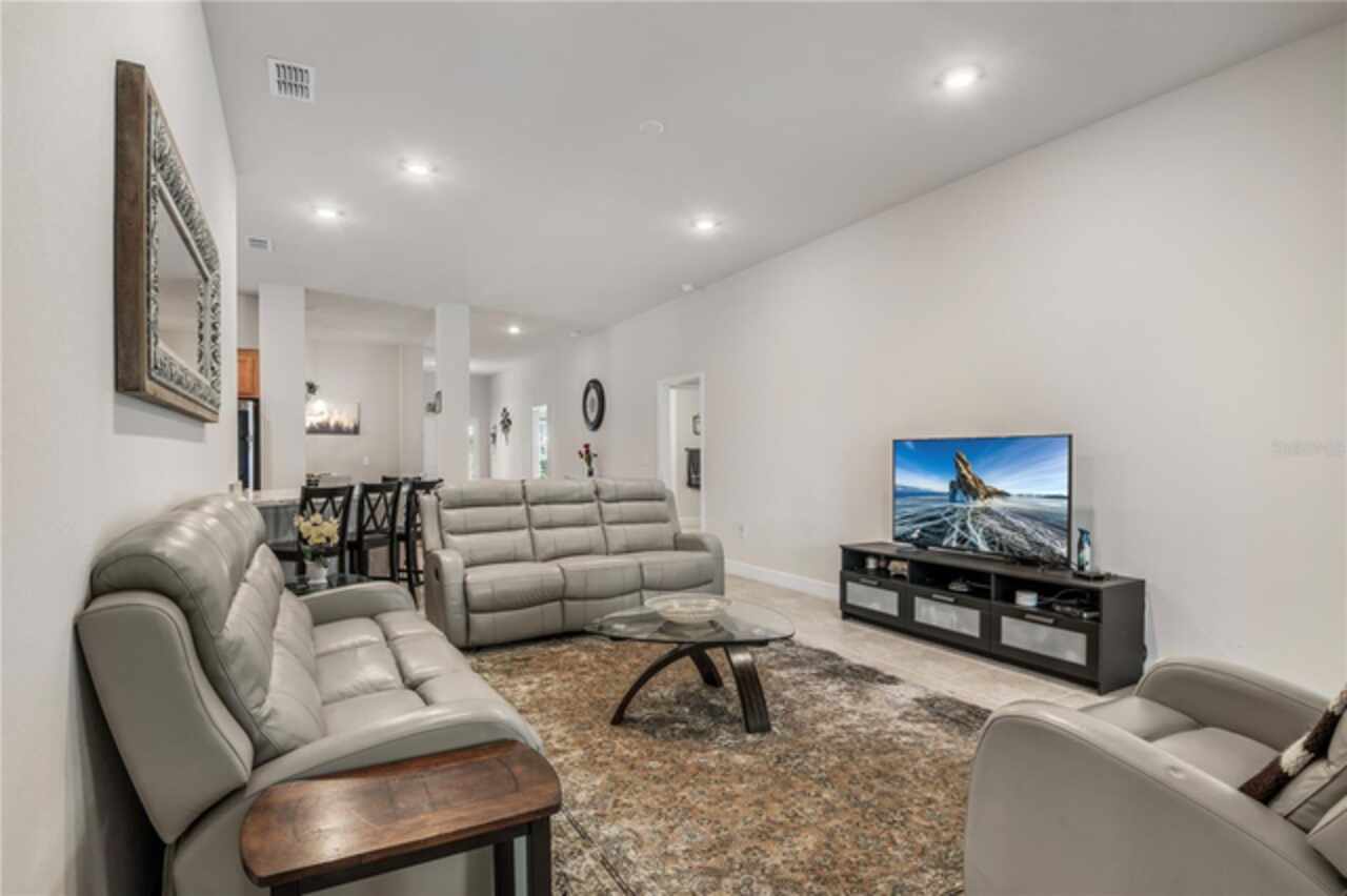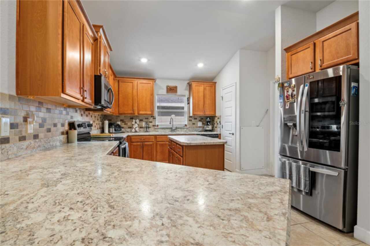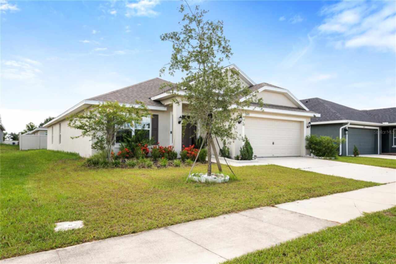 Discover your dream home in the desirable Citrus Landing community of Davenport, Florida. This beautifully maintained 4-bedroom, 3-bathroom residence. Built in 2022 by Adams Homes, this property showcases high ceilings and is loaded with upgrades throughout. Interior features include 5¼" baseboards, 36" kitchen cabinets with crown molding and a custom bump, Craftsman-style interior and closet doors with brushed nickel lever handles, and all MOEN brushed nickel faucets, including a gooseneck one-touch faucet in the kitchen. The kitchen is equipped with a glass-top range, built-in microwave, and dishwasher. Additional upgrades include plush cut-pile carpet with 6 lb padding, Kichler lantern-style coach lights at the garage and entry, a finished garage, and the TAEXX tubes-in-the-wall pest defense system. Located just about 30 minutes from Disney and only minutes from I-4, Highway 27, Publix, and Posner Park Shopping Center, this home offers unmatched convenience. Citrus Landing features a resort-style pool and a playground, making it ideal for families. Low HOA fee, this home blends modern living with community charm. GUESTROOM FEATURES EN-SUITE FULL BATH, great for the in-laws. MOTIVATED SELLER! Don’t miss out on this exceptional opportunity!!