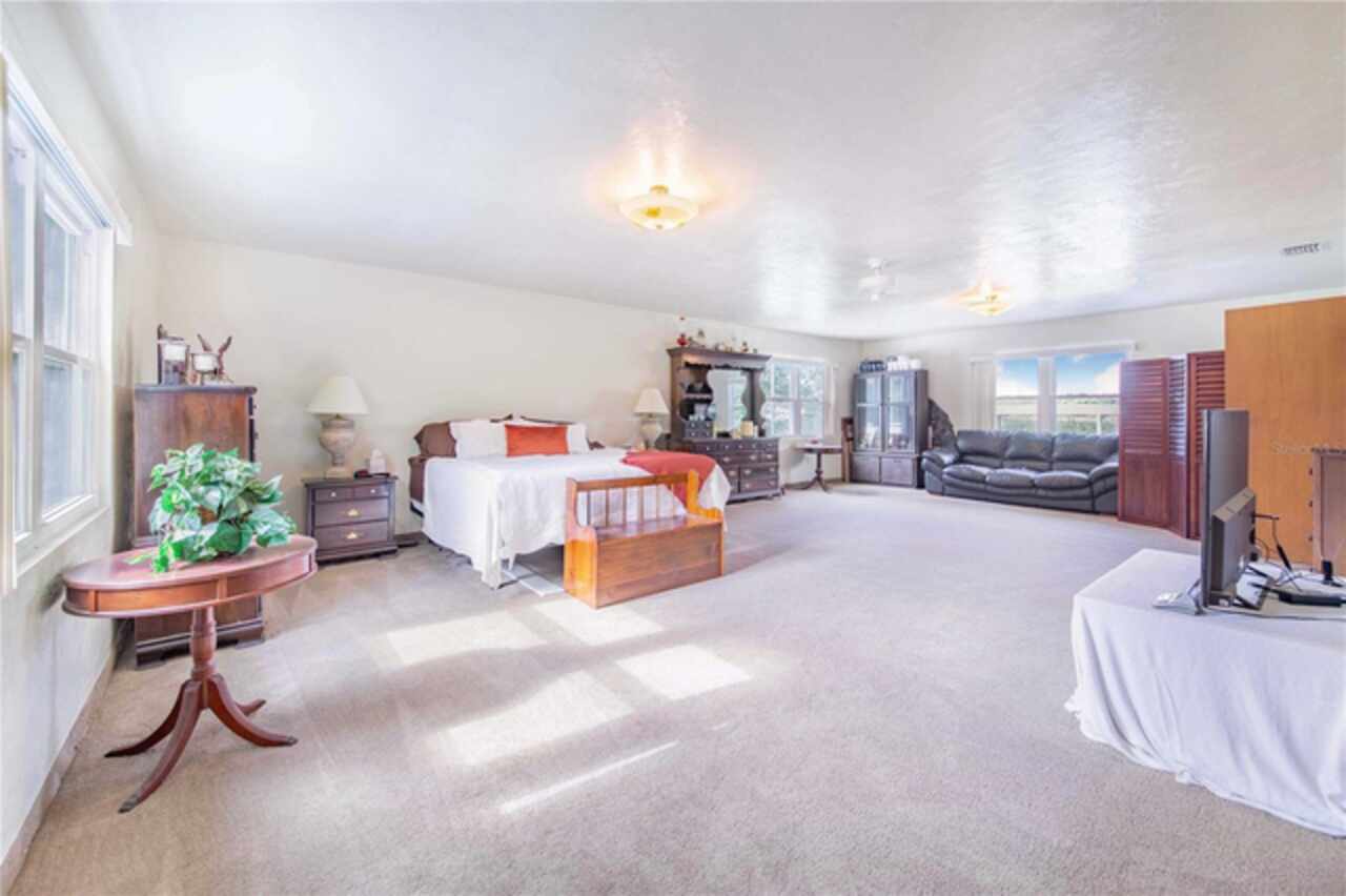 Your dream retreat in Central Florida awaits you on 3+ acres! This property features a 4BR/3BA main house and an attached 1BR/1BA in-law suite, perfect for in-laws or guests. Inside the main house, a foyer opens to a spacious living/dining area w/ a fireplace and a kitchen w/ ample cabinetry & counter space. A versatile bonus room is ideal as an office or game room, and an oversized laundry provides extra storage. Upstairs, the primary suite has a renovated bath w/ walk-in shower, and the other two bedrooms share an updated bath w/ walk-in shower. The in-law suite has a private entrance, 1BR/1BA with its own laundry, a full kitchen, and living room. Outside, a fully fenced and landscaped yard creates a private oasis, and a newer metal roof provides peace of mind. There’s also a huge 108x26 ft workshop w/ power & water, and each building has its own power meter. All this privacy, yet you’re minutes from highways & theme parks. This hard-to-find property won’t last long—don’t miss out!