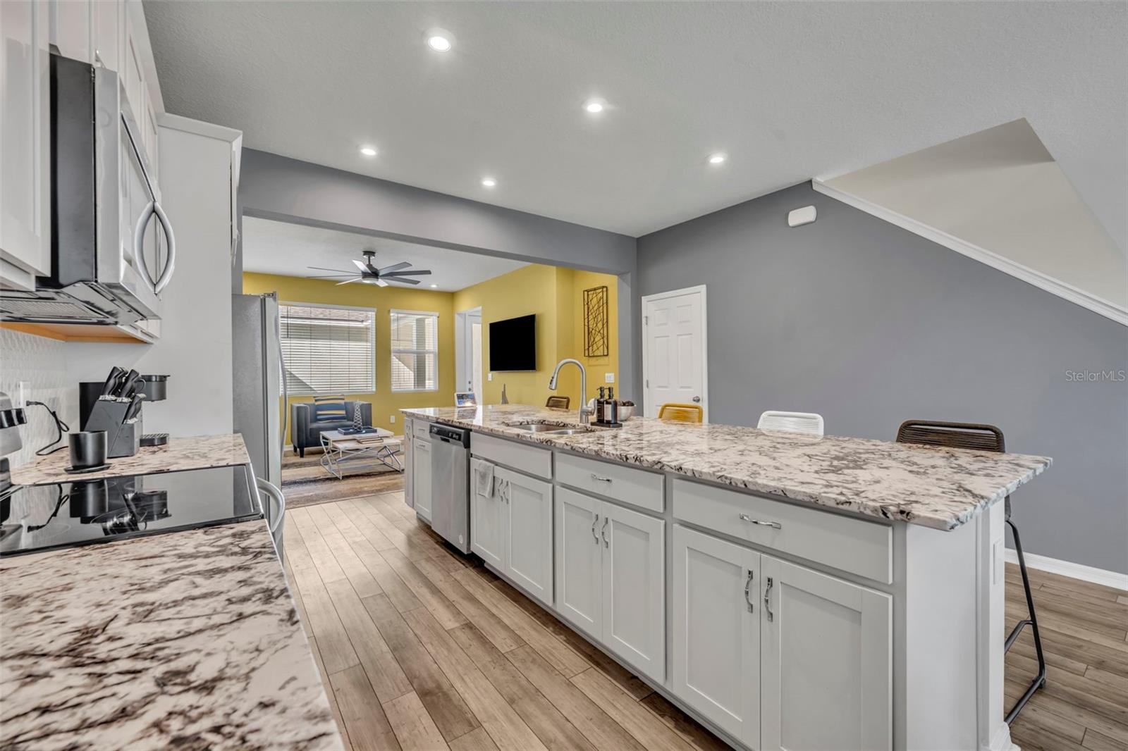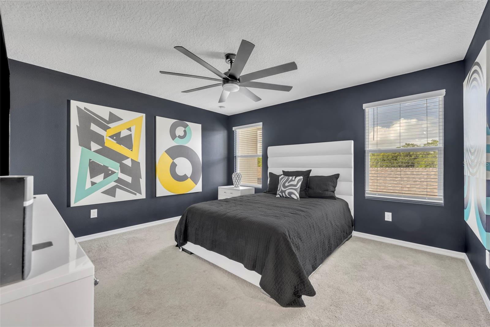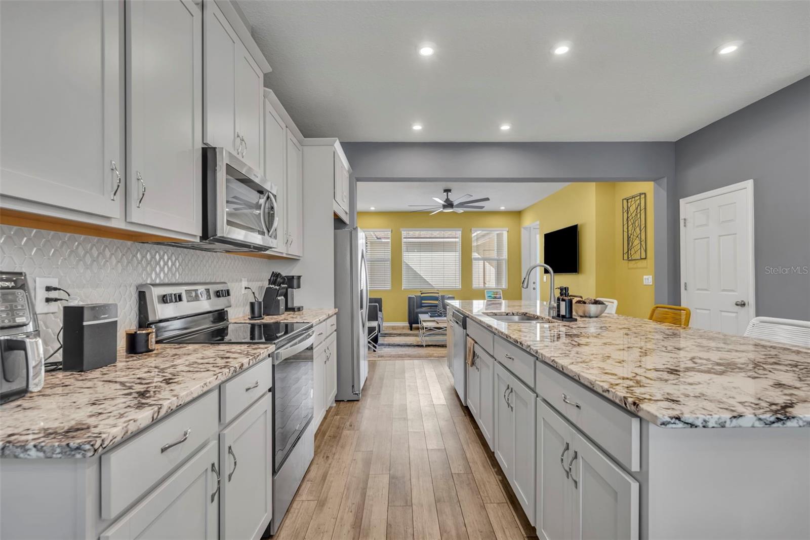 Ceiling Fans(s), High Ceilings, Kitchen/Family Room Combo, Open Floorplan, PrimaryBedroom Upstairs, Solid Wood Cabinets, Stone Counters, Thermostat, Walk-In Closet(s), Window Treatments