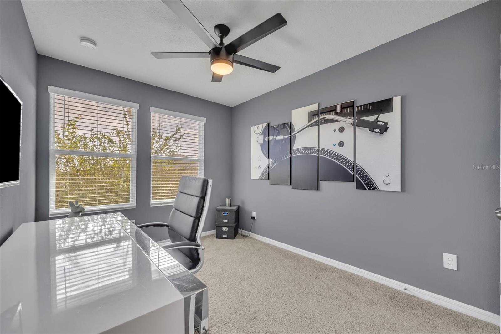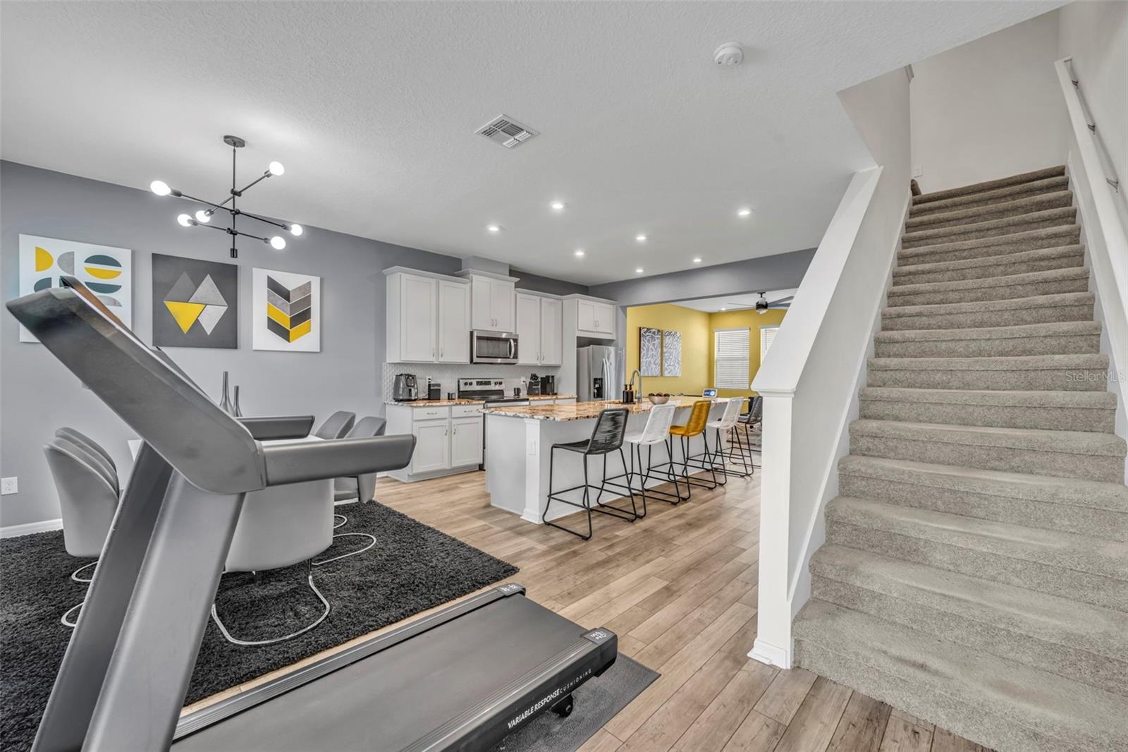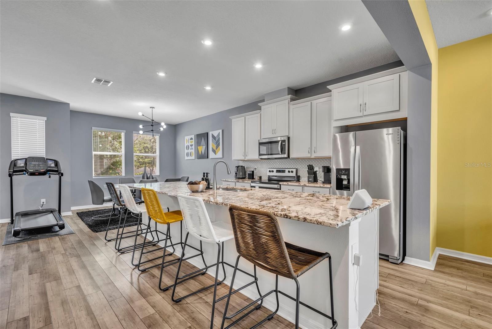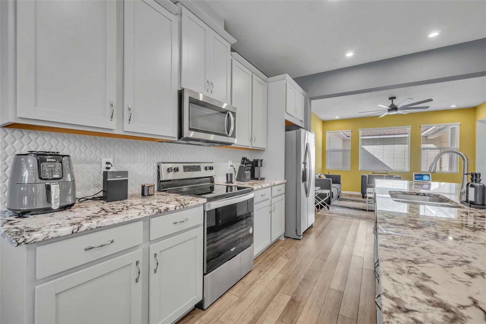 Ceiling Fans(s), High Ceilings, Kitchen/Family Room Combo, Open Floorplan, PrimaryBedroom Upstairs, Solid Wood Cabinets, Stone Counters, Thermostat, Walk-In Closet(s), Window Treatments
