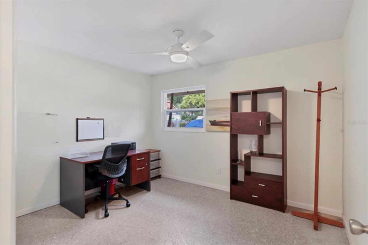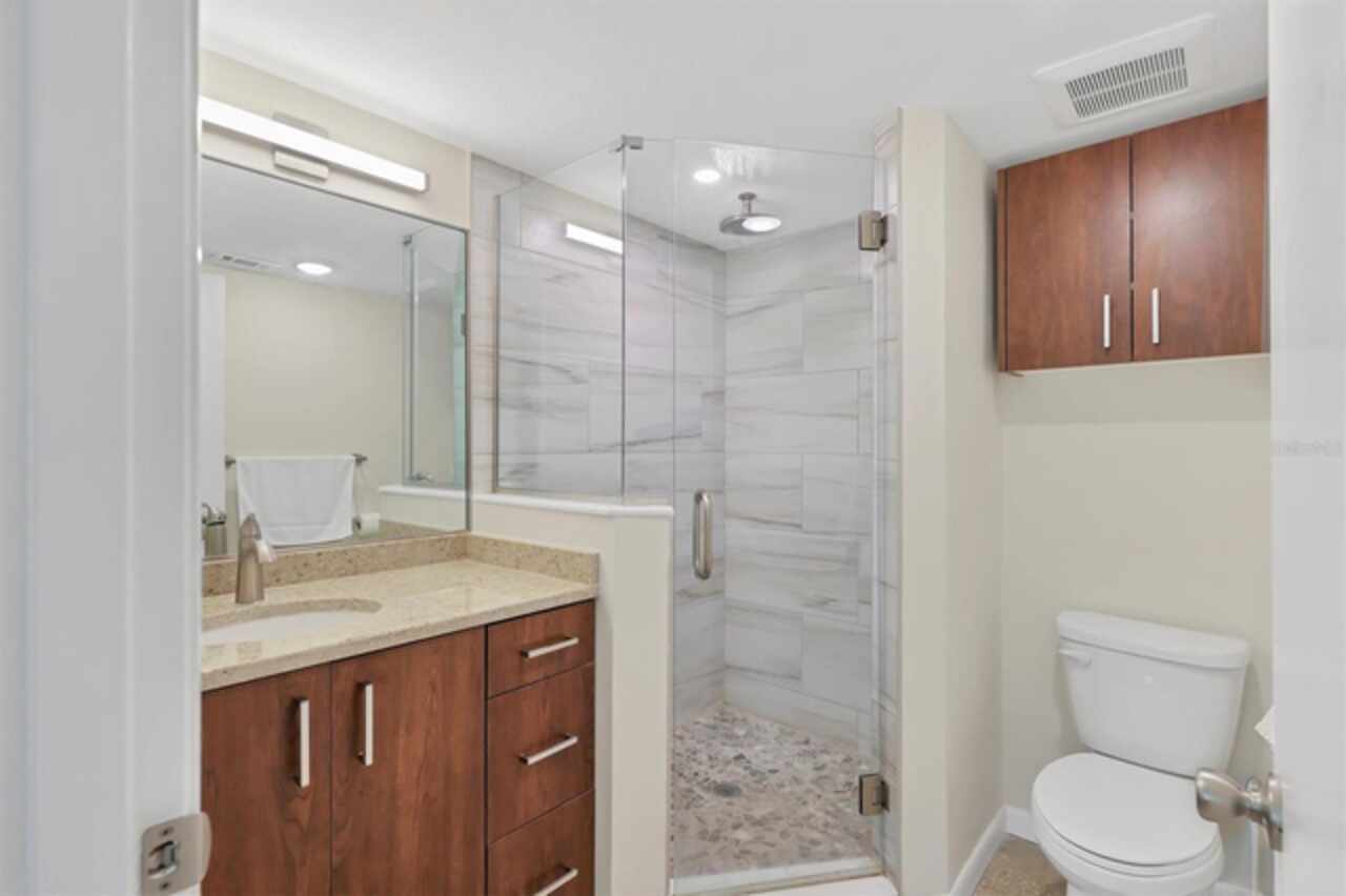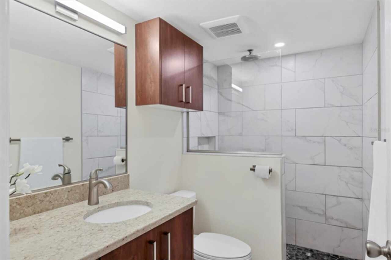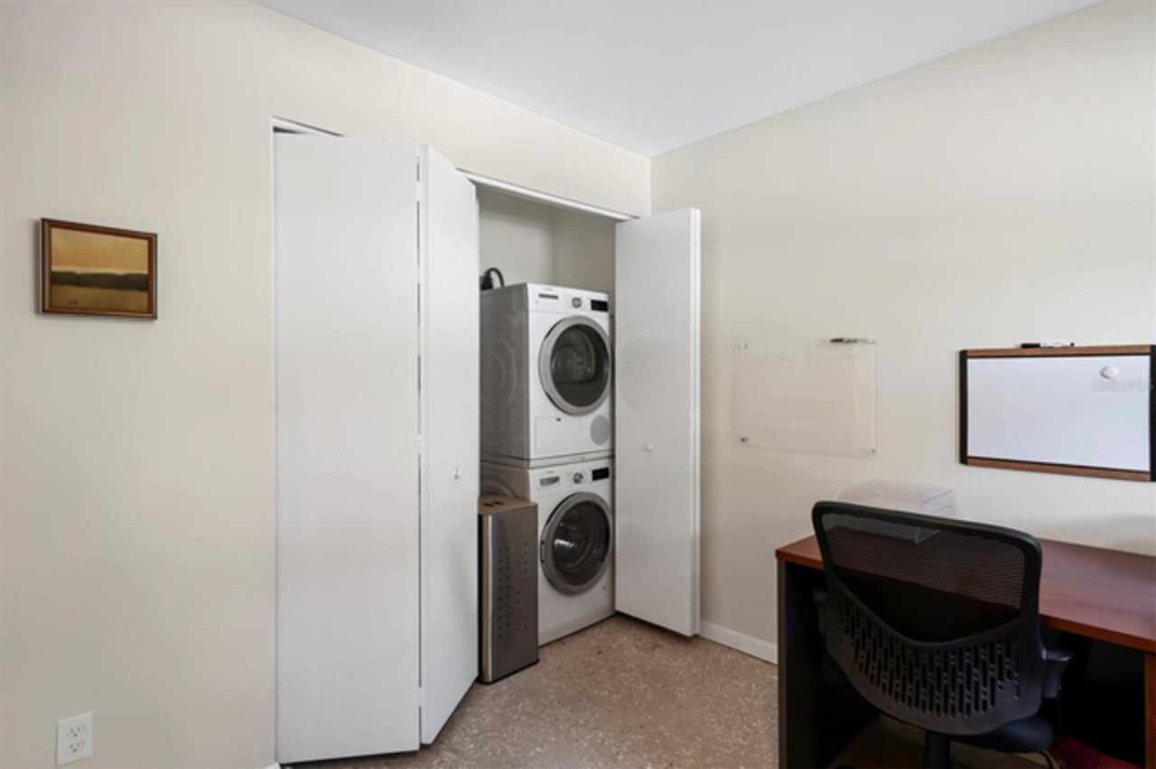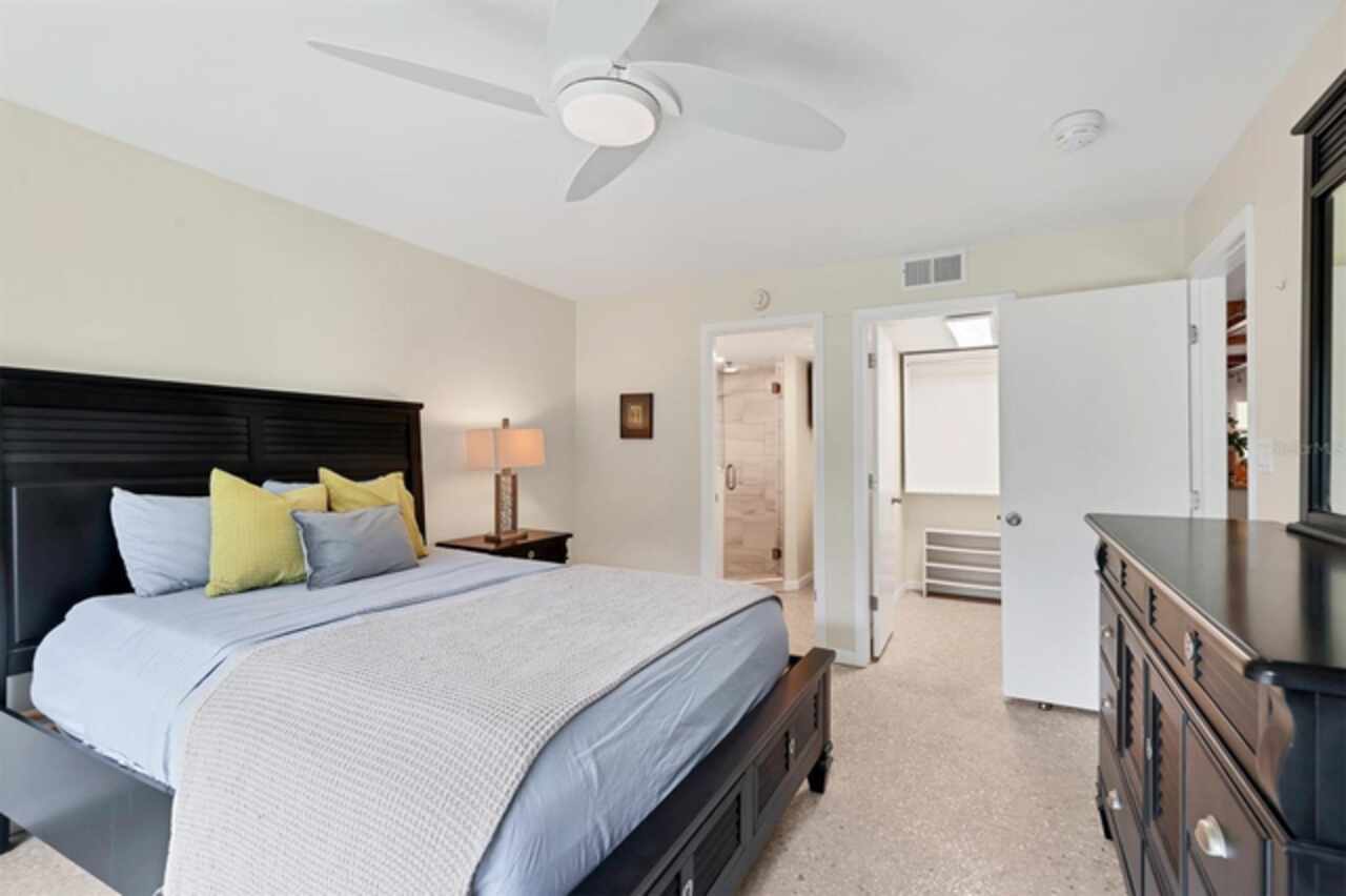 Waterfront and move-in ready, this beautifully updated first-floor condo offers effortless living in one of downtown Sarasota’s hidden gems – Bayou House. Perfectly situated in the heart of the city, yet tucked away on the tranquil Hudson Bayou, this 2-bedroom, 2-bath residence blends modern style with low-maintenance convenience in a prime walkable location. Polished concrete floors, impact windows and sliders, LED ceiling fans and lights, plus an open-concept layout create a clean, modern aesthetic throughout (all updated since 2020). The spacious great room features a wood-beam ceiling detail, sleek track lighting, and large sliders that open to a covered, screened lanai with full-view screen to enjoy calm bayou waters and lush, shaded banks. Fully equipped updated kitchen with soft-close cabinetry, butcher block countertops, subway tile backsplash, LG stainless steel appliances, under-cabinet lighting, and a center island. The primary suite includes direct lanai access, walk-in closet with built-ins, and a stylish ensuite bath with a floor-to-ceiling tiled shower, frameless glass enclosure, and granite countertop vanity. A second bedroom and updated bath provide comfortable space for guests or a home office. Bonus: in-unit Bosch washer and dryer. Bayou House offers assigned parking plus guest parking space, on-site storage, and a private community dock – ideal for launching a paddleboard or kayak right into the Bayou, just strokes from Sarasota Bay. HOA fees include water, trash, sewer, cable, landscaping, and flood insurance for true lock-and-leave ease. Whether you're looking for a full-time residence or a vacation escape, all of downtown Sarasota is at your doorstep. Walk to Selby Gardens, the Bayfront, Marina Jack, Burns Court, galleries, boutique shopping, fine dining, and cozy cafes. Just minutes to Lido Beach, St. Armands Circle and Siesta Key. First-floor, no-step living in the heart of Sarasota, this is Florida waterfront living at its best.