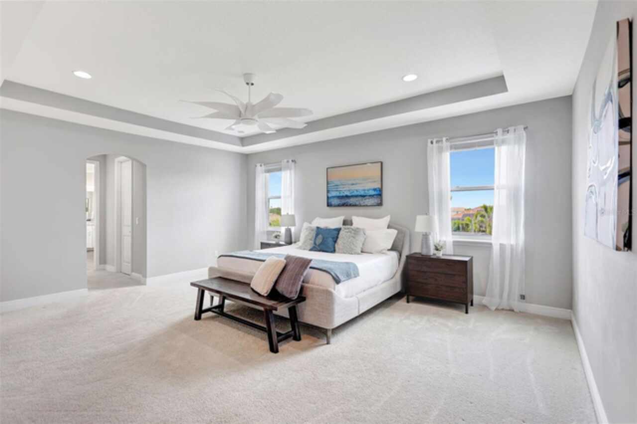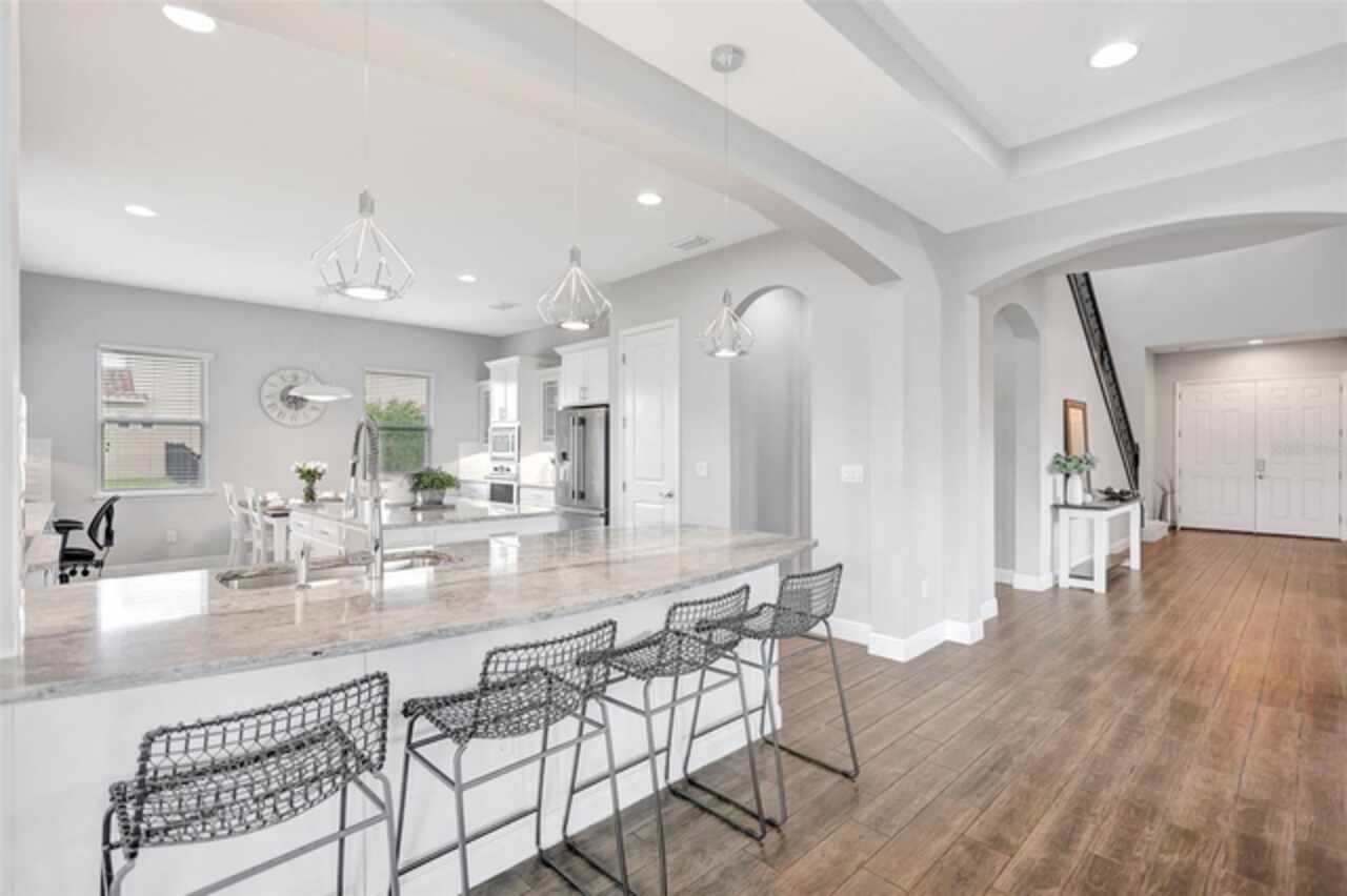 Family Life at its Best, with your home set on a half acre, a fantastic pool and everyone has their own room. The Marbella model is a five bedroom, four and a half bath and one heck of a kitchen space. First floor has a wonderfully sized front double door office/flex room that looks out on a delightful covered front porch. Long table room for family and friends dining. Living room is open to the dining, the kitchen breakfast bar counter and the lovely view of the lanai and heated pool. The kitchen has a plethora of counter space, a large island and with windows on two walls, which allows glorious light to fill the gathering space. There is also room in the kitchen for an additional dining table. This is a must see kitchen:) Wrapping through a butlers pantry to a half bath, a larger utility/laundry room with sink and cabinetry and the entry for the spacious three car garage. Also, on this hall is a ensuite with full bathroom entry from the bedroom. Wonderful for a guest or the older active family member staying a bit longer. The second floor has an amazing bonus room for variable use, playroom, office and additional living room, theatre, and so many more. Additionally, a massive master suite with room for comfort seating, two large walk-in closets, and my favorite... the master bathroom with garden tub, walk-in shower separate sinks/counters and tons of natural light viewing the backyard and spectacular pool. Two more additional larger bedrooms share a full bathroom and the fifth bedroom is at the front of the home with a large store closet just next. Rye Wilderness Estates is sought after for its half-acre lots, LOW HOA, NO CDD and top line of schools. Set between St. Pete and Sarasota downtown, with Lakewood Ranch to the south and directly west is Anna Maria Island. Some of the best beaches in the country. Shopping, restaurants, simple needs and parks to hike, kayak and bike. This is the perfect home for your family, be the first to take a look. Comes with one year home warranty for peace of mind.