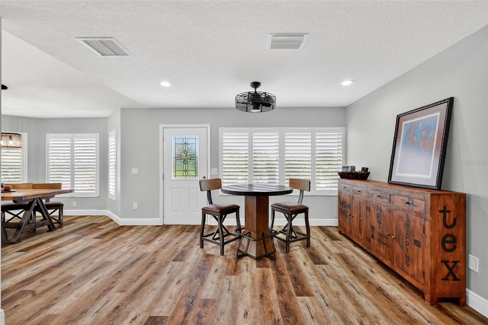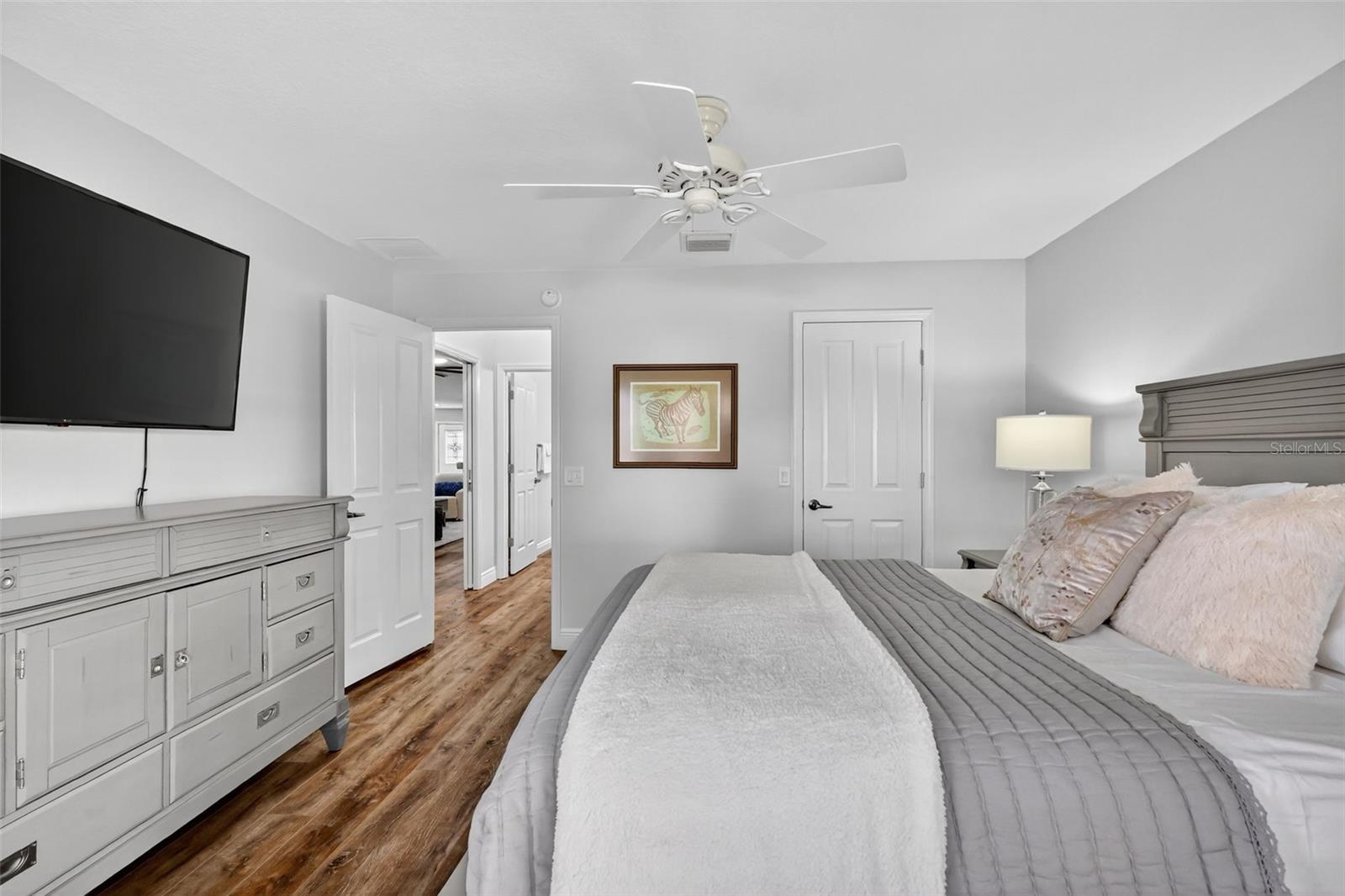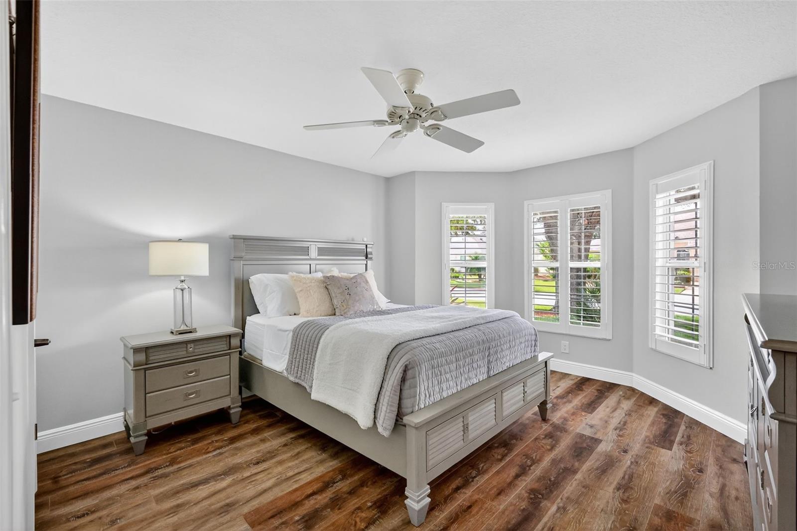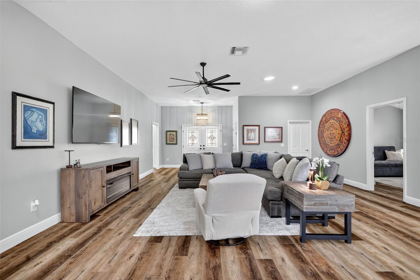 ABSOLUTELY STUNNING, COMPLETELY RENOVATED, 3/2 BLOCK and STUCCO CUSTOM Grand Ficus with REAR WATER VIEWS on a CUL-DE-SAC road in the highly desirable Village of Poinciana! - ONLY MINUTES from BOTH Lake Sumter Landing and Brownwood Paddock Town Squares! LOW BOND! NEW ROOF (2025)! Updated landscaping boasting a grand live oak and a QUAINT front porch welcome you in to this METICULOUSLY-MAINTAINED home! Step inside the ELEGANT leaded-glass DOUBLE ENTRY DOORS into a GENEROUS 12’x8’ foyer with a CONVENIENT entry closet. Setting a tone of ELEGANCE throughout the ENTIRE home are PLANTATION SHUTTERS; rich, wood-grain LUXURY VINYL PLANK flooring; OVERSIZED baseboards; and MODERN lighting and fans. The VOLUMINOUS, OPEN CONCEPT floor plan of the living, dining, kitchen, and dinette enhance the GRANDEUR of the main living area. The PHENOMENAL kitchen showcases STAGGERED, WHITE SHAKER cabinetry; QUARTZ countertops; TILE backsplash; BLACK STAINLESS appliances; GAS cooking; BUILT-IN, DOUBLE PANTRY with PULL-OUTS; UNDER CABINET lighting; and a LARGE CENTER ISLAND with WATERFALL QUARTZ top and sides, pop-out outlets, and an EAT-IN breakfast bar. The ADJACENT DINETTE features a BAY window for an ABUNDANCE of natural light. TWO SOLAR TUBES also grace the main living area. From the dining area, step through a LEADED-GLASS French door to the REAR PATIO with WATER VIEWS and PRIVACY landscaping - the perfect spot to relax and enjoy the beautiful Florida weather! Retreat indoors to the LUXURIOUS primary bedroom featuring DOUBLE ENTRY doors, VAULTED ceiling, and a CUSTOM WALK-IN closet. It’s en suite bathroom boasts light grey cabinetry with GRANITE tops, DOUBLE sinks, TILED WALK-IN shower with built-in bench, and a LINEN closet. Near the front of the home, a POCKET DOOR separates the second bedroom and bath creating a PRIVATE guest wing. Bedroom two boasts an extended BAY window and a CUSTOM built-in closet. The second bathroom features a dark GRAY vanity with GRANITE top and a TILED tub and shower combination. For added CONVENIENCE, the washer and dryer are located behind bifold doors in the corridor between the second bedroom and bath. Bedroom three is just off of the main living area and offers a VAULTED ceiling, DOUBLE windows, and a built-in closet. Completing the package is a 2-CAR GARAGE with PAINTED floors, a utility sink, additional shelving, and PLENTY of room for parking and storage! DON"T MISS the OPPORTUNITY to make this MAGNIFICENT HOME YOUR OWN! The Village of Poinciana is IDEALLY LOCATED - JUST MINUTES from BOTH Lake Sumter Landing and Brownwood Paddock Town Squares - where you'll have EASY ACCESS to world-class live nightly entertainment, shopping, and dining! Nearby pool and recreation centers include: Poinciana, Allamanda, Hibiscus, and Lake Miona. For golf enthusiasts, Cane Garden Country Club is just a short drive away, featuring a well-equipped pro shop, and 27 holes of challenging championship golf on the Jacaranda, Hibiscus, and Allamanda courses. Nearby CR466 and CR466A also offer an ABUNDANCE of shopping, restaurants, banks, medical and more!. PLEASE WATCH OUR WALKTHROUGH VIDEO of this EXCEPTIONAL HOME in a FABULOUS LOCATION and call today to schedule your Private Showing or Virtual Tour!