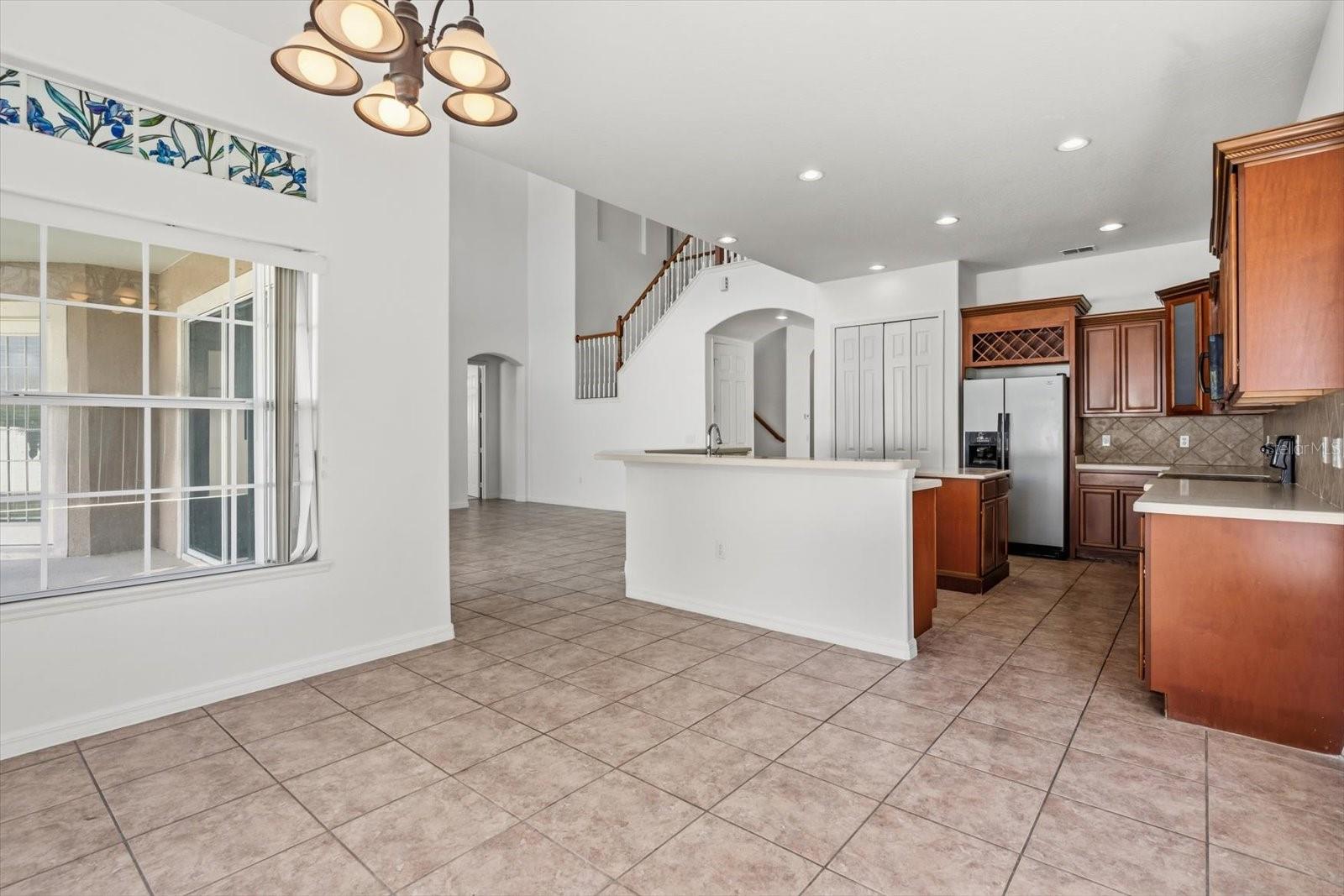 Ceiling Fans(s), Eat-in Kitchen, High Ceilings, Kitchen/Family Room Combo, Open Floorplan, Other, Primary Bedroom Main Floor, Solid Wood Cabinets, Split Bedroom, Stone Counters, Thermostat, Walk-In Closet(s)